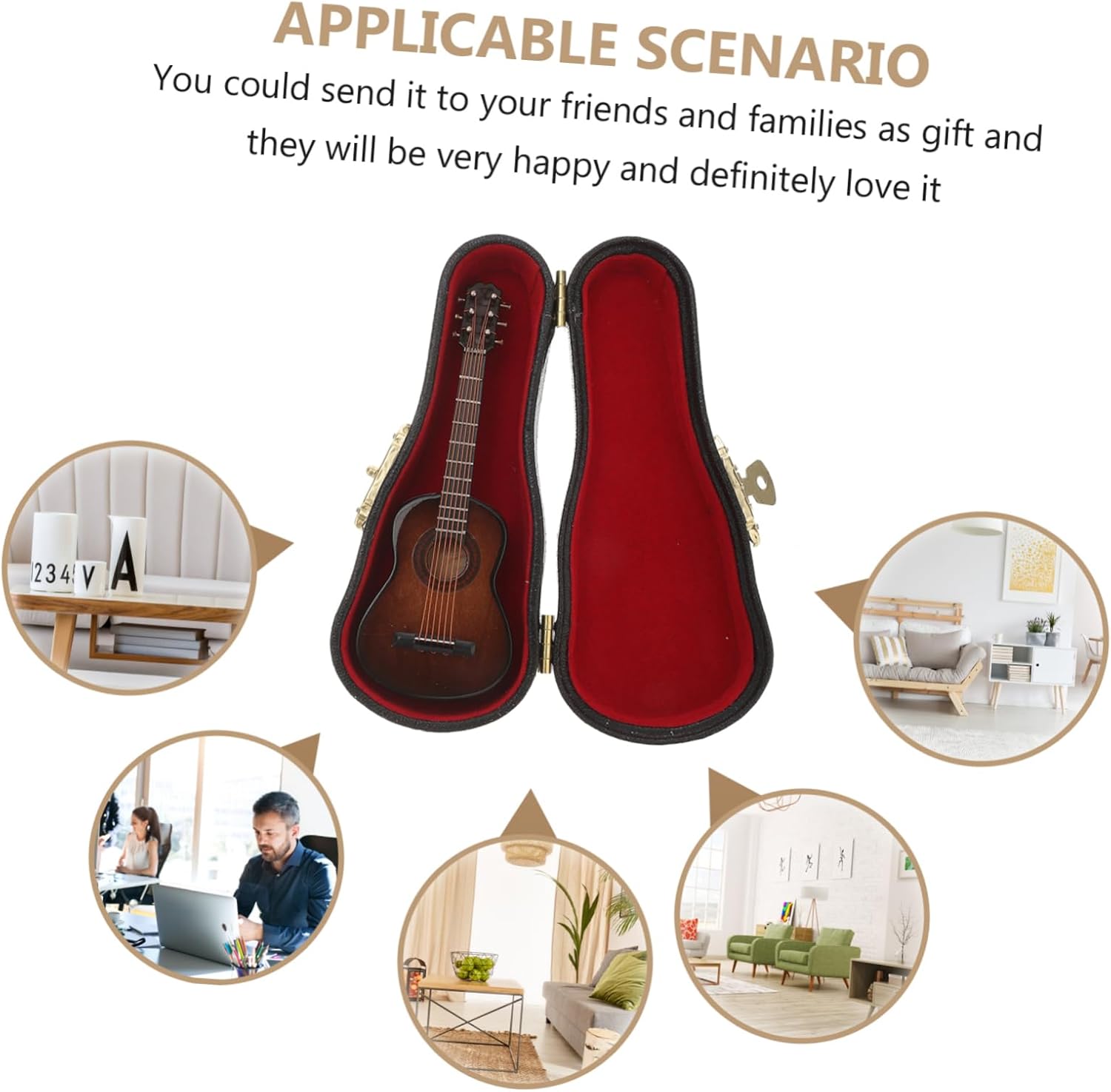 Mini statua per chitarra acustica: può anche essere un buon supporto fotografico per scattare foto indimenticabili con gli amici. Decorazione per chitarra in legno in miniatura: il modello di mini chitarra è un modello realistico e unico, piccolo e squisito, carino e meraviglioso per l'ornamento della casa delle bambole. Figurine in miniatura: la mini chitarra in legno è di dimensioni compatte, leggera, facile e comoda da trasportare e riporre quando non viene utilizzata senza alcuno sforzo. Chitarra in miniatura scala 1 12: l'aspetto raffinato e speciale può portare aspetto e bellezza alla tua casa, buon effetto decorativo. Mini chitarra per casa delle bambole: puoi usarla supporto fotografico per scattare foto memorabili con le tue famiglie e i tuoi amici.