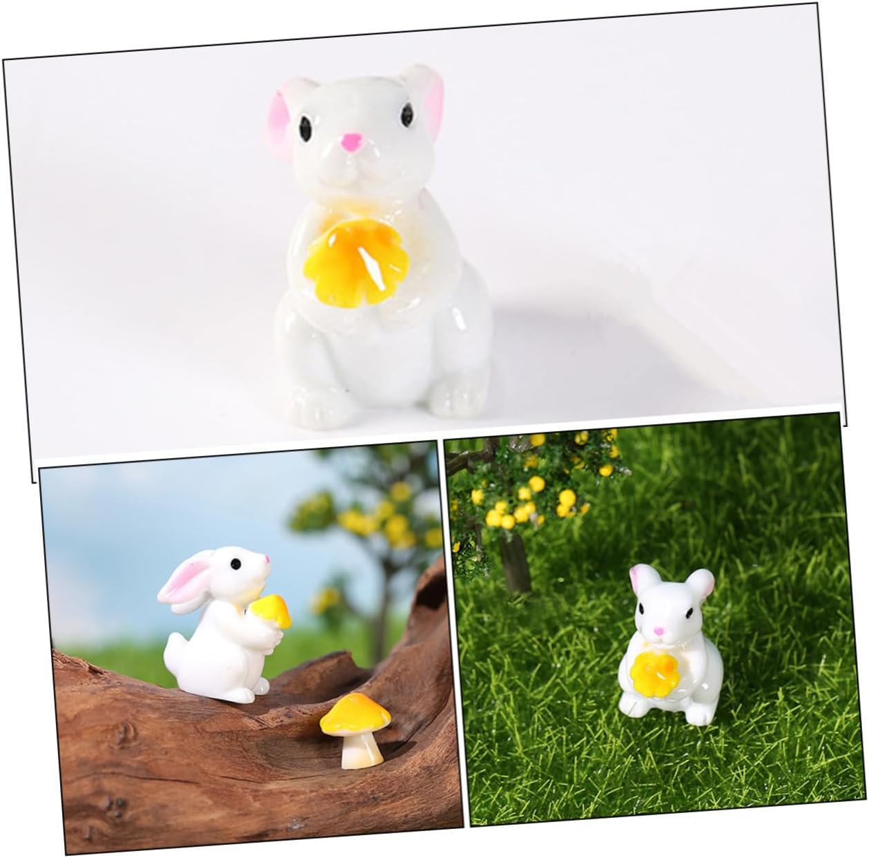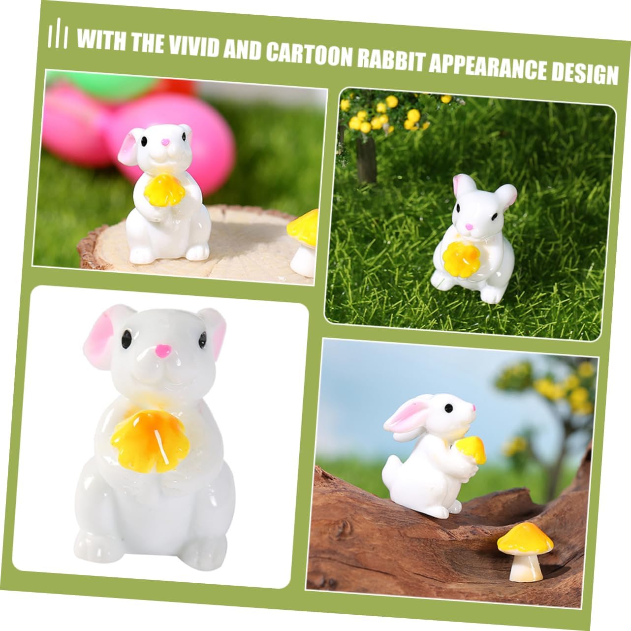 Mini ornamento di coniglio: queste adorabili figurine di mini coniglietto dei cartoni animati sono l'aggiunta a qualsiasi collezione o esposizione, statuetta di coniglietto Adorabile statua di animale: versatili nell'uso, questi adorabili conigli di cartoni animati possono essere usati come affascinanti decorazioni per la casa o come pezzi accattivanti sulla scrivania dell'ufficio, statuetta di coniglio Figurine in miniatura: il simpatico design a cartone animato di queste mini figurine di coniglio porterà sicuramente gioia e vivacità in qualsiasi spazio, mini scultura di coniglio in resina Figurine di coniglio: di pregevole fattura, che sembrano molto speciali e uniche, sono dei bei decori per la scena del tuo prato, ornamenti di animali in miniatura Mini scultura di coniglietto in resina: la lavorazione artigianale garantisce la durabilità e la longevità delle figurine, decorazione micro paesaggistica