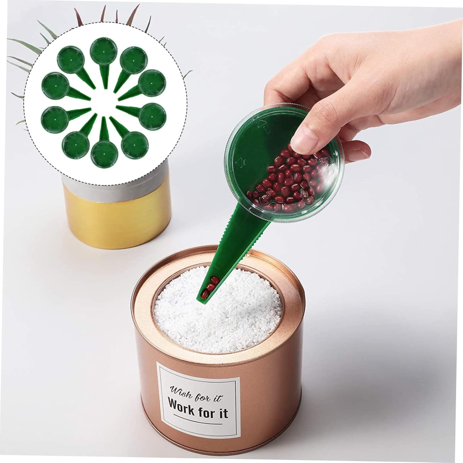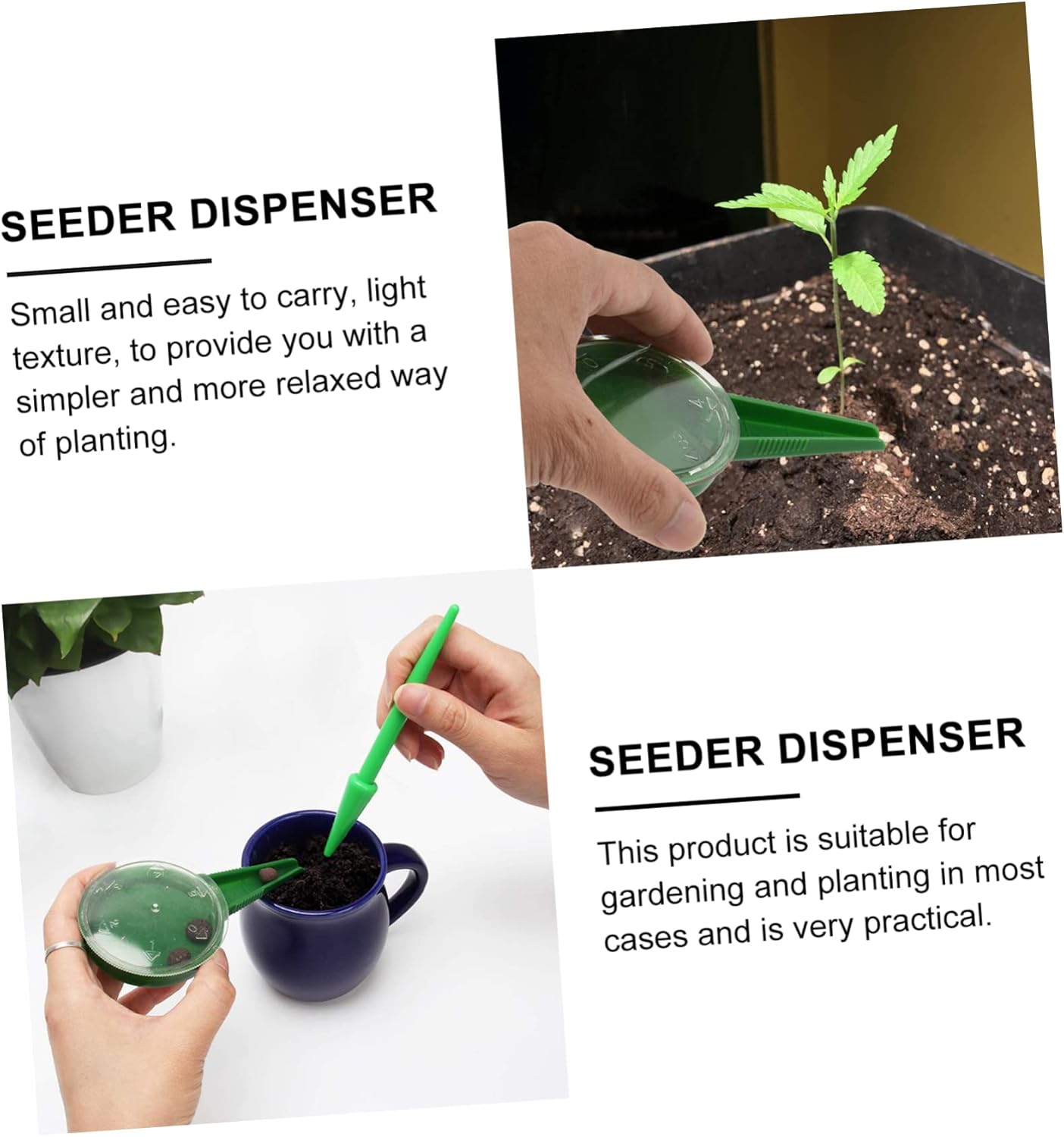 Piantatrice: puoi regalarla agli appassionati di giardinaggio, è molto pratica per loro, strumento per la semina Seminatrice portatile: è piantata con eccellente , ha una struttura ragionevole e buoni dettagli artigianali e può servirti bene Seminatrice da giardinaggio: semplice e pratica, facile da regolare, adatta a seminatrici di diverse dimensioni, strumento di regolazione della seminatrice Distributore di semina: questo è un gadget pratico e un aiuto indispensabile per il giardinaggio e la semina, strumento di semina Seminatrice regolabile a 5 marce: lavorazione squisita, protezione ambientale e durata, non si danneggia o si rompe facilmente, seminatrice universale