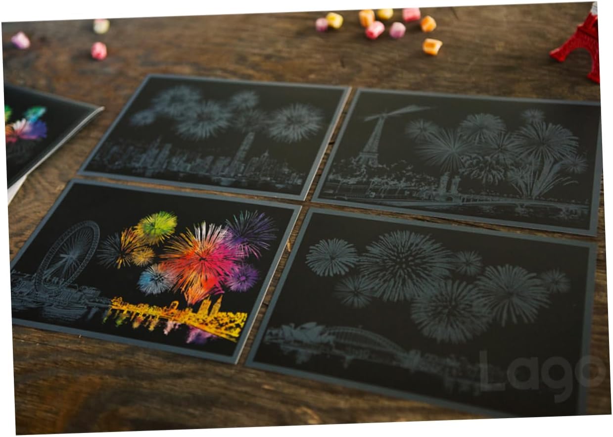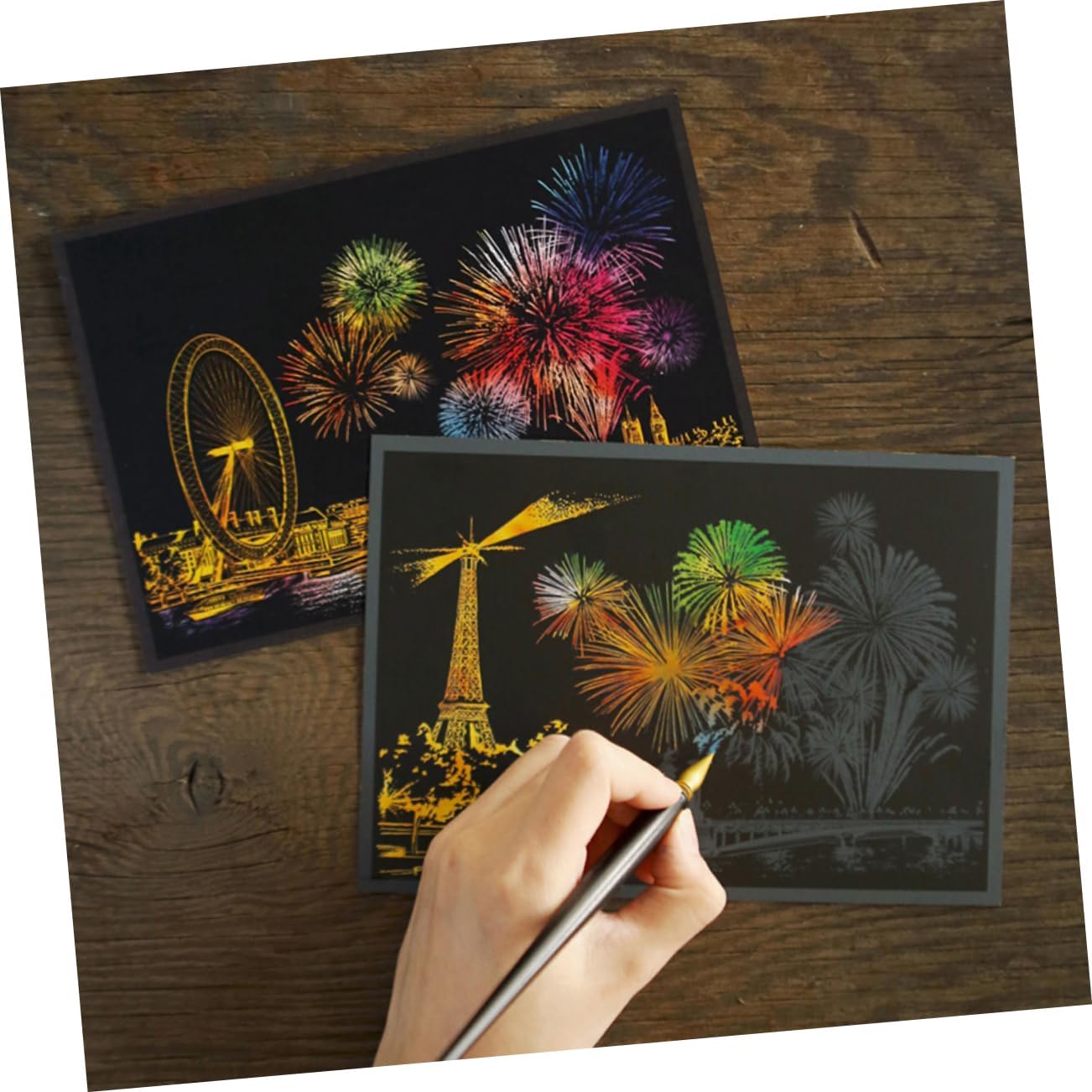 Immagine antigraffio: pregevole fattura con aspetto attraente, artigianato con carta antigraffio Disegno da graffiare con vista notturna: vista, vivida e realistica, lavoretti con la carta da grattare Immagine da grattare fai da te: fornisce un modo divertente e sicuro per ragazzi e ragazze di scarabocchiare, imparare a scrivere e disegnare per i bambini, gratta e vinci lavoretti con la carta Pittura raschiante: puoi montarla con una cornice appesa muro o appoggiata sulla scrivania, gratta e vinci con la carta Lavoretti con la carta antigraffio: immagine antigraffio notturna di sicurezza, attraente e sognante, immagine antigraffio