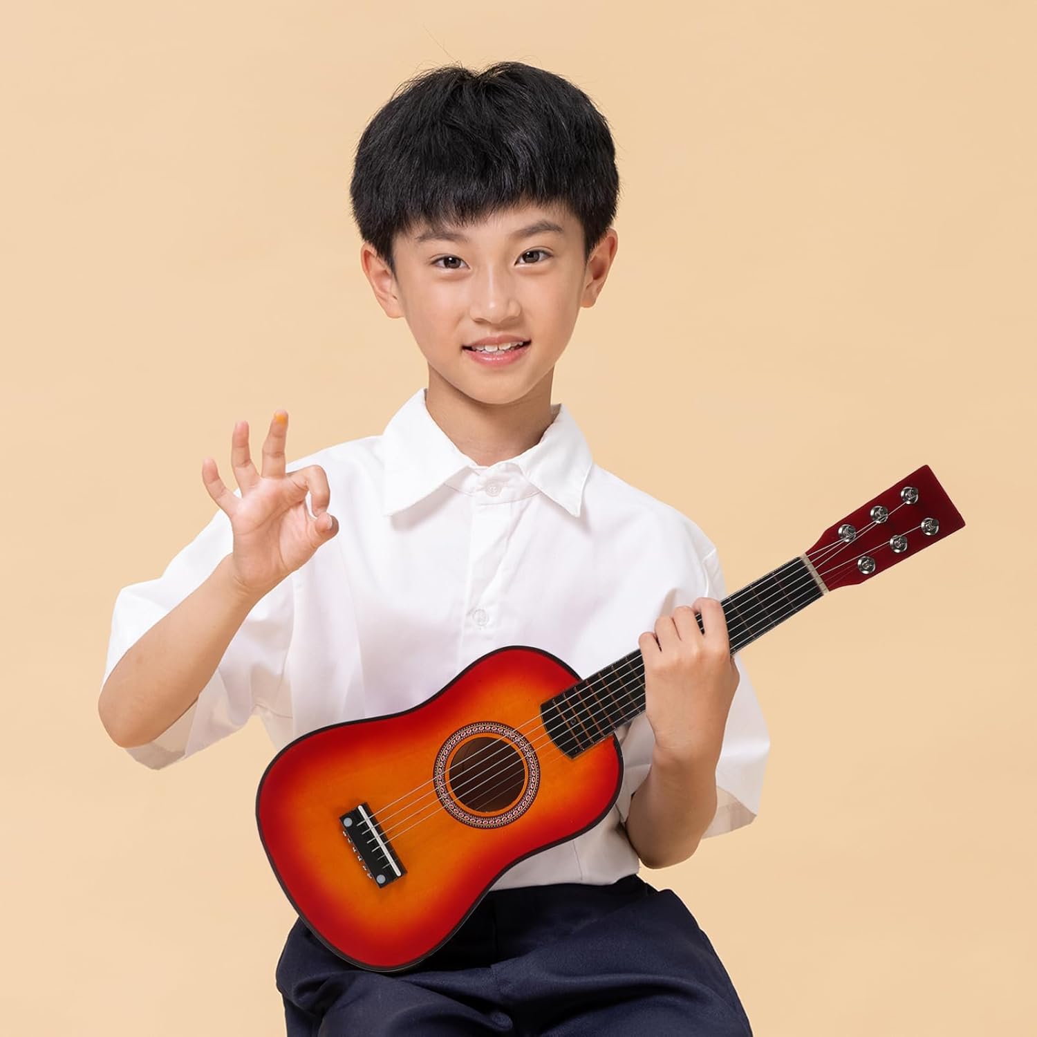 realizzato in materiale di pregevole fattura, bello e . buona scelta come per i tuoi amici o famiglie. ottimo per i principianti che vogliono imparare a suonare la chitarra. La chitarra da 21 pollici è comoda da tenere in mano. il suono è nitido e piacevole all'orecchio.