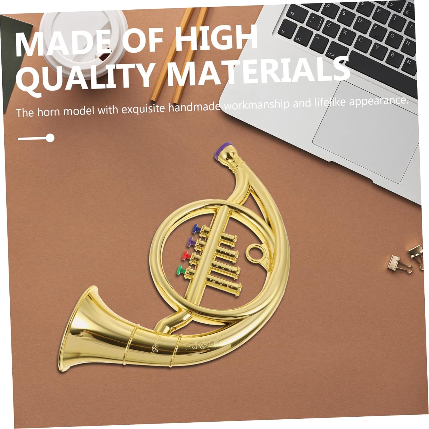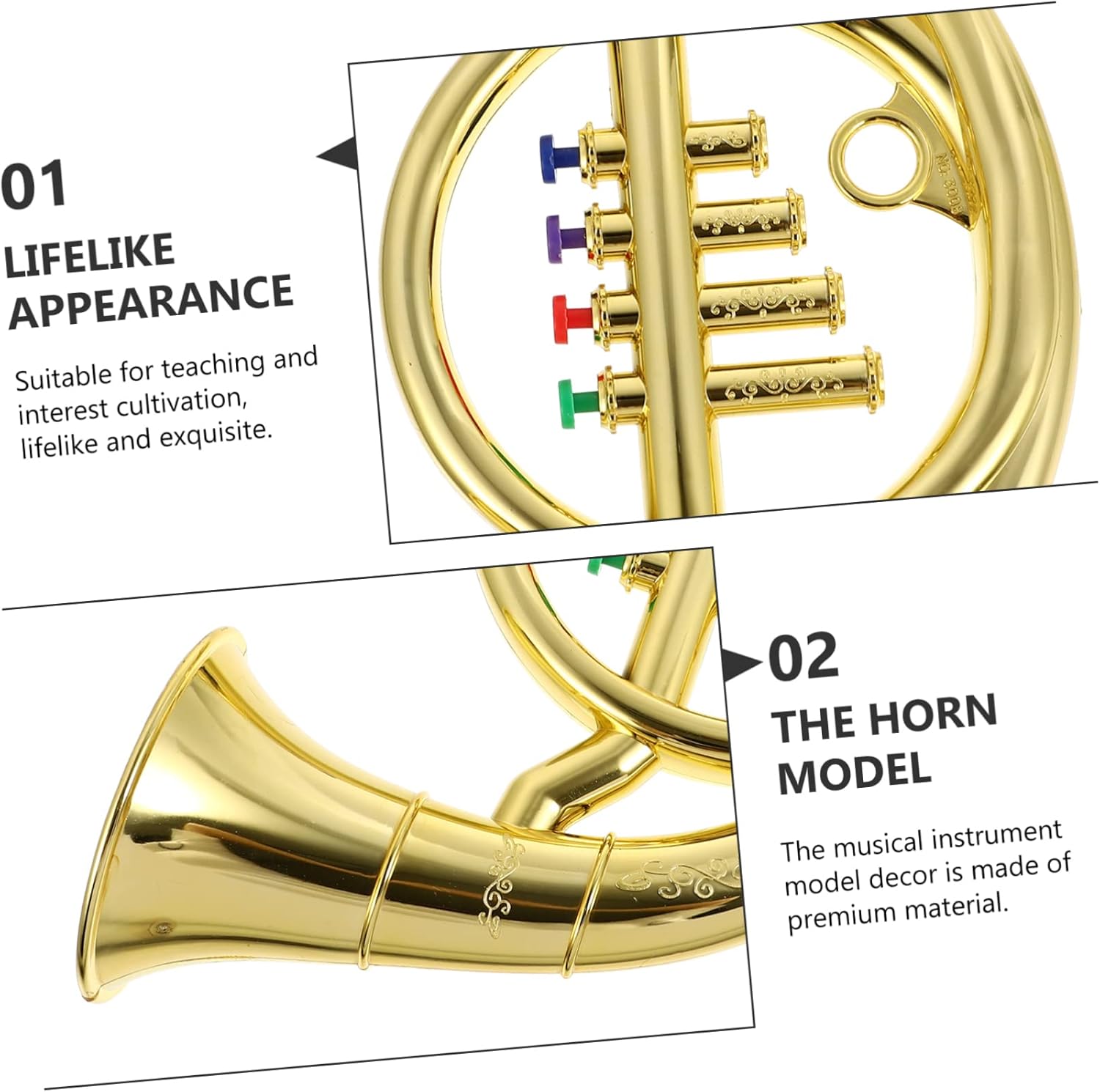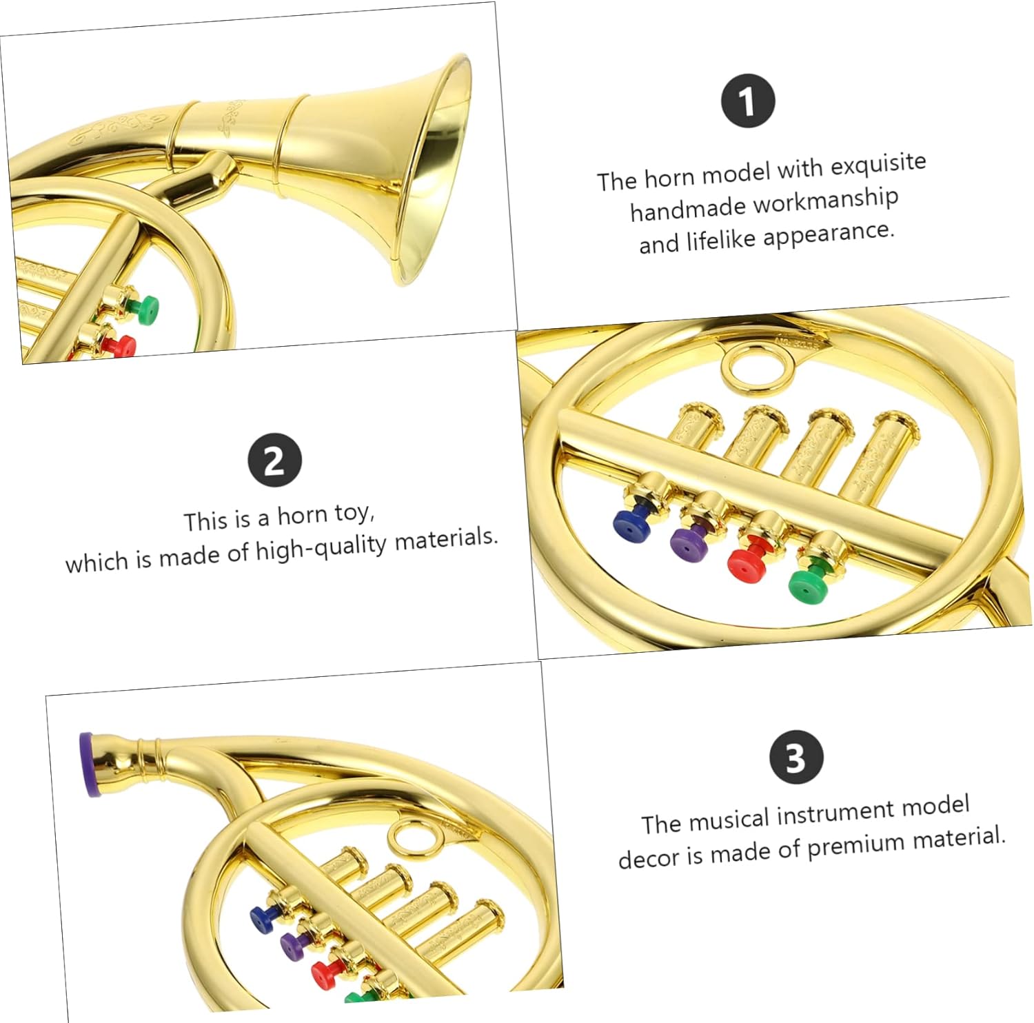 Strumento a fiato per bambini: i bambini possono usare questo giocattolo creativo per completare la loro esibizione sul palco, corno francese per bambini Giocattolo di strumento musicale: il di strumento musicale è decorato con un bellissimo e finto corno francese. Corno francese per bambini: questo giocattolo a forma di corno ti darà spazio per esibirti e i loro giocattoli a forma di corno saranno sicuri di sé. Corno per strumenti giocattolo per bambini: è liscio, comodo da pulire e non ferirà le mani dei bambini, corno francese per bambini da suonare I bambini suonano il corno francese: lo strumento musicale progettato per aiutare i bambini a imparare a suonare lo strumento musicale, il corno