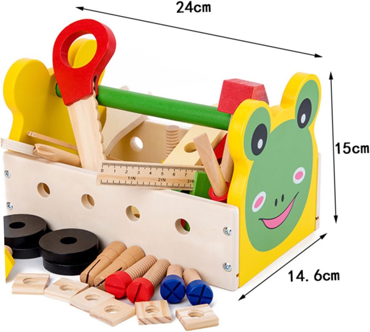 Giocattoli educativi: questo prodotto è pittura ad acqua, è e non danneggerebbe la salute dei bambini, giocattolo in legno per bambini Giocattolo in legno per bambini: i bambini possono giocarci con i loro partner, il che può farli imparare a condividere e promuovere le loro abilità sociali, giocattoli educativi Giocare con questo giocattolo può esercitare la capacità del bambino di operare e promuovere il suo sviluppo intellettuale Questo giocattolo con cassetta degli attrezzi è realizzato in legno massiccio, quindi la sua forma non verrà modificata facilmente e può essere utilizzata a lungo Ci sono molti tipi di strumenti in questo set di giocattoli, quindi può soddisfare la conoscenza e l'uso degli strumenti necessari per la vita quotidiana del tuo bambino