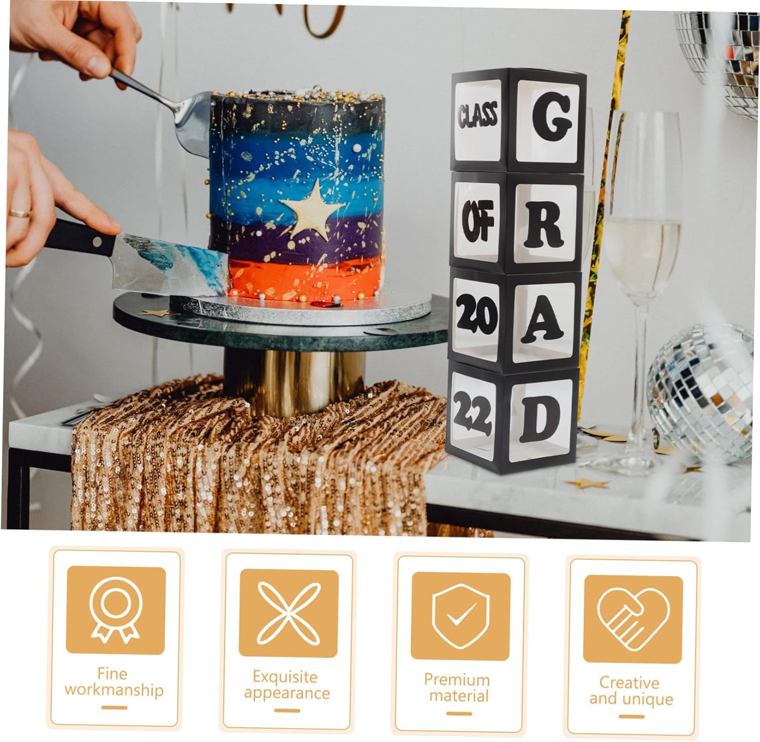 Contenitore per palloncini: è la scelta per la decorazione della festa di laurea, bellissimi oggetti di scena per foto e sfondi fotografici, decorazioni per la festa di laurea Porta palloncini per laurea: scatole e palloncini semplici e facili da usare, comodi e attraenti per decorare la tua festa, scatole per palloncini con lettere di laurea Custodie per palloncini: l'arredamento e versatile è molto adatto per la decorazione di feste, puoi inserirne alcuni, ornamenti e luci a corda, custodie per palloncini per laurea Oggetti di scena per la fotografia: possono essere utilizzati per conservare molti piccoli decori, consentirti di creare decorazioni in stile , rendere la tua festa straordinariamente distinta, scatole di palloncini per feste di laurea Scatole per palloncini di laurea: possono aiutare a creare un'atmosfera calda e festa di laurea ed è un buon oggetto di scena per la fotografia, le scatole di palloncini adornano