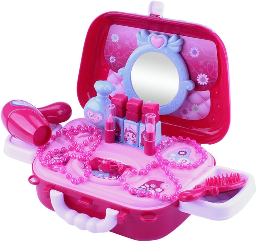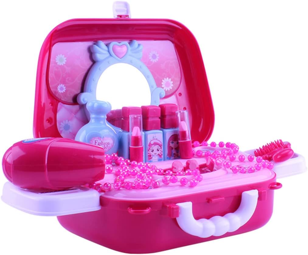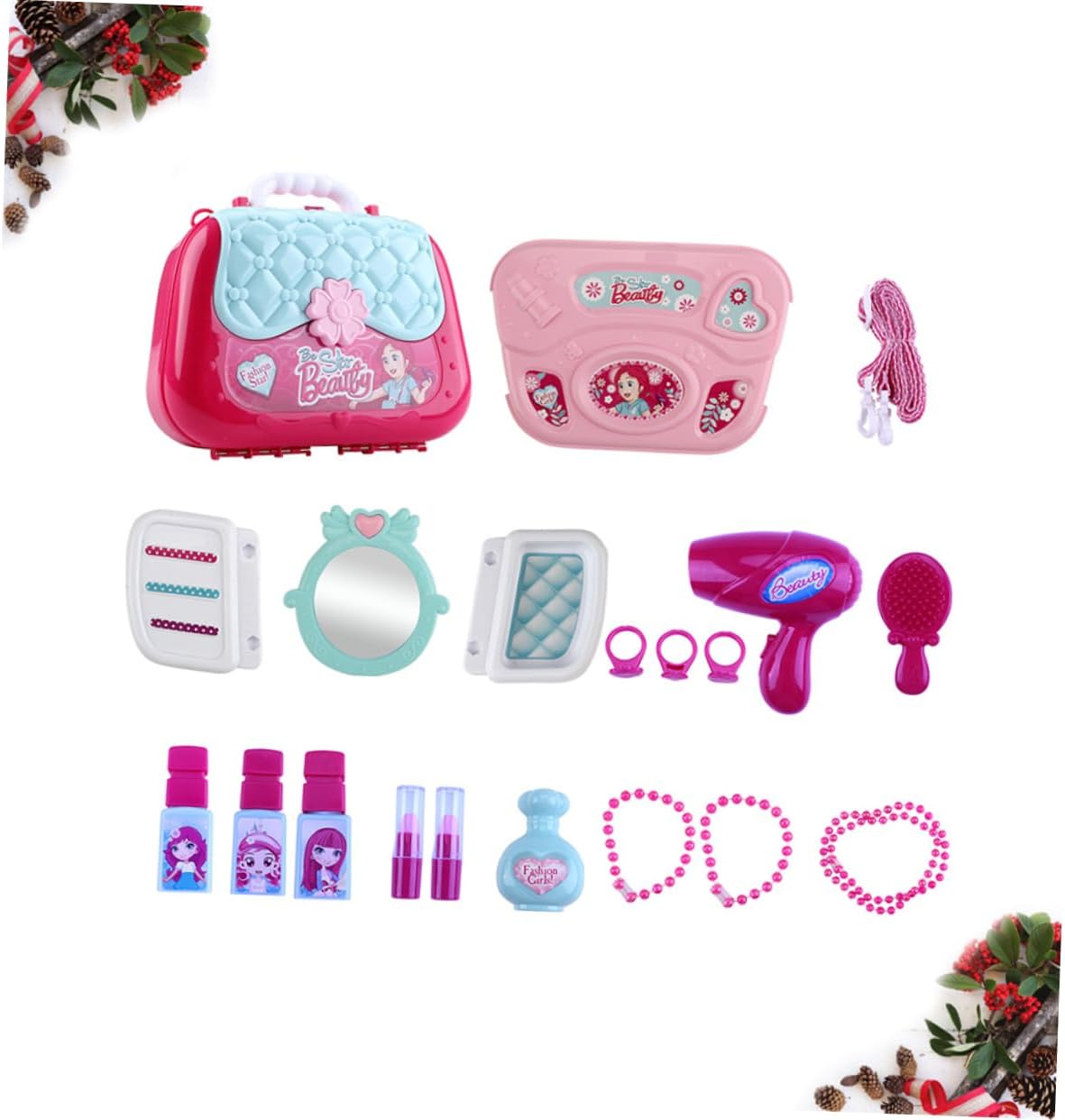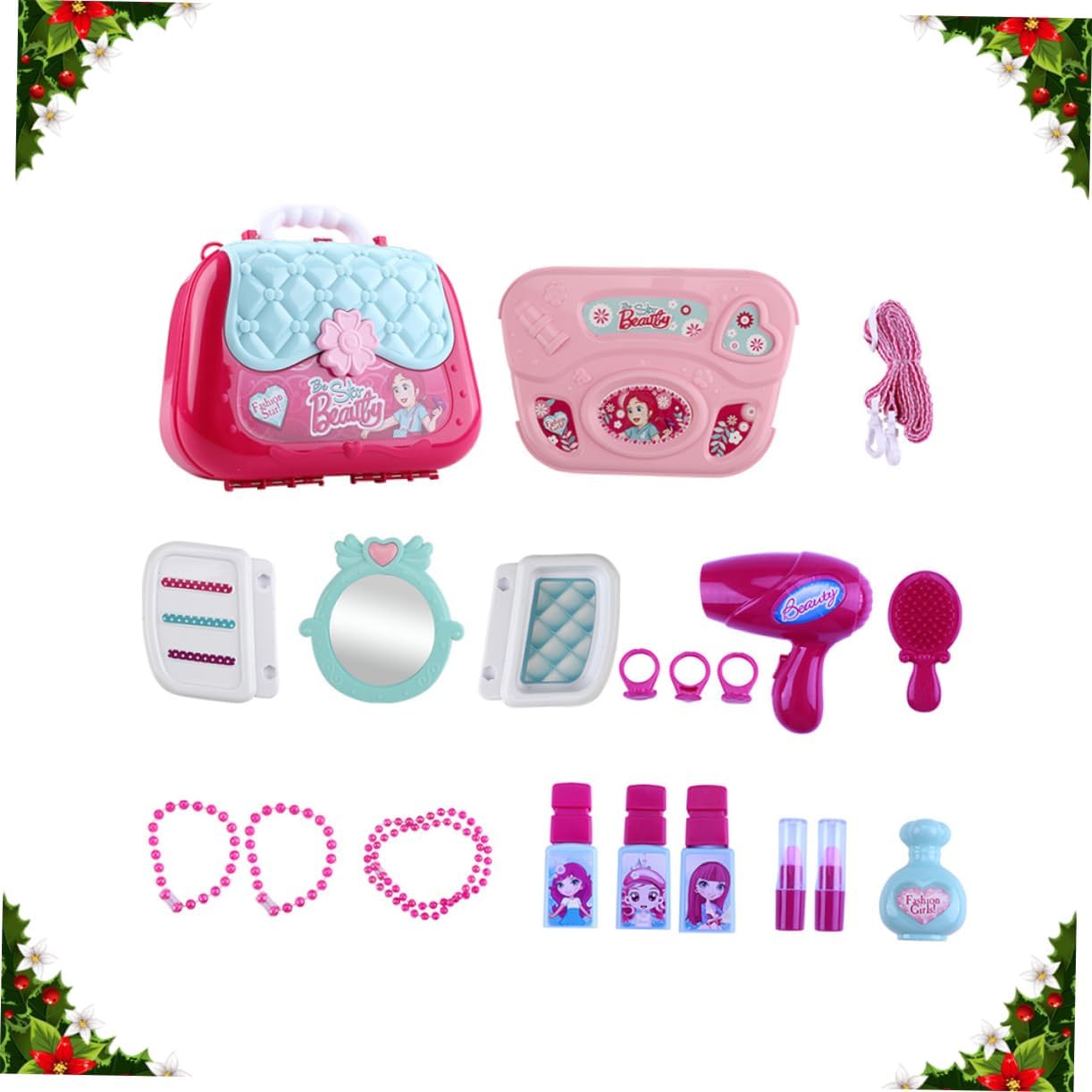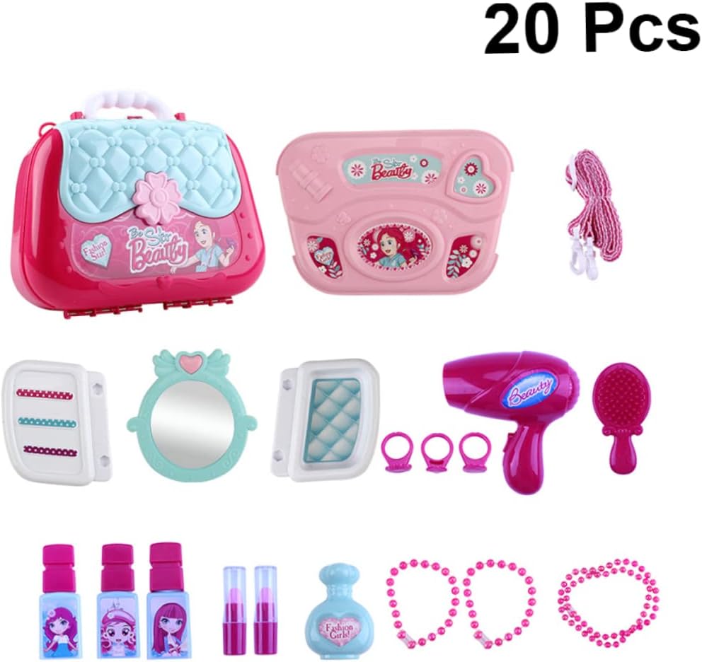 Kit trucco per bambine: adatto per un regalo alle vostre bambine. Set da gioco per bambini: perfetto per giocattoli finti, trucchi per feste, cosplay, ecc. Borsa a tracolla per bambini: il giocattolo cosmetico può aiutare a sviluppare l'abilità manipolativa dei tuoi bambini. Finta di truccarsi: realizzata in materiale, sicura, non dannosa per la salute. Kit trucco per ragazze: anche un giocattolo interattivo genitore-figlio.