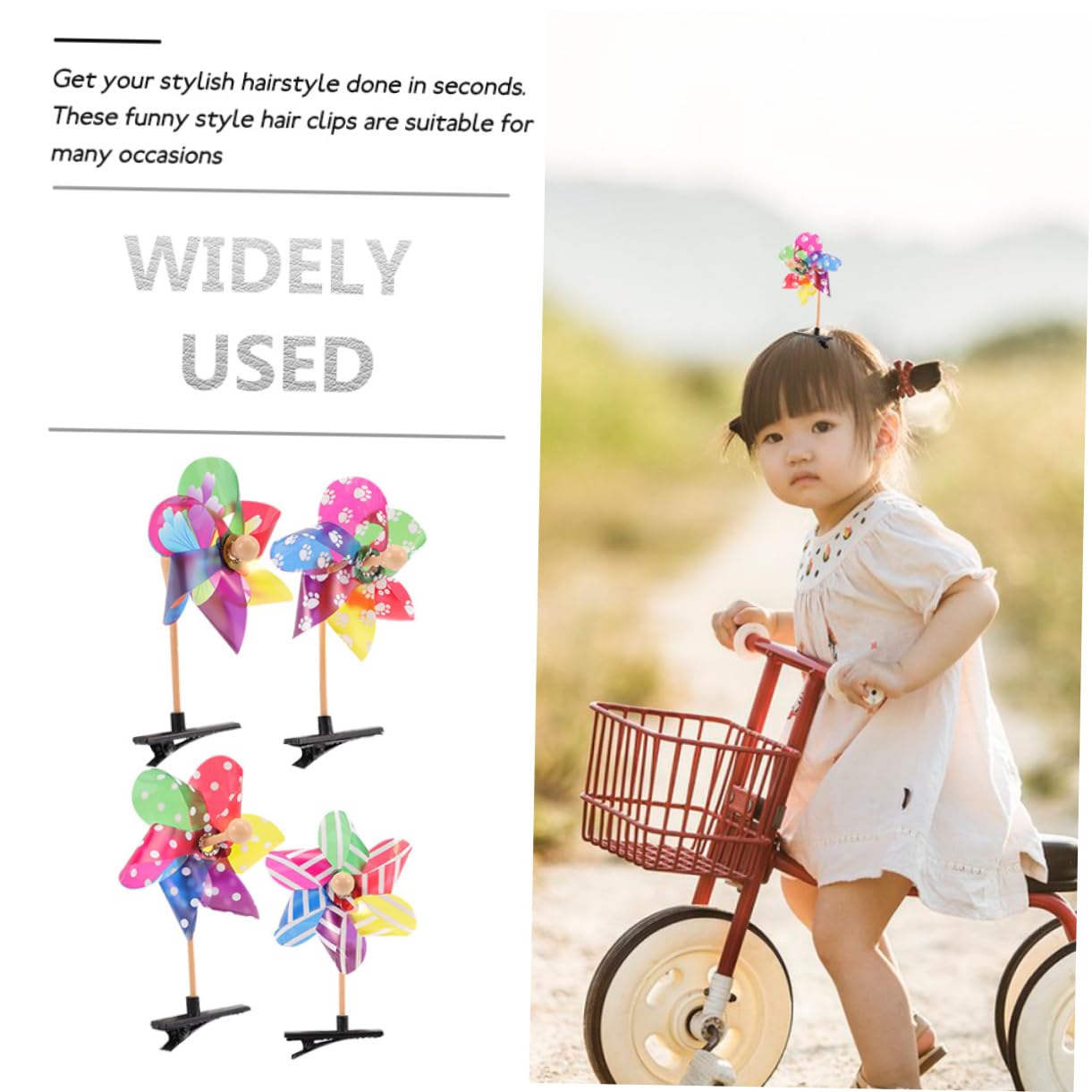 Accessori per capelli per ragazze: usi diversi. per compleanni, appuntamenti, vita quotidiana, scuola, viaggi e molto altro ancora. Fermaglio per capelli da donna: ogni fermaglio per capelli è realizzato con cura, conferendo al fermaglio per capelli un tocco di giocosità e versatilità. Accessori per bambini e bambine: goditi il fascino che aggiungono alle tue acconciature per renderle più accattivanti e distinguerti dalla massa. Fermagli per capelli da donna: i fermagli sono facili da usare e rimangono saldamente in posizione, rendendoli ideali per adolescenti e ragazze. Fermagli per capelli Windmill per ragazze: disponibili in colori vivaci e design divertente, possono facilmente ravvivare i tuoi abiti e le tue acconciature.