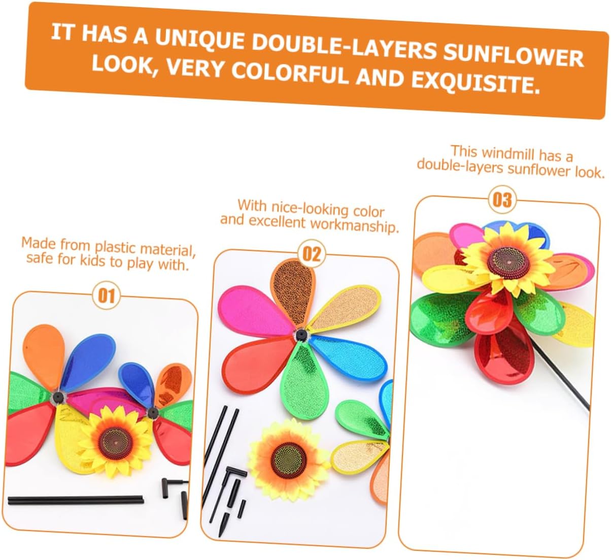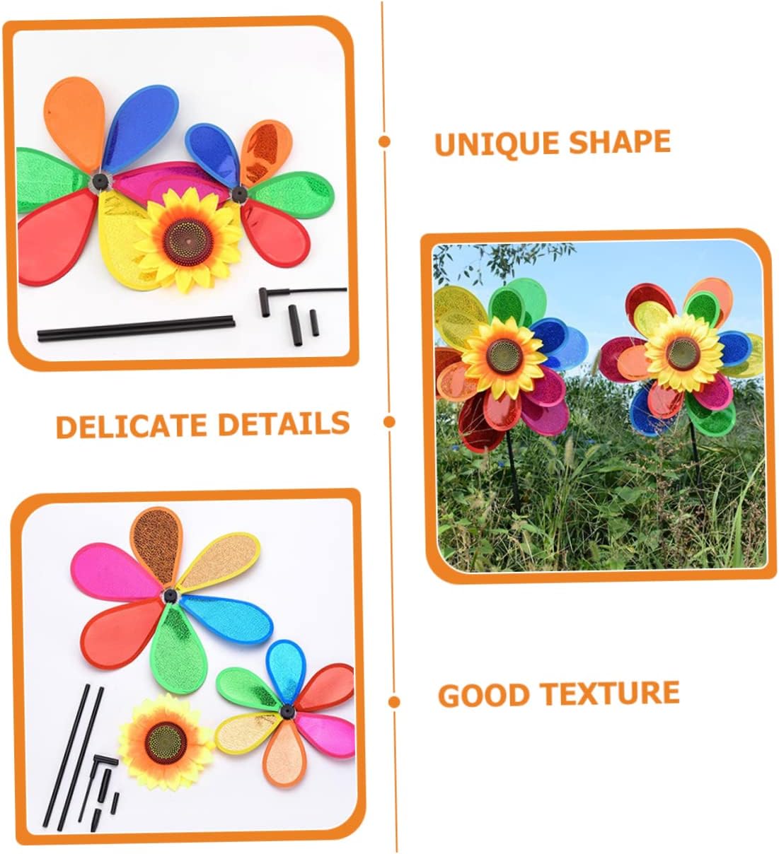 Decorazione da giardino a forma di mulino a vento: delicata forma di girasole per offrirti un'esperienza d'uso soddisfacente e un umore più felice ogni volta che lo vedi, girandola di fiori a forma di mulino a vento di girasole Mulinelli giocattolo: realizzati con materiali plastici, questi mulini a vento sono sicuri e decorativi e possono essere utilizzati a lungo termine Girandola: questo mulino a vento è adatto ai che agli adulti, può renderli più allegri, mulino a vento a forma di girasole Mulini a vento da giardino: il mulino a vento può essere tenuto in mano o inserito direttamente nel terreno, è un bellissimo mulino a vento giocattolo Girandola da esterno: realizzata in materiale plastico, lavorazione eccellente, non facile da strappare o rompere, durevole e sicura per un uso duraturo, girandola da esterno a forma di girasole