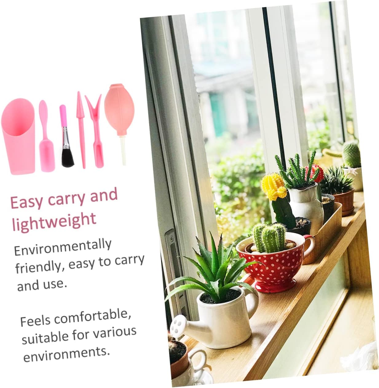 Kit di attrezzi per la piantagione di piante succulente: un mini attrezzo da giardinaggio perfetto e completo per gli amanti della piantagione, attrezzi per la piantagione di piante succulente Kit per la cura delle piante: gli strumenti sono realizzati in materiale robusto per un uso durevole e pratico, kit per piante grasse Kit da giardinaggio: il design compatto lo rende più comodo da riporre e trasportare, kit di piantagione Strumento per piante succulente: perfetto per attività di giardinaggio come la coltivazione di piantine, la perforazione di buchi, la piantagione di piante carnose, lo scavo di piantine, il trapianto, la rimozione della polvere dal terreno con la pala, i kit per la piantagione di piante succulente Kit di attrezzi per bonsai: questo design ergonomico ti aiuta a utilizzare gli strumenti con facilità, kit per piantare piante grasse