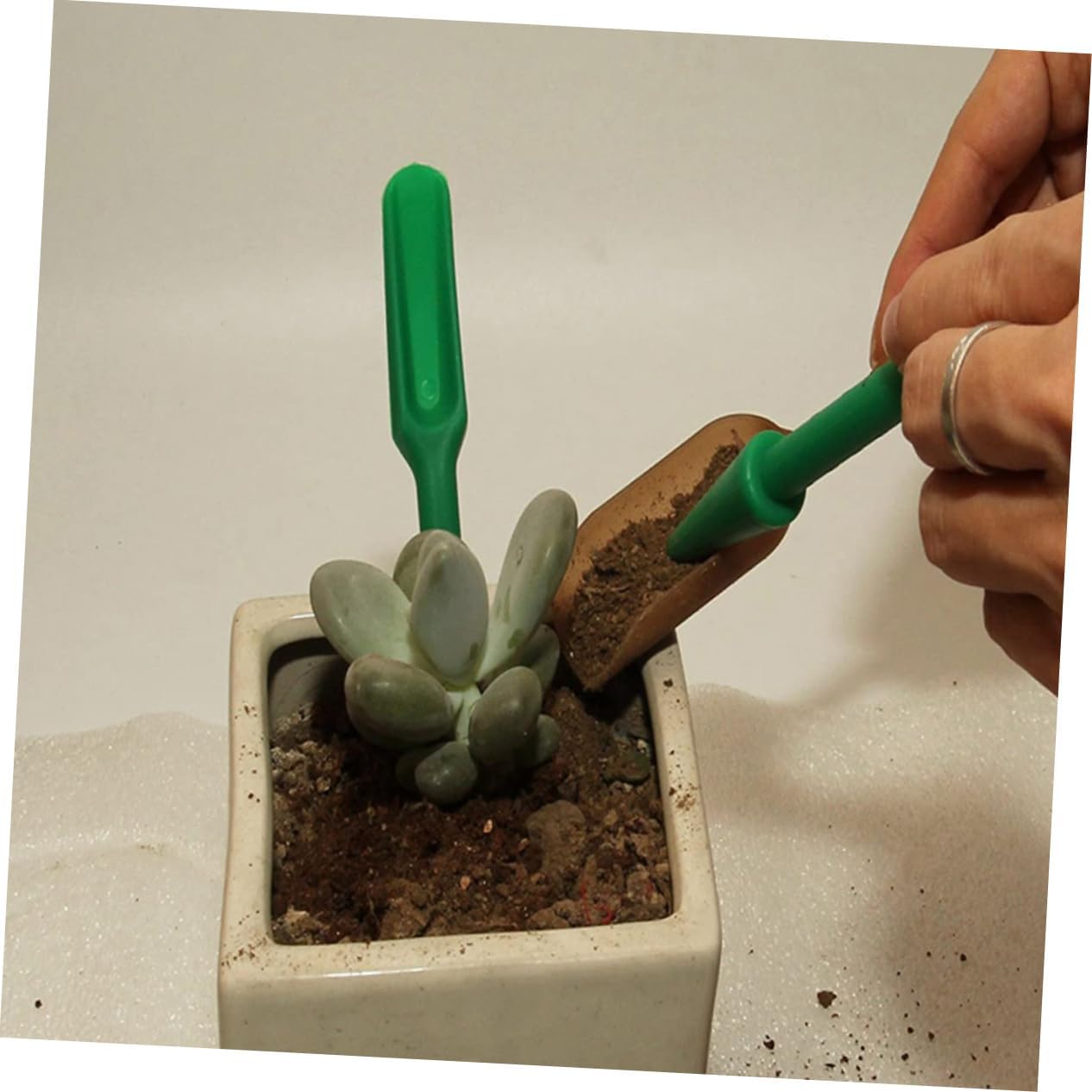 Strumento per il trapianto: perfetto per il giardino sul balcone, il mini giardino, il kit da giardinaggio Kit da giardinaggio: questo set di attrezzi da giardino è un perfetto per gli amanti del giardinaggio, dispenser E leggero il set include 1 annaffiatoio, 1 spazzola per la pulizia, 1 pala, 2 pinzette e 2 strumenti per il trapianto Strumento: il design della bocca piegata dell'annaffiatoio può aiutarti ad annaffiare bene le radici delle piccole piante, la spazzola antipolvere è morbida, può facilmente spazzolare la polvere superficiale, kit da giardinaggio Distributore: il set può aiutarti a smuovere il terreno e trapiantare le piantine in modo sicuro, kit da giardinaggio