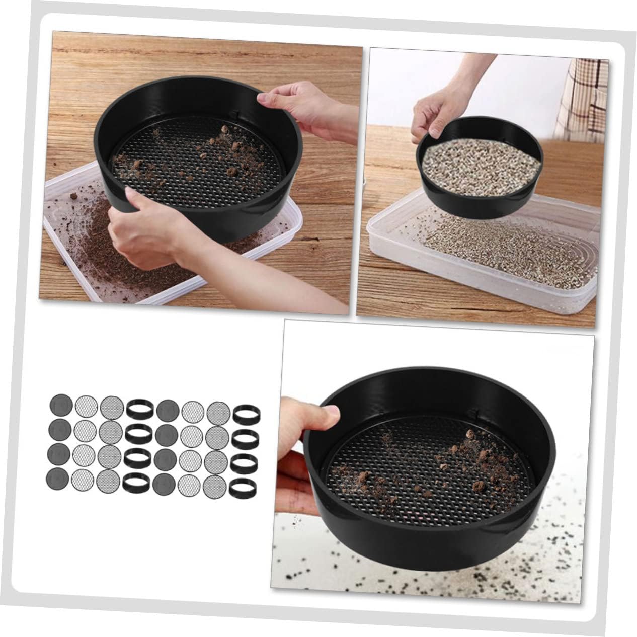 Setacci per terreno: con maglia uniforme, adatti per setacciare pietre e sabbia, ottimi per la piantumazione in giardino, rete di setacciatura in plastica Rete per setacciare le pietre del terreno: ti facilita il lavoro in giardino e la della maniglia è comoda e comoda da impugnare, mini setacci Setaccio di plastica: con questo strumento, puoi portare molta comodità nella tua vita quotidiana, kit setaccio da giardino Setacci da giardino: questo setaccio è durevole, sicuro, portatile, facile da usare, un valido aiuto, setacci portatili Setaccio multifunzionale: realizzato con materiale plastico di alta qualità, durevole e pratico da usare, kit di attrezzi da giardinaggio