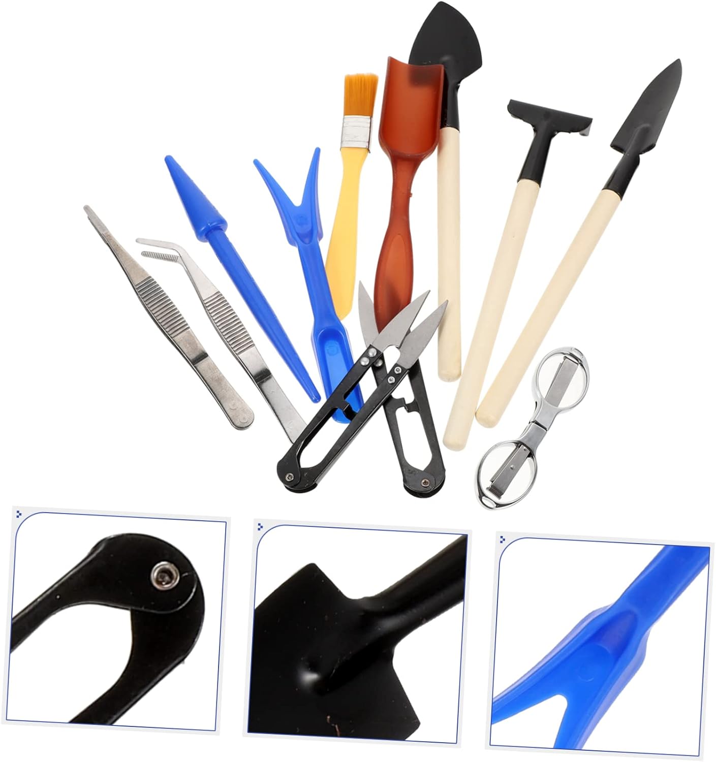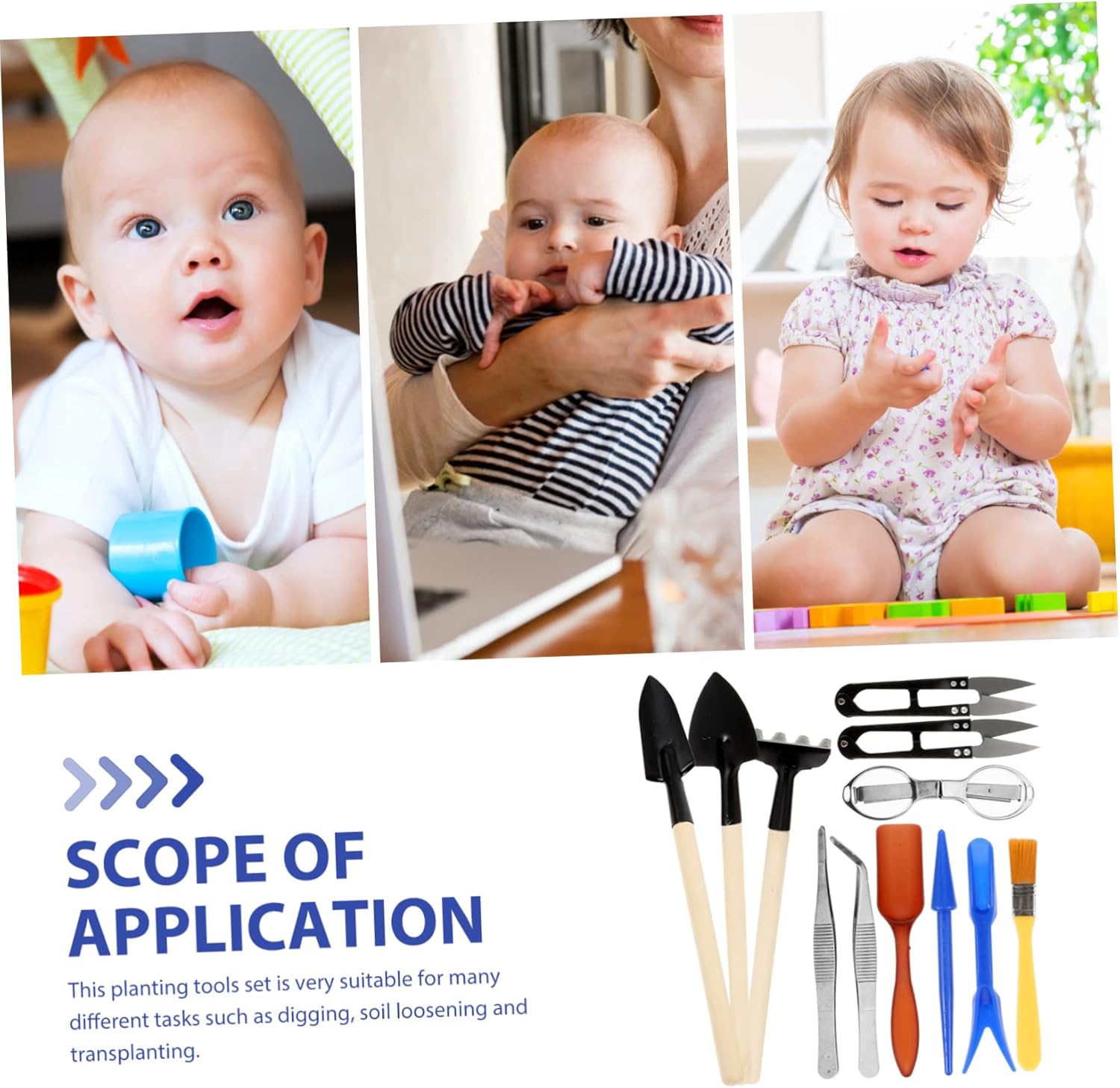 Attrezzi da giardino e prato: realizzati in legno e metallo di qualità, questo set di attrezzi da giardinaggio è inodore e molto resistente. attrezzi per la cura del giardinaggio Attrezzi da giardino in miniatura: il set di attrezzi da giardino è adatto per il giardinaggio di vari tipi di piante, è un valido aiuto per la piantagione, attrezzo da giardinaggio in miniatura Attrezzi da giardinaggio manuali: design ergonomico per una presa comoda, la tua mano non si affaticherà facilmente quando usi questi attrezzi da piantagione, attrezzi da giardino per scavare a mano Forniture per giardinaggio: questo set di strumenti per piantare è molto adatto a molti compiti diversi come scavare, allentare il terreno e trapiantare, strumenti da giardinaggio in miniatura Attrezzi da giardinaggio per principianti: questo set di attrezzi da giardinaggio può essere inviato come ai tuoi amici o familiari che amano il giardinaggio e la piantagione, piccoli attrezzi da giardinaggio