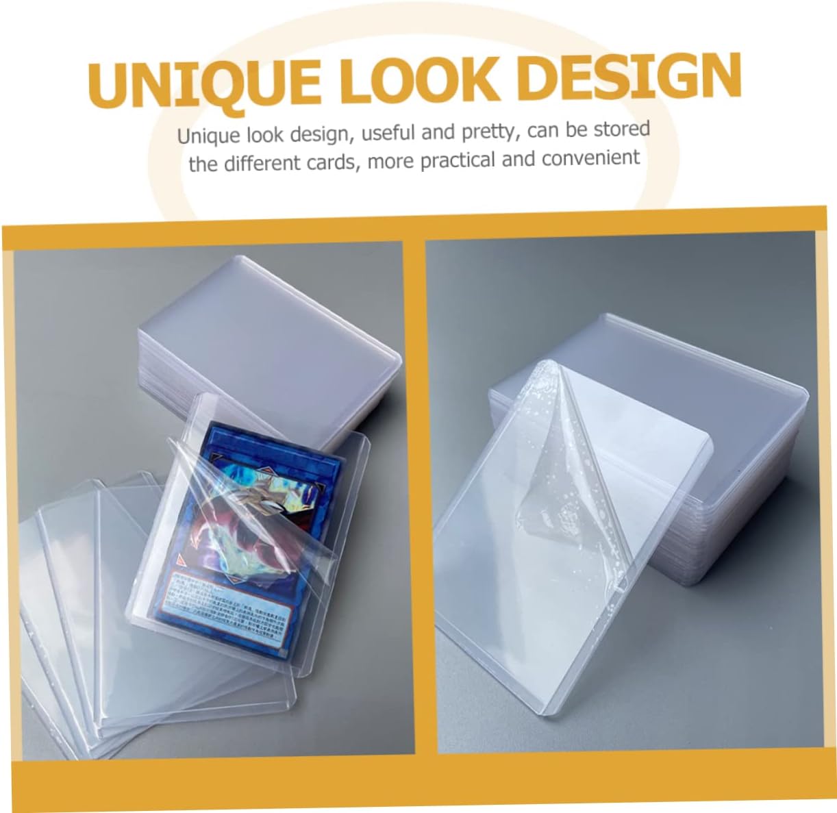 Buste per biglietti da visita: design pratico, semplice e facile da usare, porta molta comodità nella vita quotidiana. Custodia per carte in plastica: realizzata in materiali plastici, resistente e sicura, eccellente e protettiva per un uso prolungato. Buste per carte da baseball: multifunzionali e versatili, possono essere utilizzate per conservare carte da gioco da tavolo, carte collezionabili, foto e così via. Copertina per carte da gioco: buona sensazione alla mano, resistente all'usura e riutilizzabile, adatta e adatta per la protezione delle carte. Buste per carte in plastica: con il design della copertina trasparente, puoi vedere chiaramente il contenuto della carta, pratico.