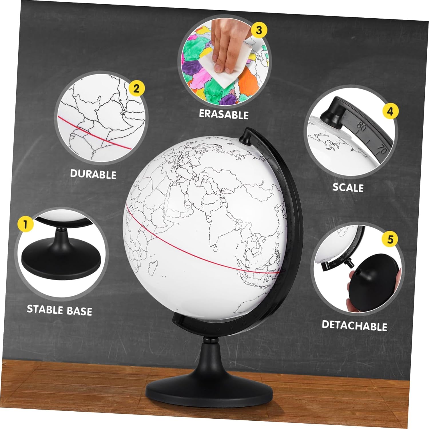 Globo dipinto vuoto: buon materiale, molto sicuro e affidabile da usare, ti garantisce un utilizzo a lungo, ornamenti per colorare il globo Colorare globi fai da te: puoi scrivere alcune nozioni di geografia su questo globo vuoto, ed è un buon supporto didattico, globo interattivo Modelli di mappamondo cancellabili: design vuoto e non verniciato, un buon per il fai da te e la pittura, mappamondo educativo non verniciato Globi vuoti decorativi: realizzati in materiale pvc, puoi usarli in tutta tranquillità, adatti per lezioni d'arte o attività manuali, di pittura di mappamondo Artigianato decorativo con mappamondo: questa decorazione con mappamondo incompiuto può essere utile da inviare ai tuoi amici o familiari, mappamondo da colorare fai da te