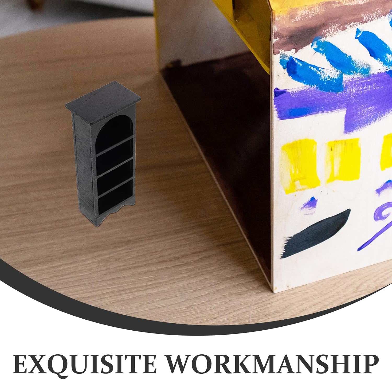 Libreria in miniatura realistica: questa libreria in miniatura mostra una lavorazione artigianale dettagliata, conferendo un fascino realistico alla tua collezione di mobili per la casa delle bambole Costruzione robusta: realizzata in legno nero, questa libreria garantisce stabilità e longevità Appeal artistico: aggiunge un tocco artistico unico, elevando l'estetica degli interni della tua casa delle bambole Libreria in miniatura: adatta per scene di case delle bambole, questa libreria consente composizioni creative e in miniatura Compatto e funzionale: le sue dimensioni ridotte e il design leggero lo rendono facile da spostare e posizionare, migliorando la versatilità della configurazione della tua casa delle bambole