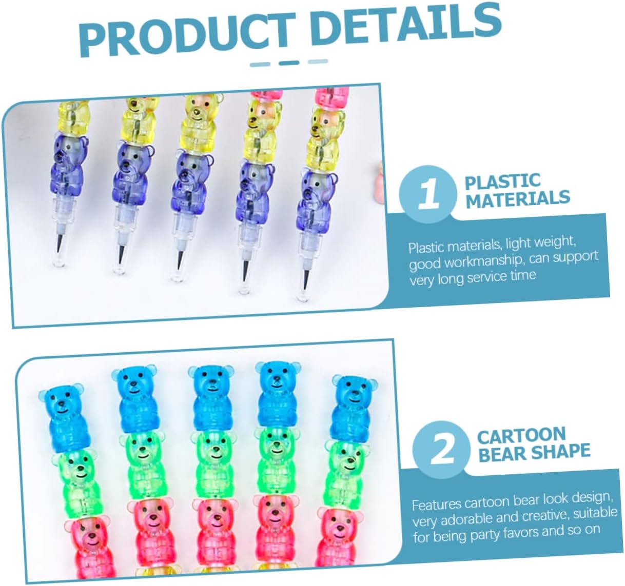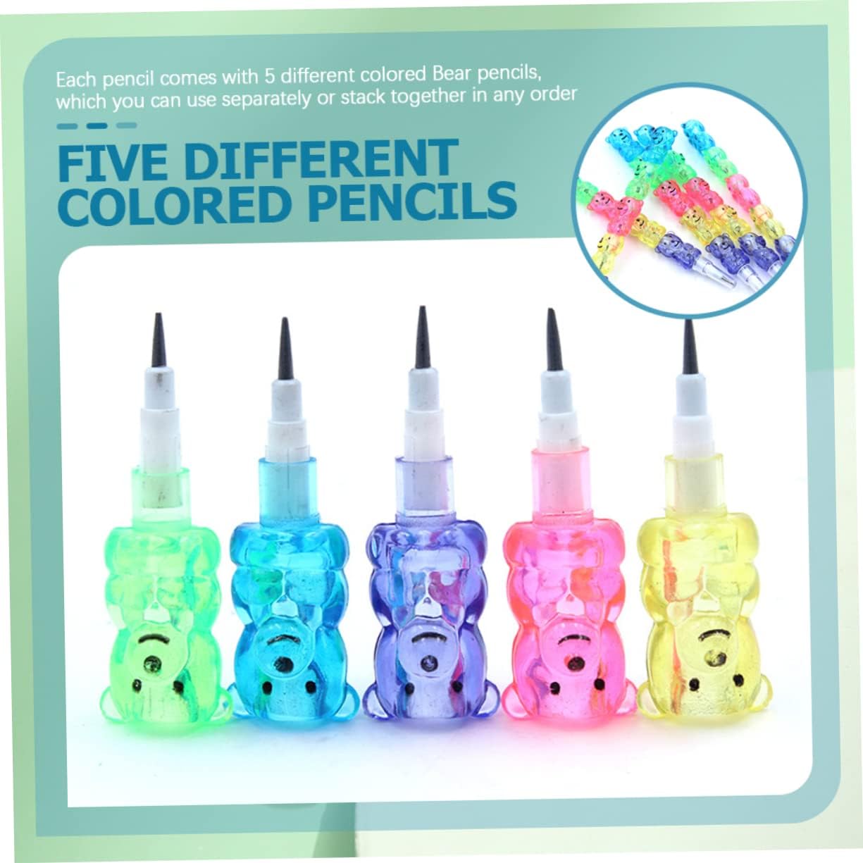 Matite sfuse per bambini: materiali e affidabili, leggerezza, lavorazione dettagliata, possono supportare lunghi tempi di servizio. Matita per scrivere: presenta un design dall'aspetto di un orso dei cartoni animati, molto adorabile e creativo, adatto bomboniere e altro ancora. Matite impilabili per bambini: vengono fornite quantità sufficienti, scelta perfetta per ufficio, casa e casa per mantenere il consumo quotidiano di matite. Matite per la scuola: vengono fornite quantità sufficienti, scelta perfetta per la scuola, l'ufficio e la casa per mantenere il consumo quotidiano di matite. Matita per studenti: ogni matita è dotata di sezioni di nuclei di matita affilabili, ogni sezione è pre-affilata, è necessario temperamatite, comoda da sostituire. basta togliere il nucleo della matita e spingerlo nella matita, dopodiché un nucleo uscirà dalla anteriore.