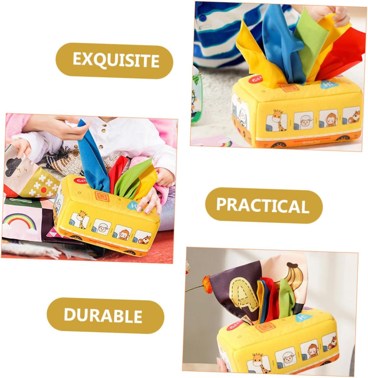 Giocattoli educativi per i più piccoli: realizzati con materiali sicuri, nessun odore speciale, sicuri per la scuola, possono essere utilizzati a casa o all'asilo, Giocattoli sensoriali Montessori per i più piccoli: realizzati in materiale sicuro e affidabile, è durevole e affidabile nell'uso, non sbiadisce facilmente, Giocattolo sensoriale Montessori per neonati: superficie e angoli finemente lucidati, senza sbavature e non fa male alle mani dei bambini, può essere utilizzato con sicurezza, Giocattolo sensoriale Montessori per neonati: realizzato con materiali durevoli, sicuri e delicata sulla pelle, i genitori possono far stare tranquilli i loro bambini, sensoriale per i più piccoli Montessori: misura adatta per le mani del bambino, la nostra scatola di fazzoletti attirerà l'attenzione del tuo bambino, buona per te, sensoriale per i più piccoli