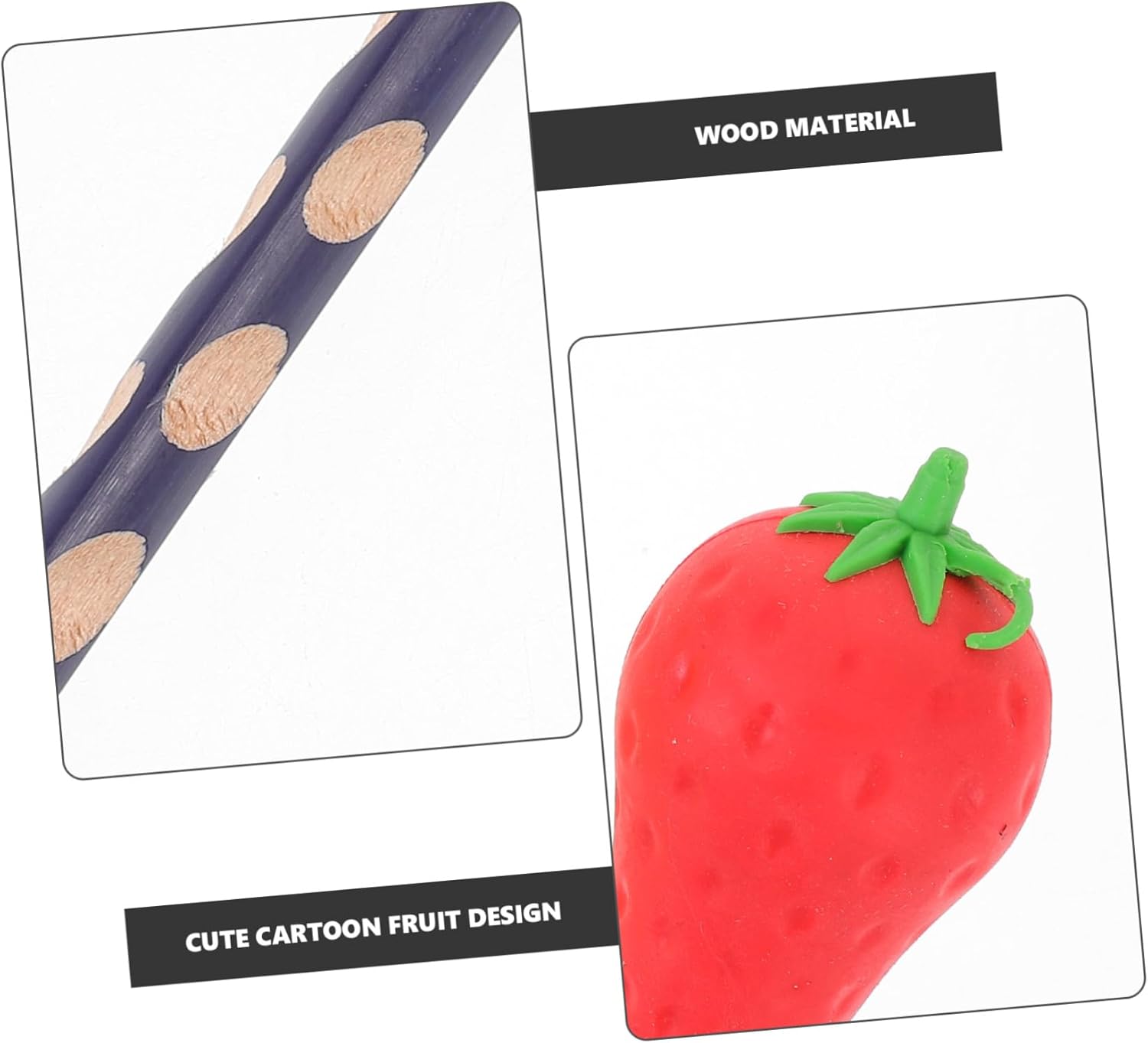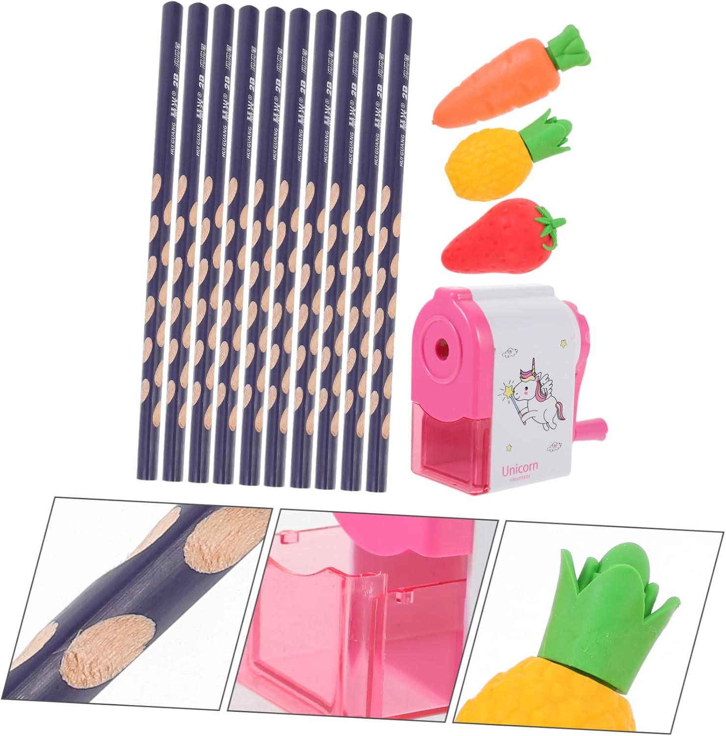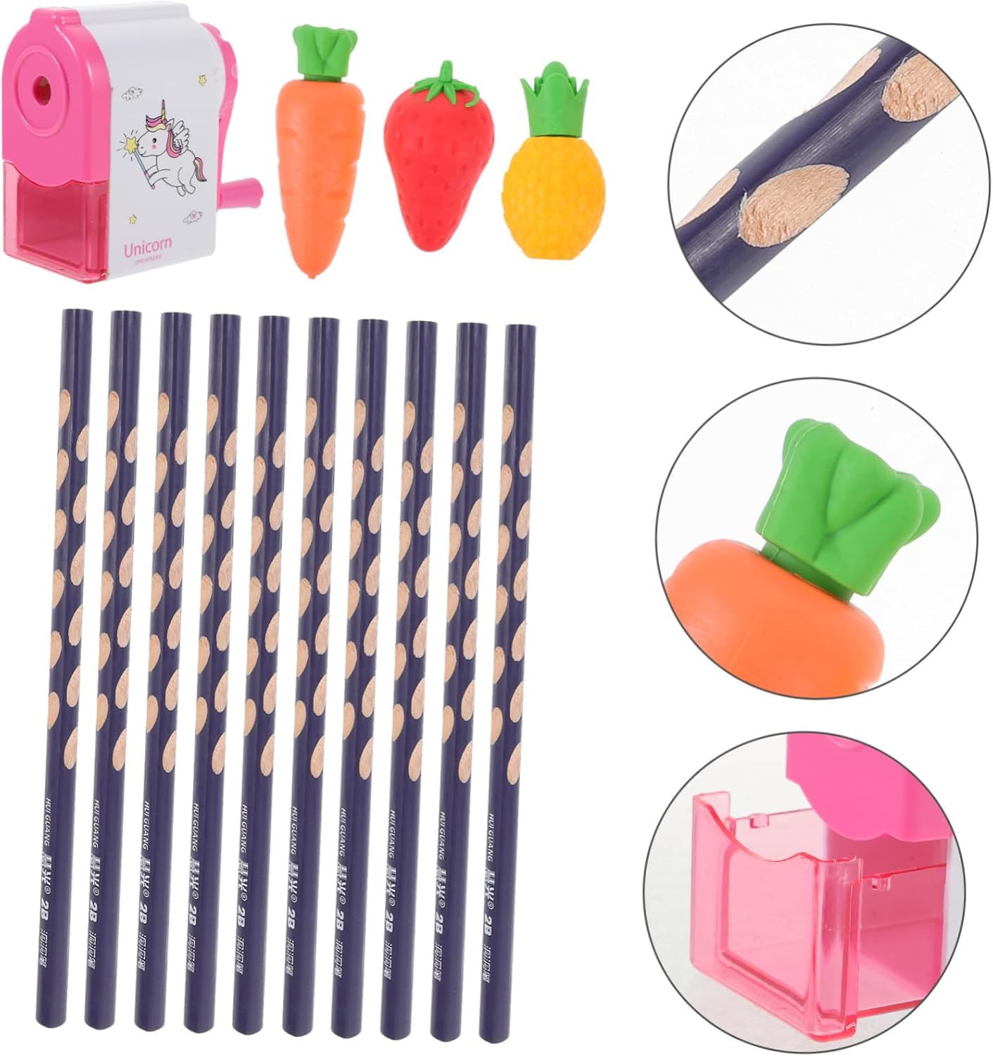 Matite per scrivere: una buona matita, gomma e temperamatite per schizzi, disegni e scritte su quaderni, fogli da disegno, sono naturali e sicuri da usare, gomme per dipingere la frutta Forniture per gli studenti: legno che protegge bene la e affila facilmente, può essere un premio per l'asilo per i piccoli, pratici, riempitivi del cestino pasquale Gomme da cancellare: la matita, la gomma e il temperamatite sono realizzati in legno e materiale plastico e hanno un design creativo e un aspetto raffinato, matite con impugnatura correttiva Matite con fori: ti offrono un'esperienza d'uso duratura, design dell'asta tonda più in linea con il senso d'uso delle persone, le persone sentono più a loro agio, matite scolastiche Matita per esame: la nostra matita, gomma e temperamatite sono adatti a studenti e adolescenti, questa matita è molto utile come materiale per lo , matite creative
