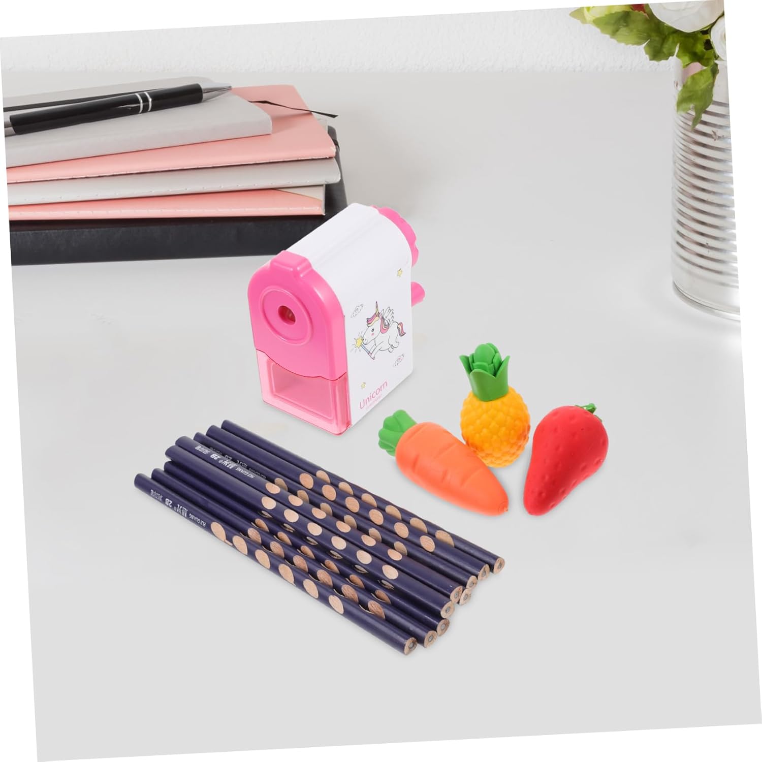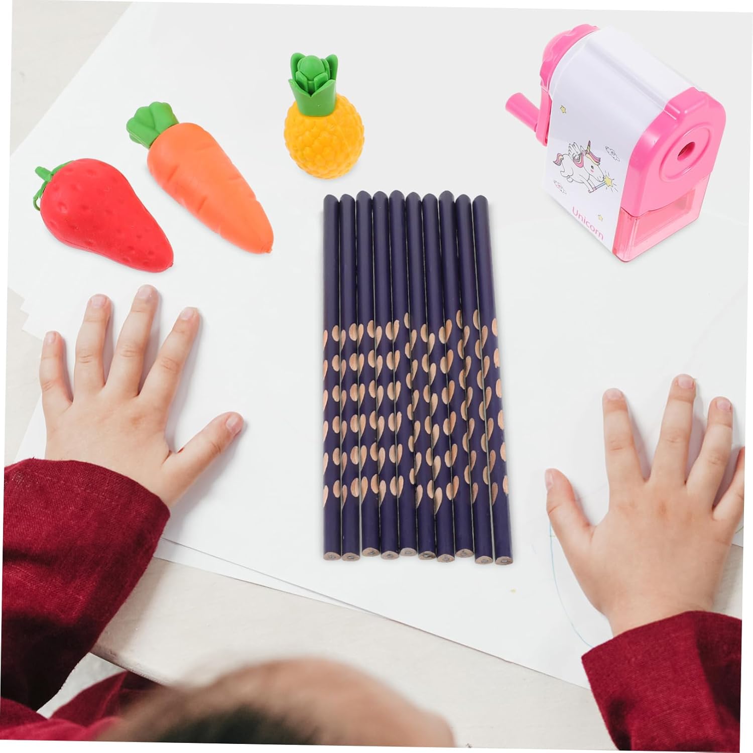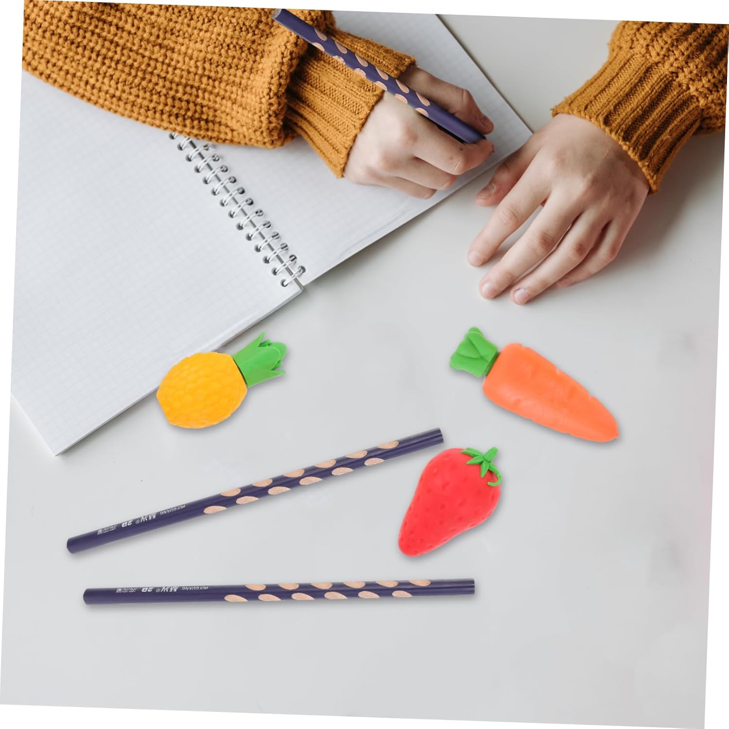 Matite per scrivere: una buona matita, gomma e temperamatite per schizzi, disegni e scritte su quaderni, fogli da disegno, sono naturali e sicuri da usare, gomme per dipingere la frutta Forniture per gli studenti: legno che protegge bene la e affila facilmente, può essere un premio per l'asilo per i piccoli, pratici, riempitivi del cestino pasquale Gomme da cancellare: la matita, la gomma e il temperamatite sono realizzati in legno e materiale plastico e hanno un design creativo e un aspetto raffinato, matite con impugnatura correttiva Matite con fori: ti offrono un'esperienza d'uso duratura, design dell'asta tonda più in linea con il senso d'uso delle persone, le persone sentono più a loro agio, matite scolastiche Matita per esame: la nostra matita, gomma e temperamatite sono adatti a studenti e adolescenti, questa matita è molto utile come materiale per lo , matite creative