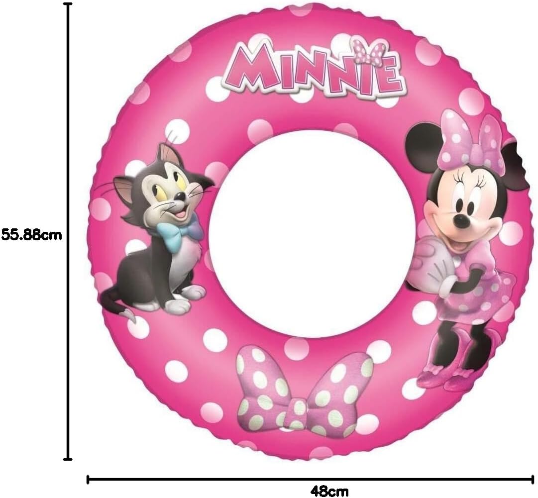 Dimensioni: 56 cm Divertente e colorata grafica con Minnie Mouse Da 3 a 6 anni Facile da gonfiare, sgonfiare e riporre Contenuto: 1 ciambella