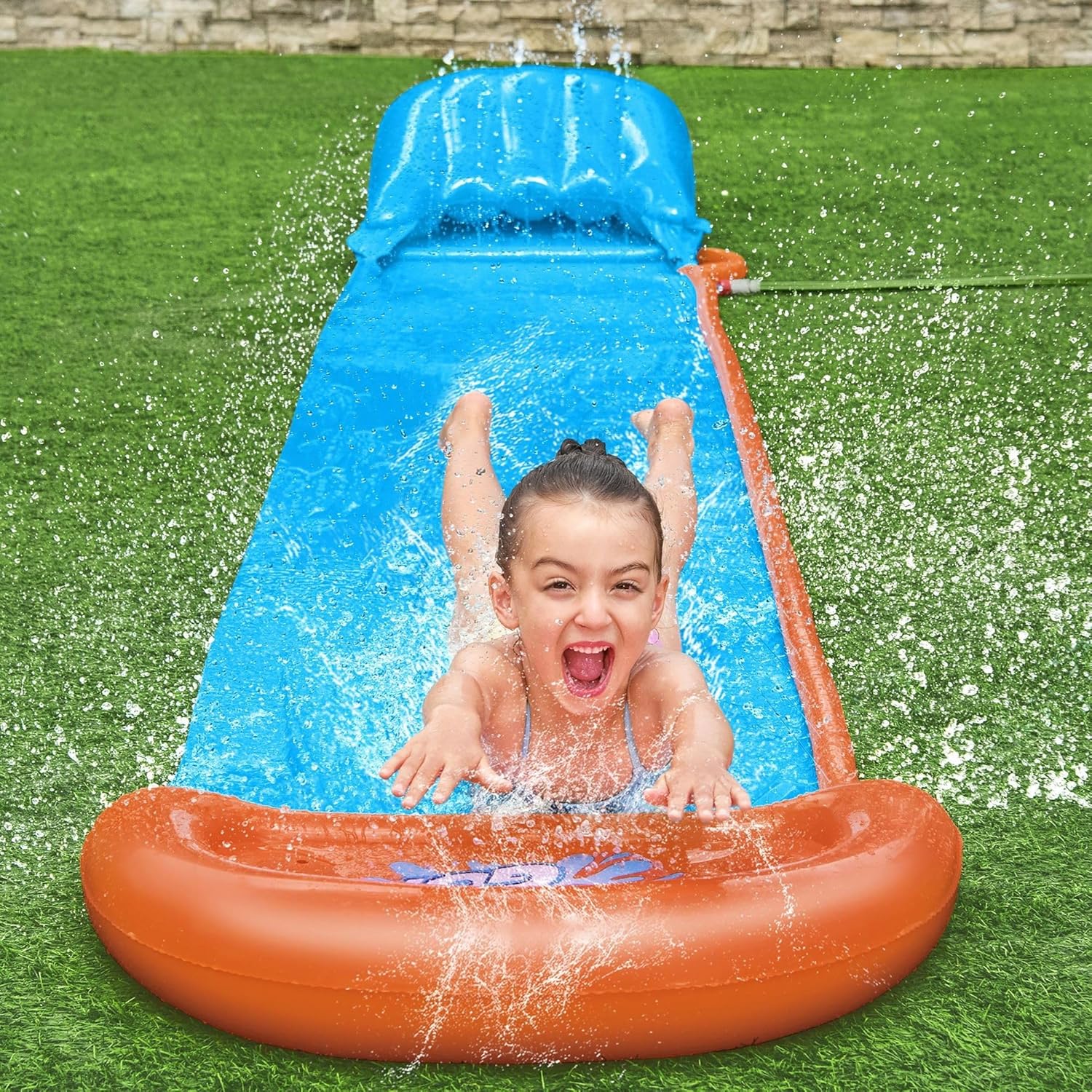 Dimensioni: 4,88 m Dai 3 anni in su Gli spruzzatori integrati SplashBoost sono progettati appositamente per coprire quanta più superficie possibile e per garantire un effetto cascata che mantiene la corsia bagnata Lo Tsunami Splash Ramp garantisce un arrivo sul morbido alla fine della corsia, dove crea un trionfo di spruzzi grazie all'acqua che viene giù dallo scivolo Contenuto: 1 scivolo d'acqua, toppa di riparazione