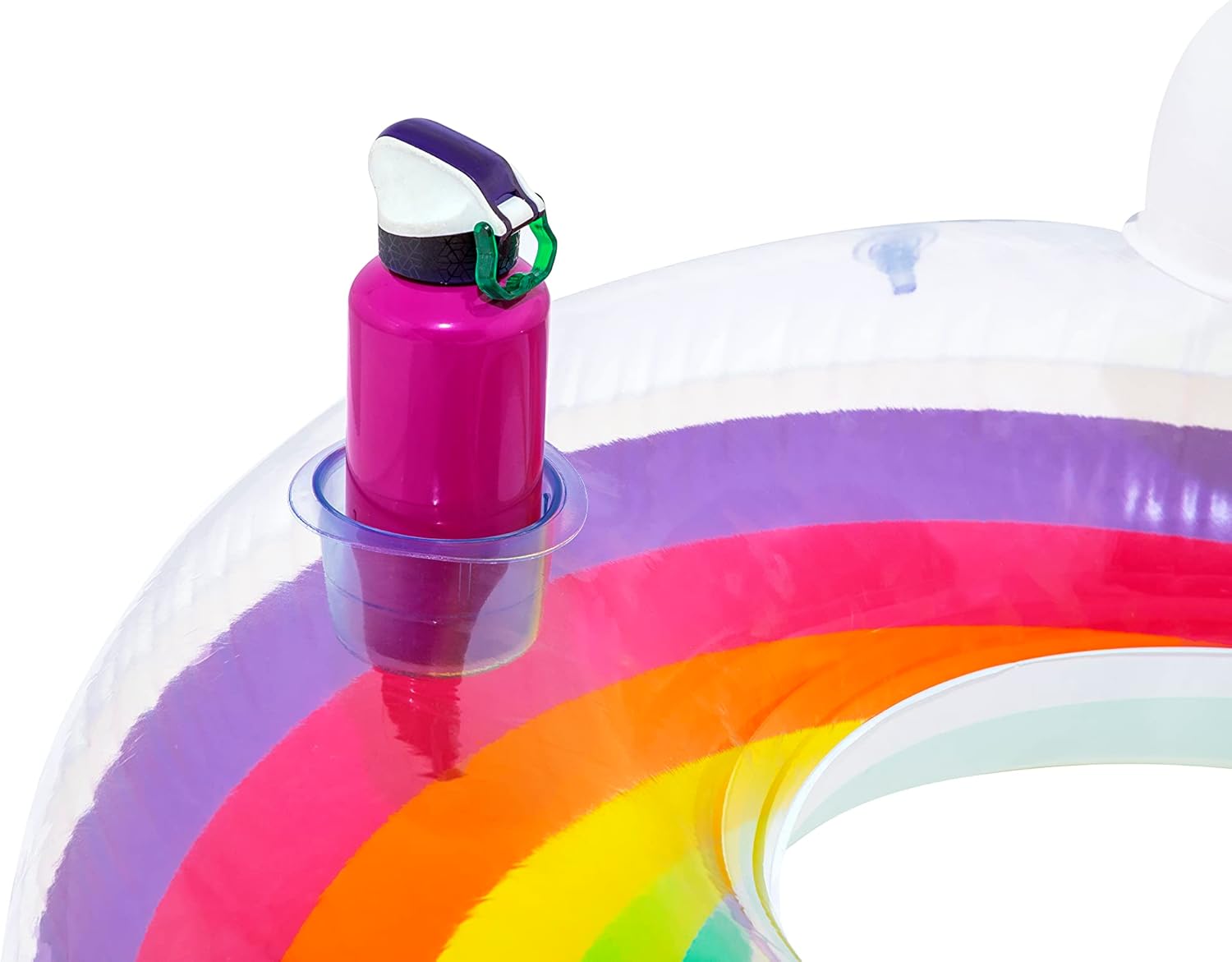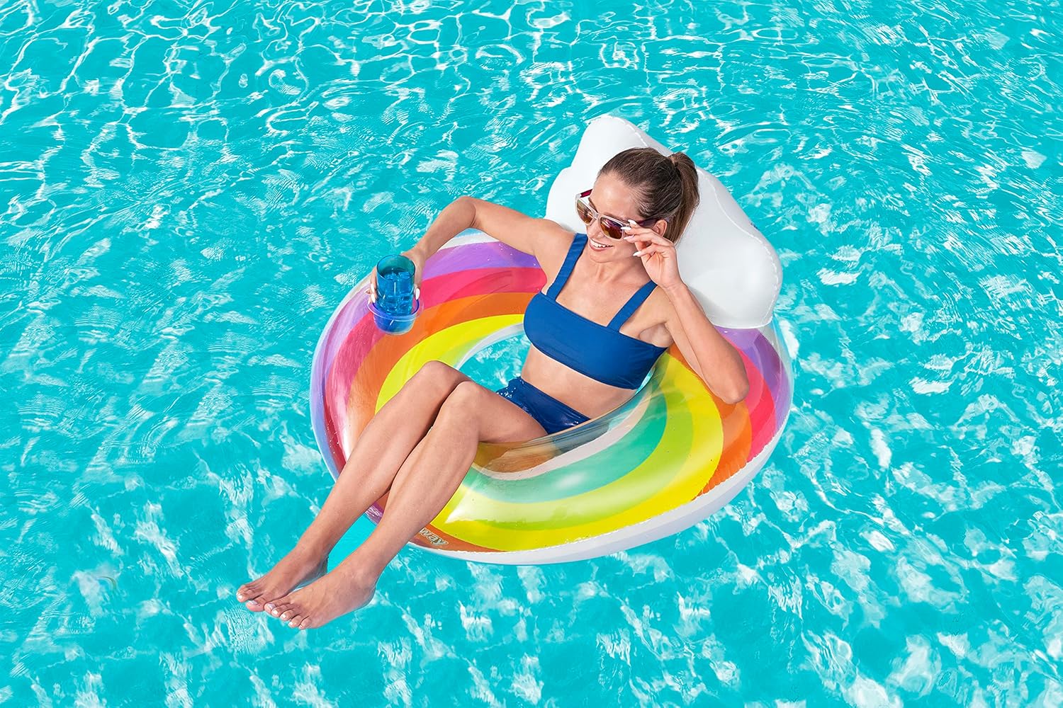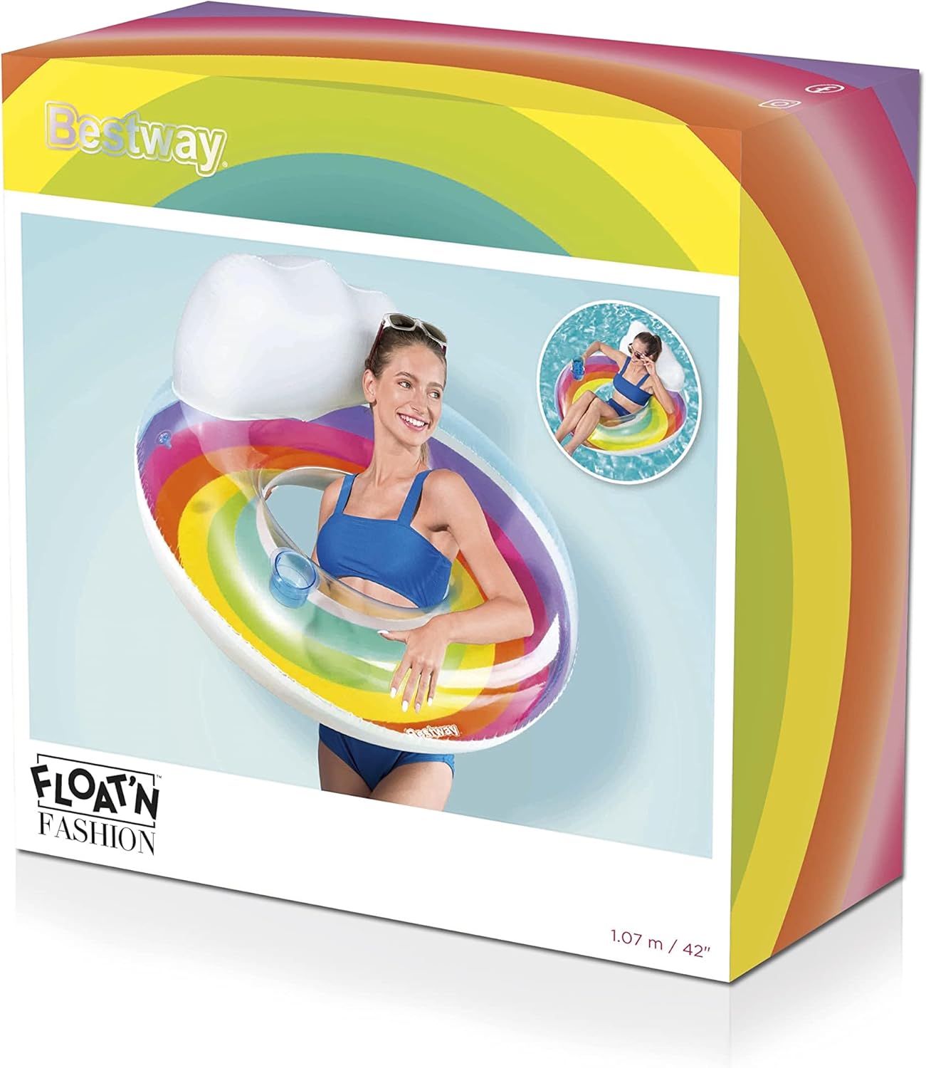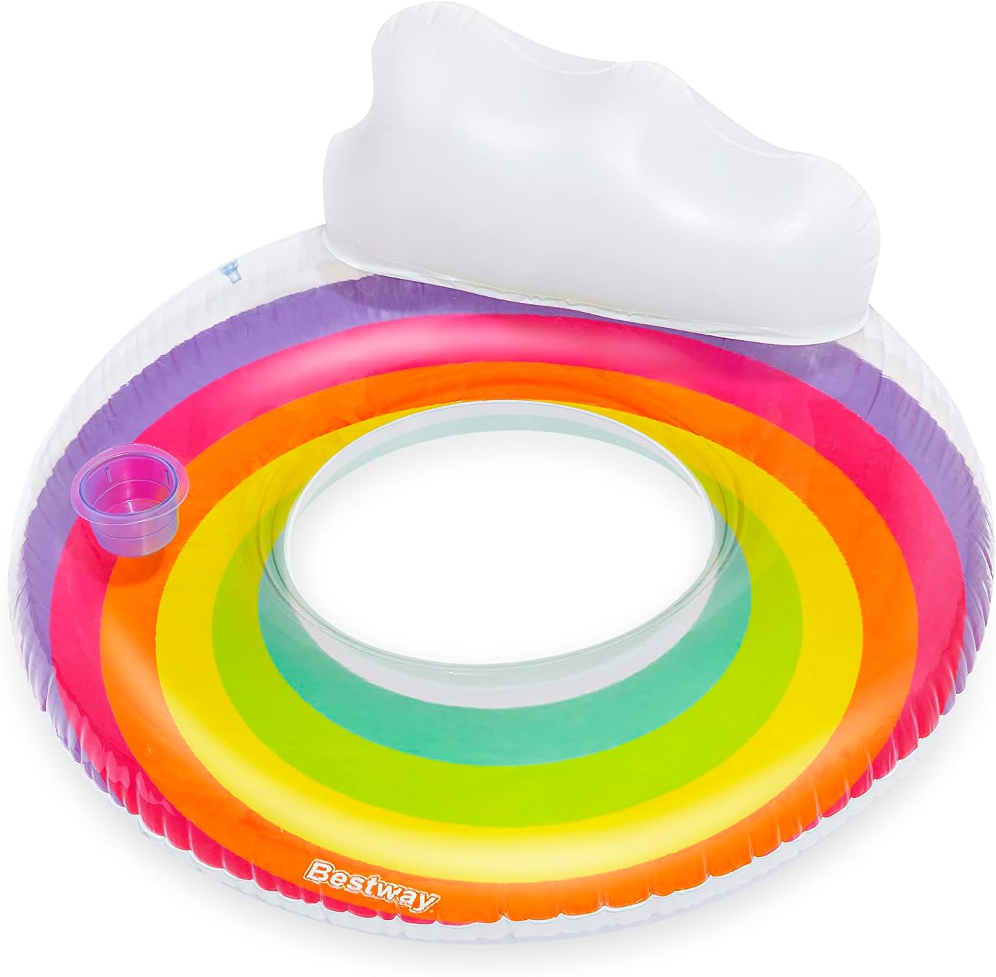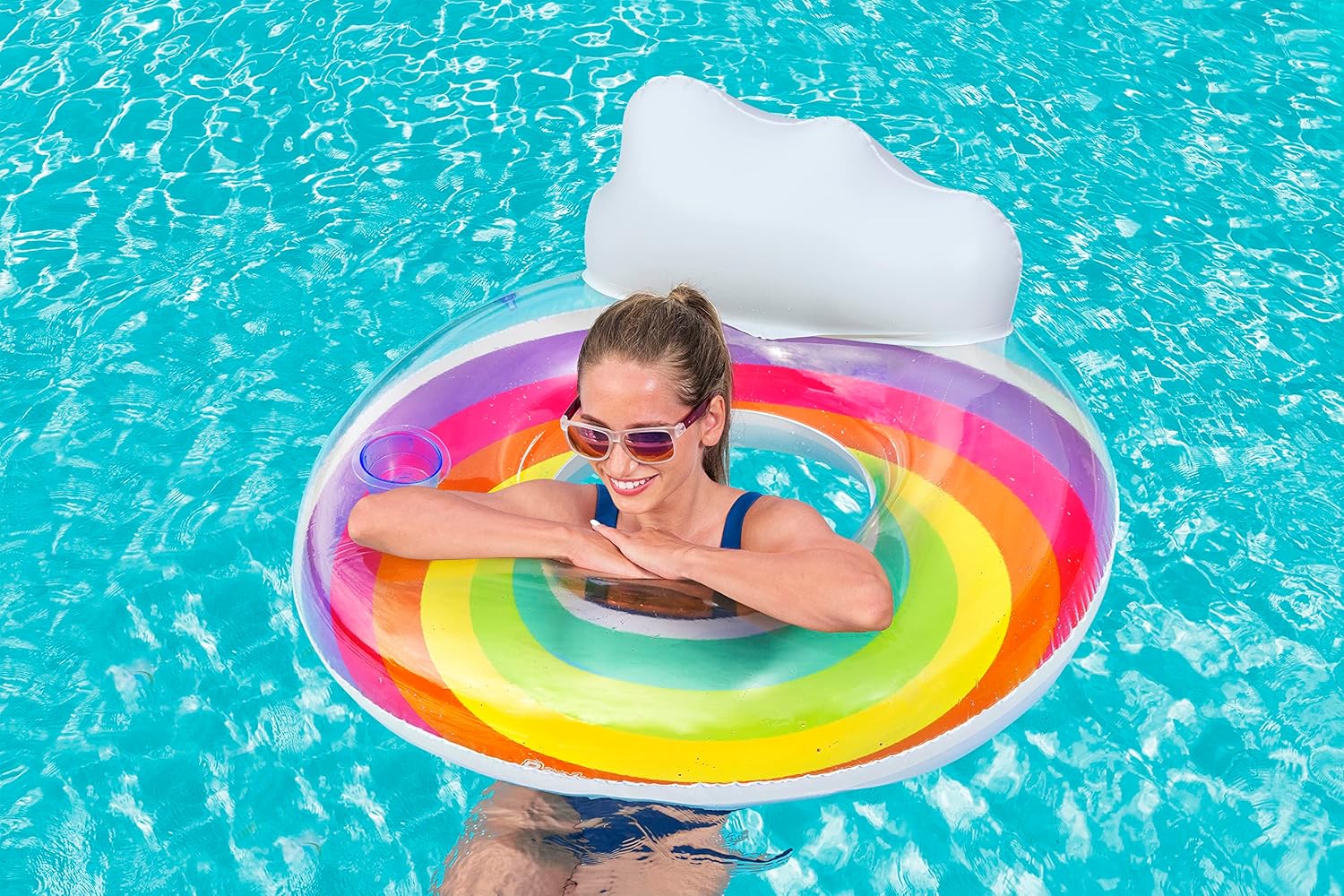 Dimensioni: 107 cm Per 1 adulto Confortevole poggiatesta a forma di nuvola Facile da gonfiare, sgonfiare e riporre Contenuto: 1 ciambella gonfiabile, 1 toppa di riparazione