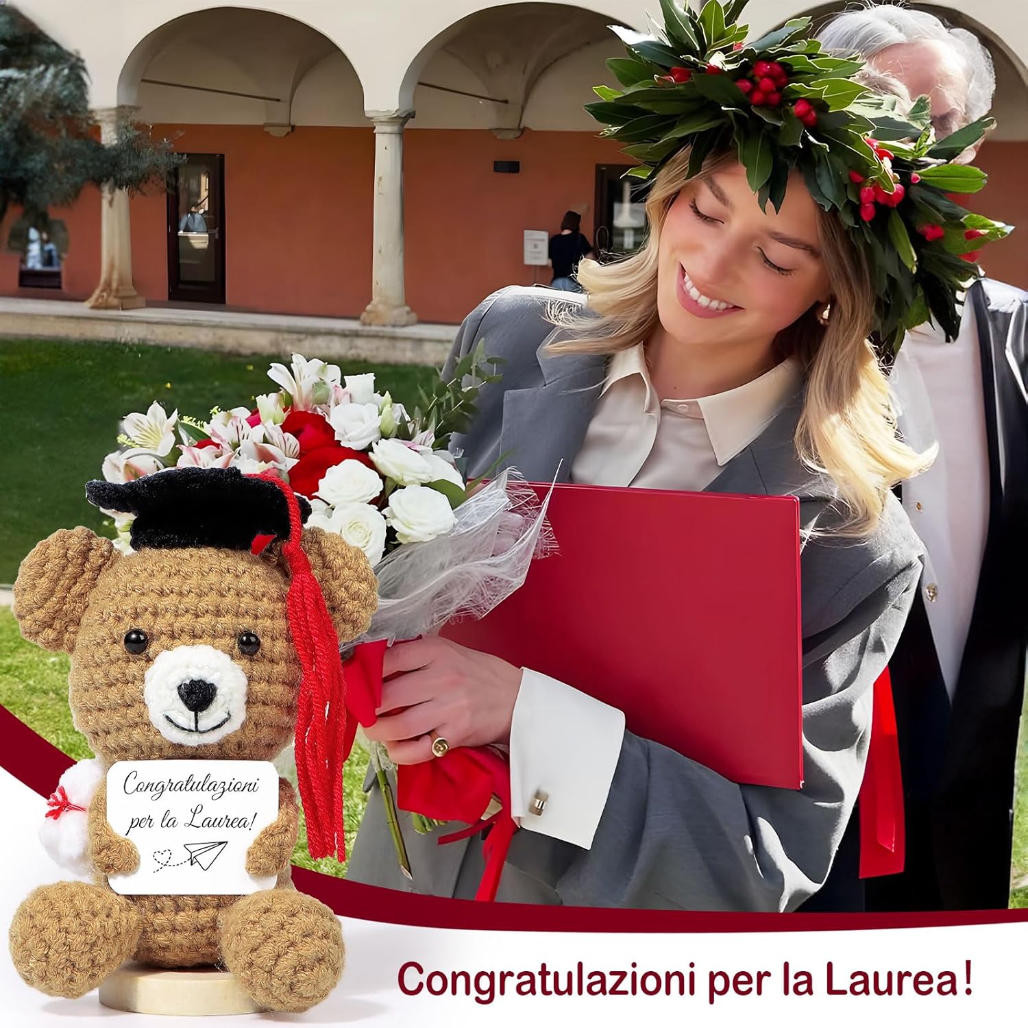 🎓Il pacchetto include: un orsetto peluche positivo con carta scritta italiano motivazionale 🎓Materiale: questo positive orso è cucito a mano con tessuto di lana lavorato a maglia di alta qualità, morbido e delicato, non sbiadisce facilmente, durevole e affidabile 🎓Dimensione: è circa 5 x 8 x 12cm, in modo da poterlo portare comodamente in viaggio o in altre attività all'aperto. Questo è un pensiero che esprime incoraggiamento e sostegno 🎓Design unico: questo orsetto indossa un cappello laurea e portando una carta con scritta Congratulazione per la Laurea, è diseganto solo per gli italiani 🎓Ottimo regalo: il mini doll positive a forma orsetto è un regalo ideale per i studenti, i amici durante la festa di laurea, compleanno, Natale per esprimere la congratulazione di laurea