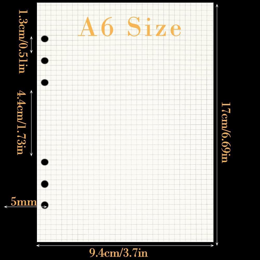 Carta di ricarica A6: 4 confezioni di carta di ricarica a righe A5, 45 fogli/confezione, totale 180 fogli. Dimensioni standard: 9,5 x 17,2 cm Protezione degli occhi: Il colore cremoso non viene aggiunto al materiale fluorescente per prendersi cura meglio dei tuoi occhi. Non renderà i tuoi occhi scomodi da usare per lungo tempo o all'aperto. Qualità Premium: la carta di ricarica A6 è realizzata in carta bianca liscia da 100 g/m², liscia e priva di impurità, facile da scrivere, spessa ma morbida, senza timore di penetrazione. Design a 6 fori: i perforatori a 6 fori secondo lo standard internazionale facilitano l'inserimento o la rimozione della carta. Si prega di controllare la distanza tra i fori prima dell'acquisto, evitare problemi di raccolta. Ampia applicazione: la carta di ricarica funziona perfettamente con quaderni o agende sfusi, i fogli di carta sfusi sono adatti per riviste, appunti di riunioni, appunti di studio, documenti di lavoro, bullet journaling, riviste di viaggio, scrittura di poesie, scarabocchi, contabilità e altro ancora.