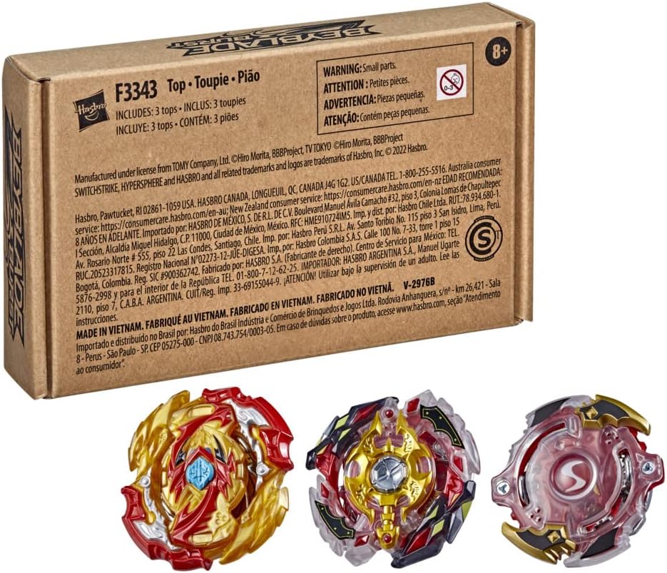 3 testine di controllo Beyblade Burst Legend Spryzen S3 D02 TB03 a rotazione dritta, Lord Spryzen S5 D30 TB06 a rotazione dritta, Lord Spryzen S5 D30 TB06 a rotazione dritta e Spryzen S2 D69 TH 21 rotazione drittoauca SEGUIRE L'ɉVOLUTION: Si può vivere l'evoluzione di Spryzen con la trottola Spryzen S2 Beyblade Burst originale, la trottola Legend Spryzen S3 Switchstrike e la trottola Lord Spryzen S5 Hypersphere incluse in questo pacchetto COMBAT BEYBLADE BURST: Le trottole da competizione Beyblade Burst scoppiano in pezzi durante i combattimenti (i tassi di scoppio variano). Beystadium Arena e lanciatori richiesti (venduti separatamente, entro il limite delle scorte) COMBATTI DIGITTI: scansioniamo il codice su ogni trottola Spryzen per portare la lotta a un altro livello Combattiamo nell'app Beyblade Burst per sbloccare la trottola in una lotta virtuale contro Blader di tutto il mondo IPERVITÀ: Si può intraprendere combattimenti in duello con le arene Beyblade Burst Beystadium, lanciatori e trottola (venduti separatamente, entro il limite delle scorte) mentre si cammina come Blader