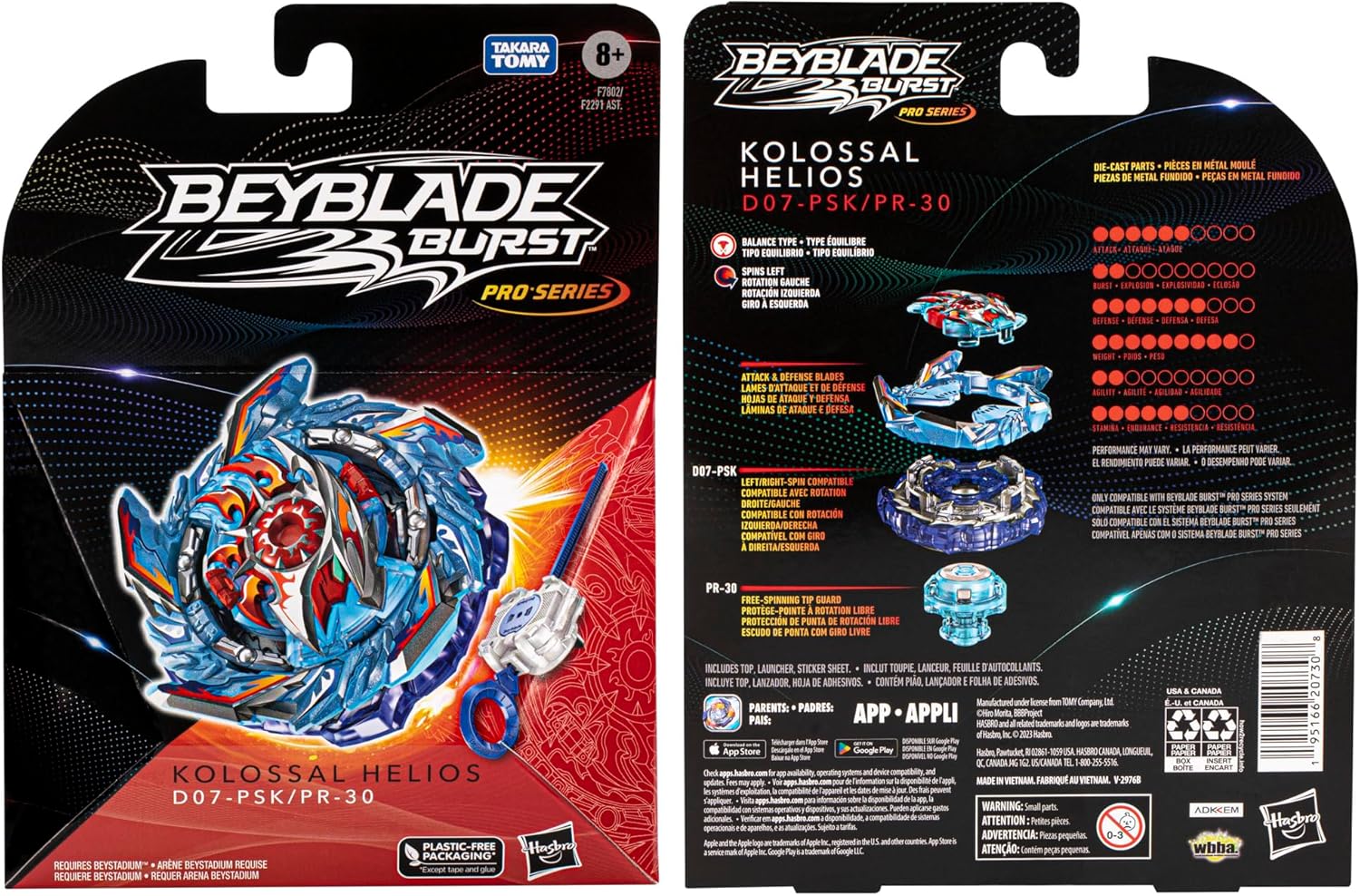 Autentico design giapponese: la Beyblade Burst Pro Series presenta trottole nel design originale Takara Tomy Superking. Include una trottola girevole a sinistra Kolossal Helios D07-PSK PR-30, un motorino di avviamento a sinistra e un foglio di adesivi Gioca come i professionisti: la trottola ha un chip Superking, parti metalliche per un peso maggiore, un doppio alloggiamento compatibile con rotazione a sinistra e destra e lame di attacco e difesa MISURA CON L'ELITE: la trottola è compatibile con Beyblade Burst Pro Series Beystadium Arena (disponibile separatamente come parte del Pro Series Battle Set, soggetto a disponibilità) Competi in battaglie digitali: scansionando il codice sulle istruzioni della Beyblade Burst Pro Series, puoi combattere come i professionisti dell'app Beyblade Burst LASCIATELO RIP: Con le arene Beyblade Burst Beystadium, antipasti e trottole, emozionanti battaglie testa a testa si svolgono quando si tratta di spianarsi la strada per diventare il "Beyblade Master". (Ciascuno venduto separatamente, soggetto a disponibilità)