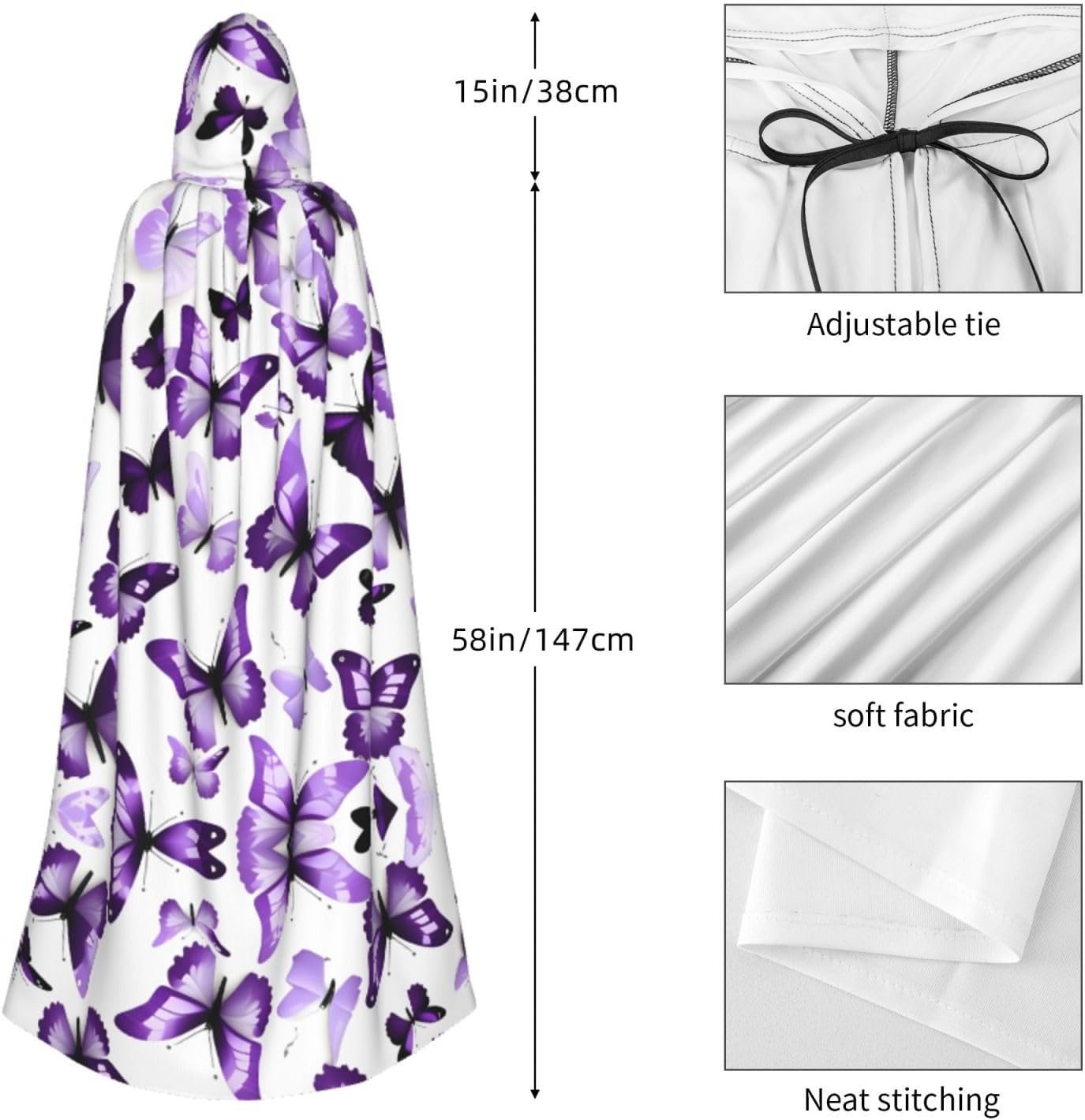 Bianco Viola Farfalle Veste Mantello Con Cappuccio Halloween Mantello Medievale Mantello Mago Mantello Nero Mantello Adulto Strega Costume