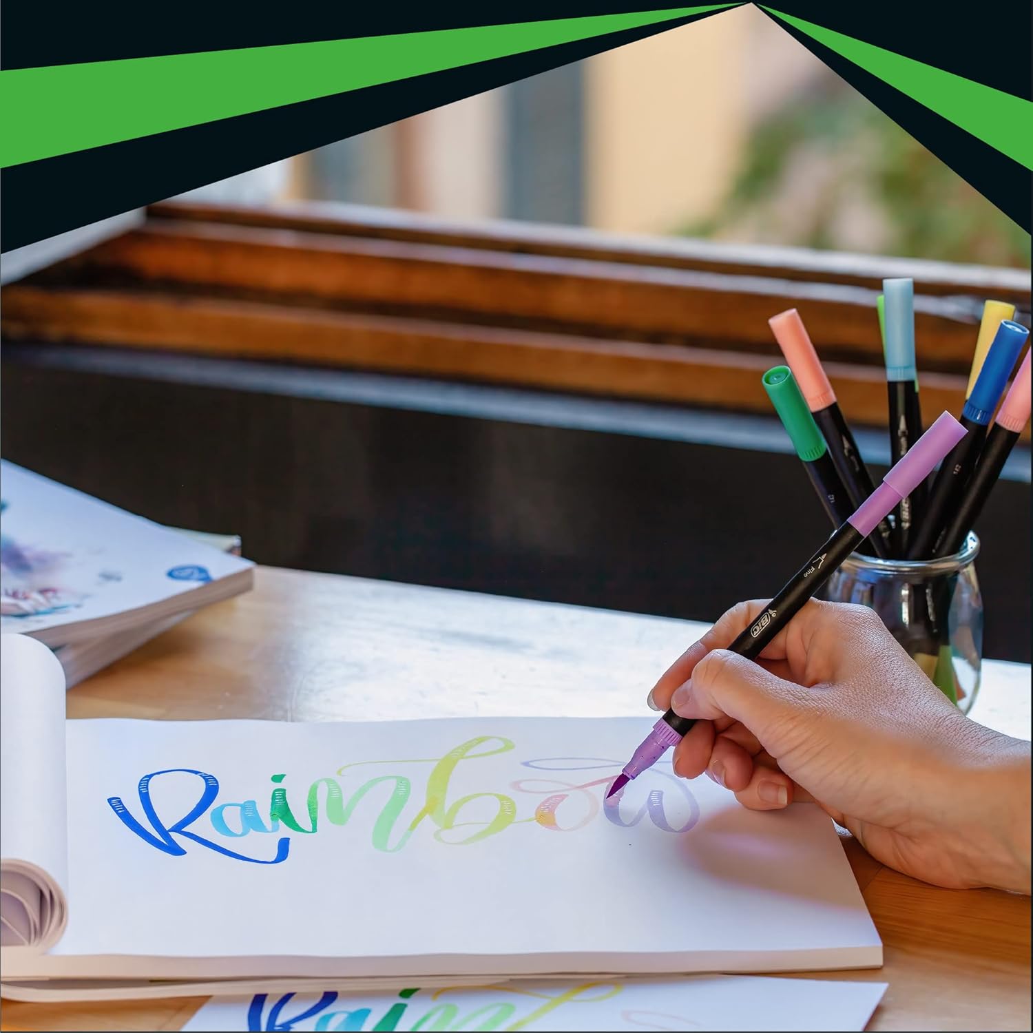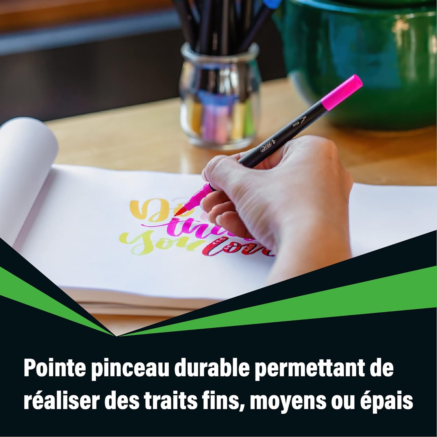 Una scatola di 12 pennarelli BIC Intensity Dual Tip: uno strumento 2 in 1 con un pennarello su un'estremità e un pennarello pennello sull'altra Lo spessore della punta del pennello è regolato per disegnare, colorare grandi aree e scrivere La punta sottile da 0,7 mm è perfetta per scrivere, disegnare con precisione e colorare aree grandi e piccole Questo set di pennarelli BIC Intensity Dual Tip è disponibile in 12 colori vivaci con inchiostro a base d'acqua Gli appassionati di calligrafia o di decorare i tuoi diari personali adoreranno questo pennarello per rendere prezioso tutto ciò che incarna sulla carta
