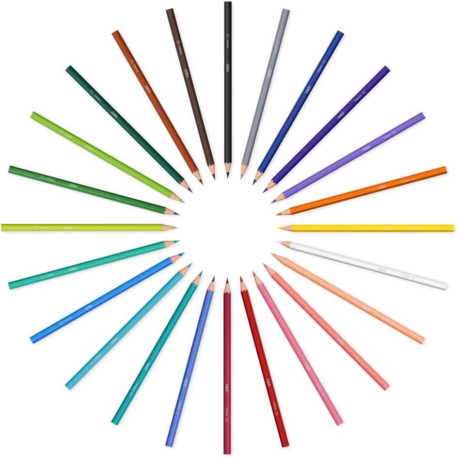 Accendi la creatività del tuo bambino con questo astuccio da 24 matite dai colori vivaci Ottime per imparare a colorare aree medio-grandi Matite sicure: essendo realizzate senza legno, se si rompono non rilasciano schegge Forma esagonale per una migliore impugnatura, con una mina da 2,9mm realizzata con pigmenti di prima qualità Prodotte in Europa; qualità garantita BIC
