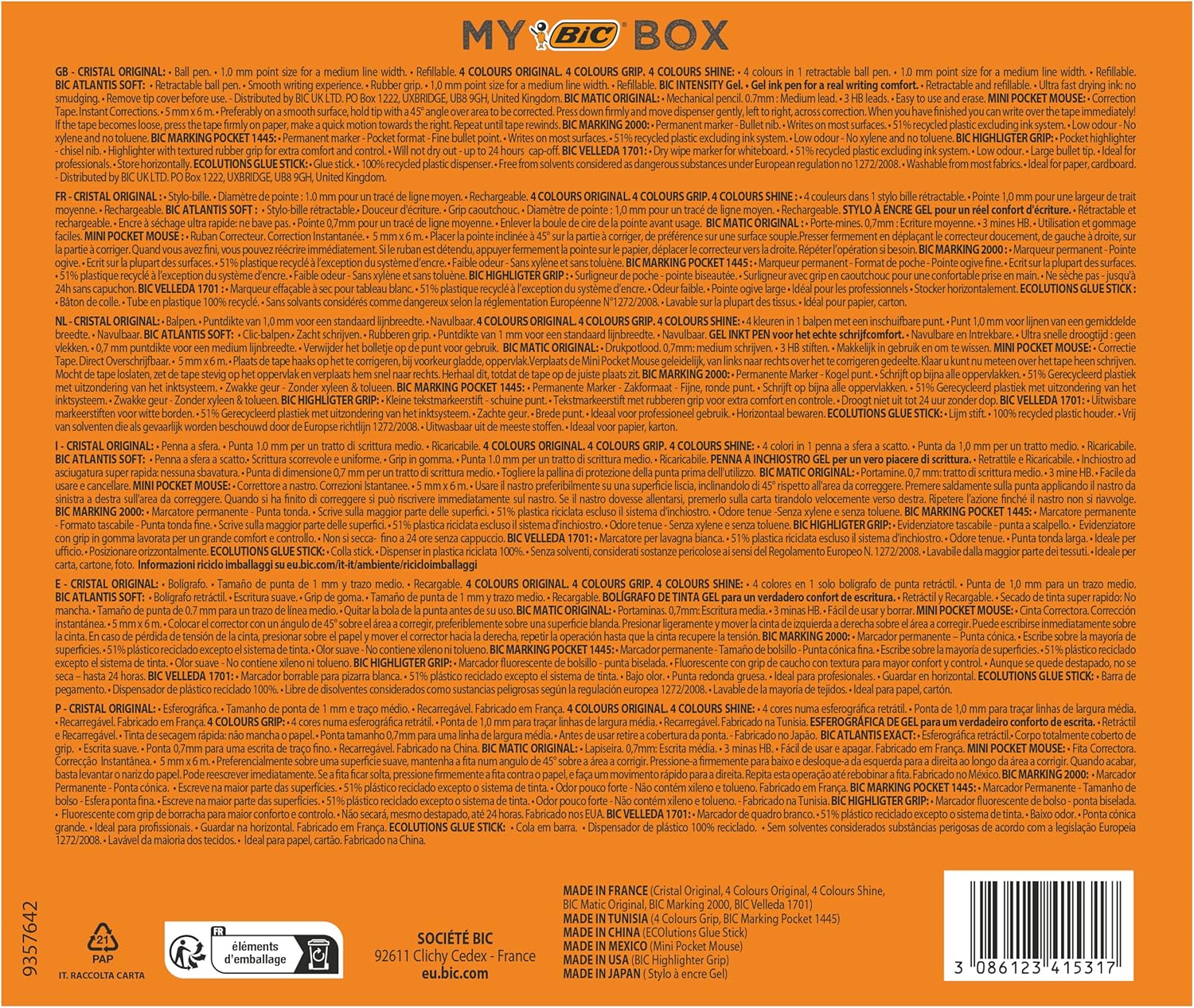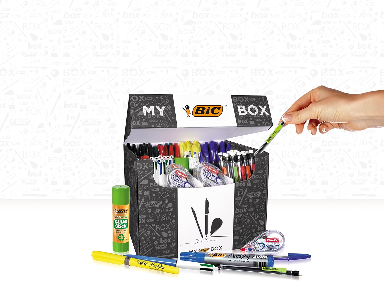 BIC, My BIC Box, Set Completo Cancelleria Casa E Ufficio, Penne A Sfera, Portamine, Pennarelli Indelebili, Evidenziatori, Bianchetti A Nastro, Colla, Multicolore, ‎Set da 124 pezzi
