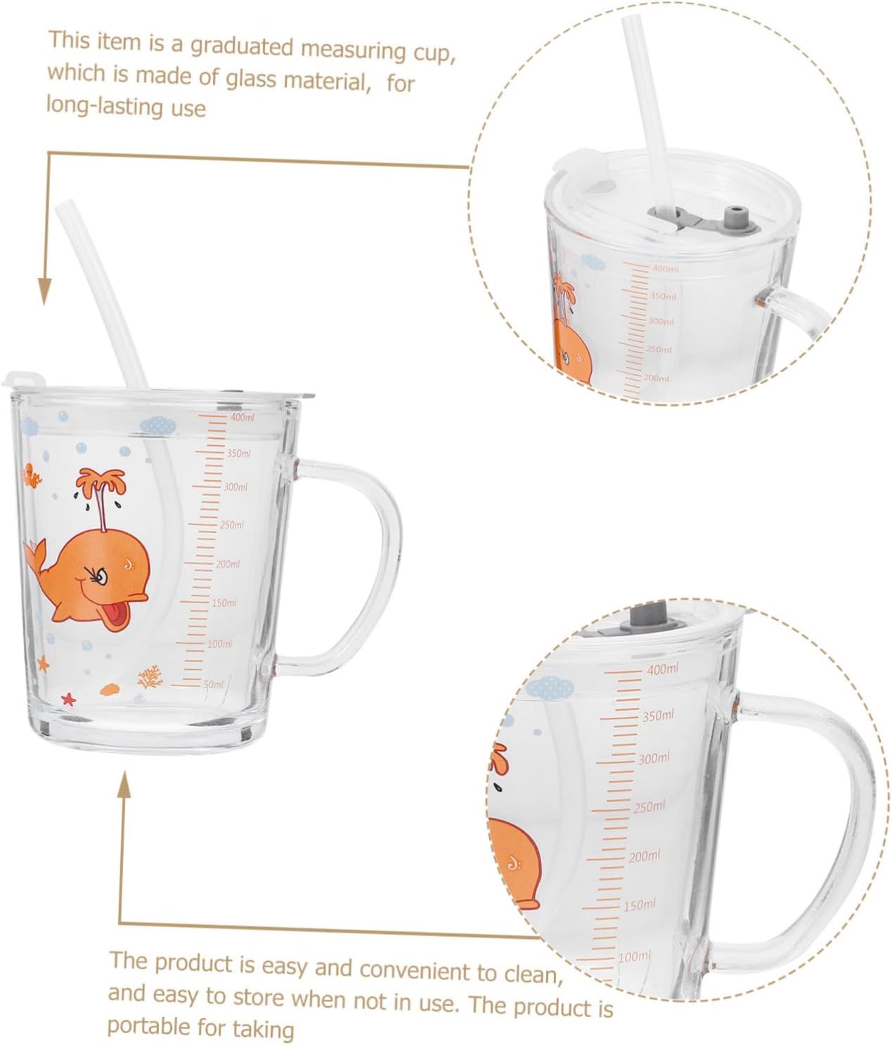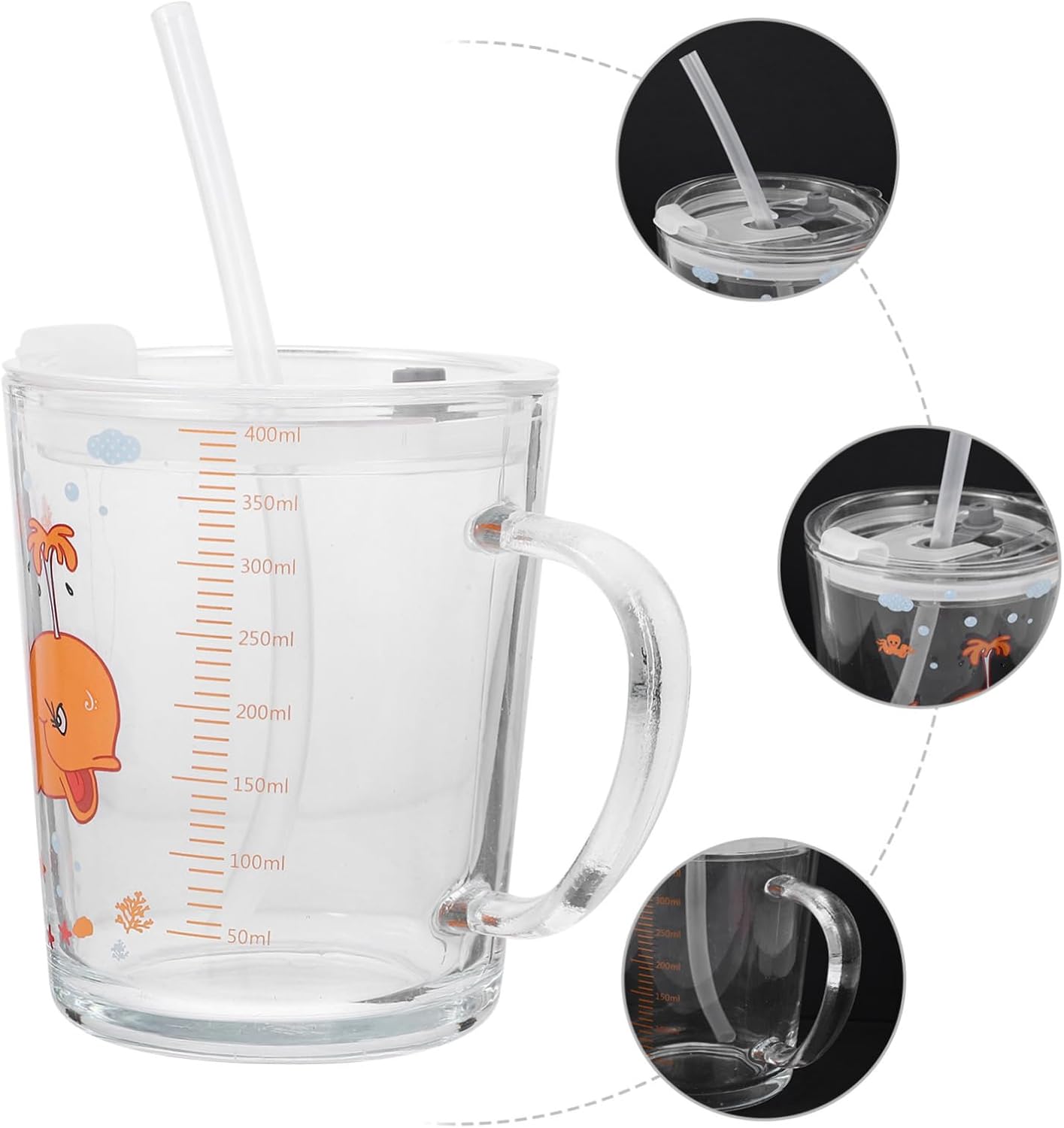 Tazze adorabili: realizzate e sicure per un uso a lungo termine. Il design con cannuccia rende bere più comodo, Bicchieri trasparenti per bambini Bicchieri a forma di cartone animato - realizzati in materiale di vetro di alta qualità, inodore, sicuri e, per l'uso, bicchieri per acqua con motivo a cartoni animati Bicchieri per bere - la tazza per l'acqua con cannuccia e coperchio è facile da pulire, basta sciacquare con acqua, molto pratica, tazze con - il design trasparente consente di vedere chiaramente l'interno con il design in scala, l'assorbimento scientifico quotidiano dei nutrienti, uno strumento da cucina, una tazza per l'acqua a forma di cartone animato - metti il prodotto nel microonde perché è fatto di alta qualità e sicuro. Il prodotto ha funzioni pratiche, tazza da cartone animato