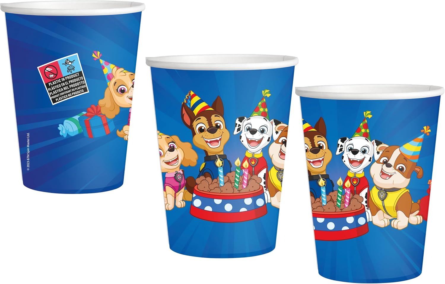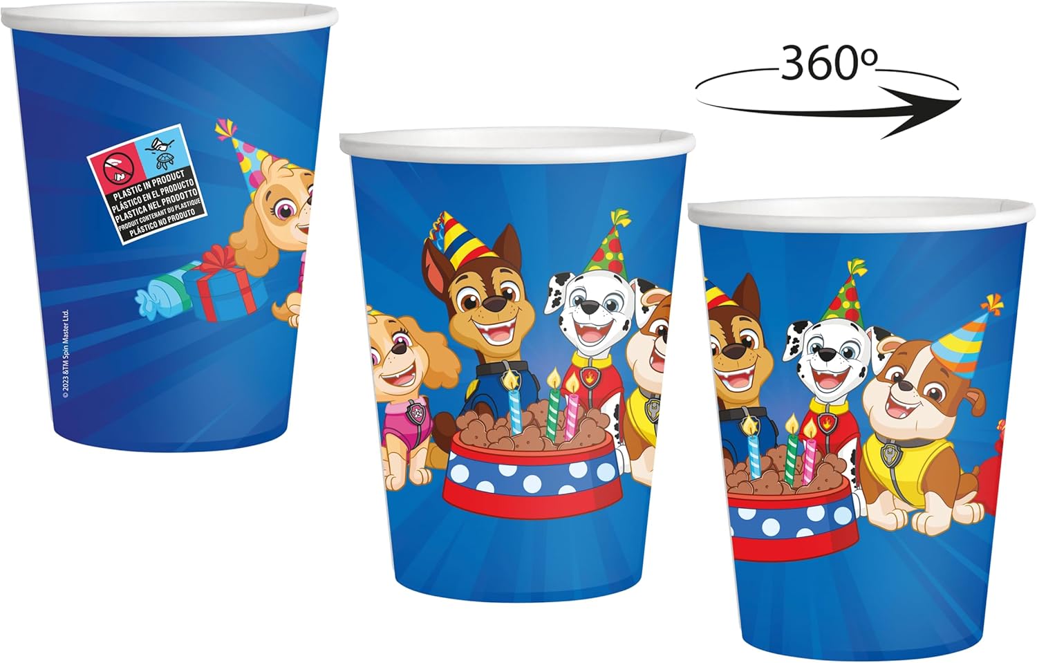 8 TAZZE DA 250 ML. Le tazze sono in cartone, resistenti, colorate ed ecologiche. Ogni confezione contiene 8 bicchieri con una capacità di 250 ml. BICCHIERI A TEMA. Organizzate una festa a tema e d'atmosfera con questo speciale servizio da tavola. BICCHIERI PER FESTE. Utilizzabili con qualsiasi bevanda, bibite e acqua, sono perfetti per decorare in modo originale la tavola di compleanni, feste o party a tema. RISPARMIO DI TEMPO. Con questi bicchieri vi dimenticherete della pulizia e del disordine dopo la festa. Sono facili da smaltire