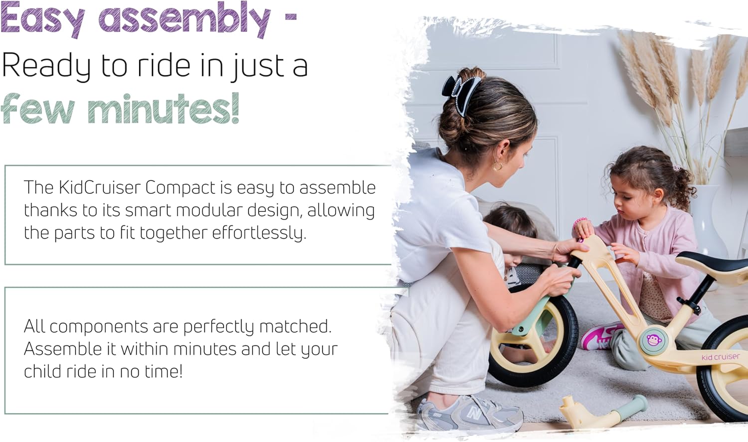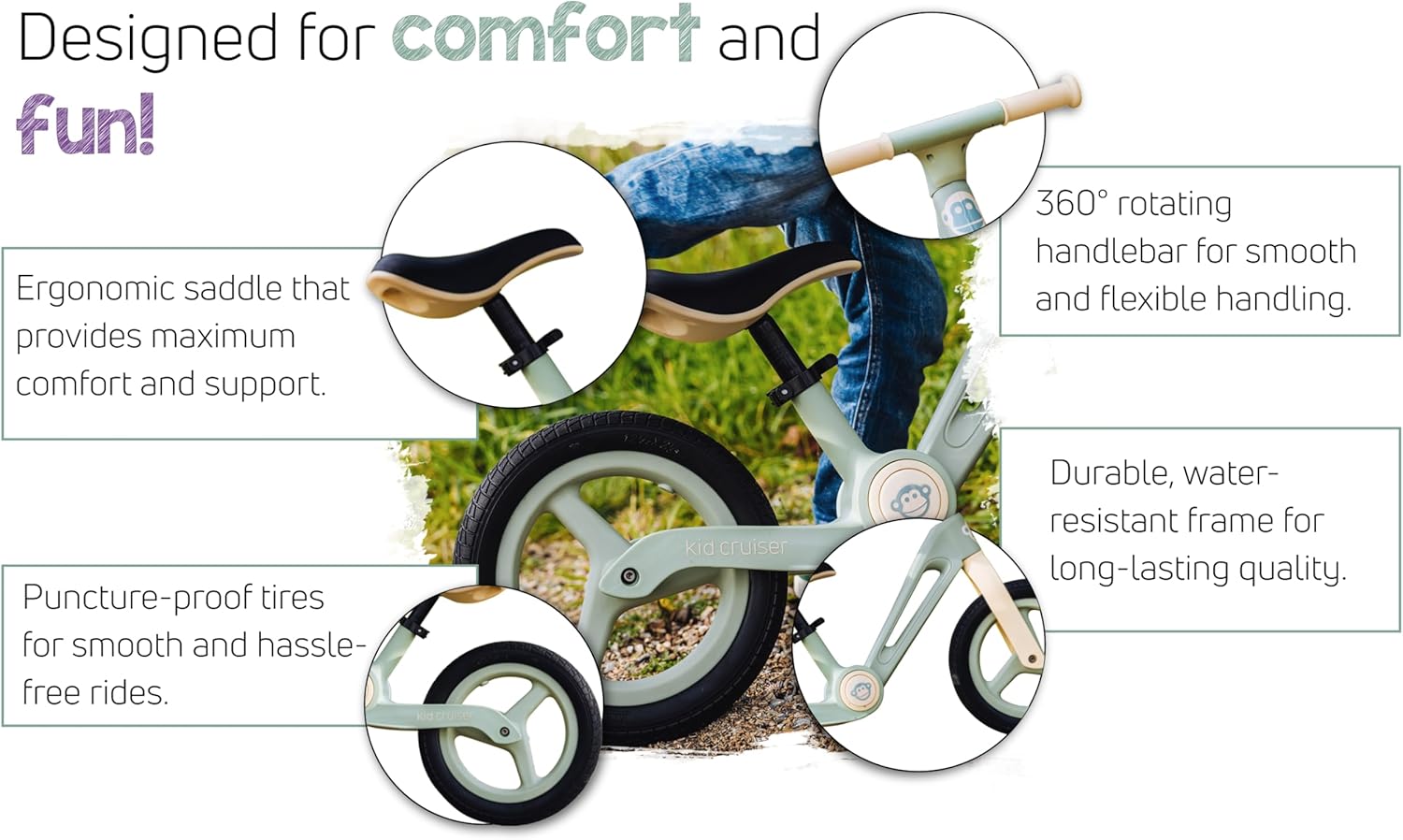 Compatta e pieghevole: questa bici leggera (3,7 kg) è pieghevole e ideale per viaggiare. Facile da trasportare e riporre in auto, passeggino o bici da carico. Perfetto per i piccoli avventurieri dai 2 anni in su. Comfort e regolazione: una sella morbida e regolabile (34-40 cm) e maniglie antiscivolo offrono il massimo comfort. Il manubrio girevole a 360° garantisce una guida piacevole. Pneumatici in PU antiforatura: pneumatici esenti da manutenzione con imbottitura in schiuma. Nessun rischio di foratura, nessuna pompa d'aria necessaria: per una guida senza preoccupazioni su tutte le superfici. Montaggio semplice e veloce: sono necessarie solo 4 parti e 1 vite. Strumenti inclusi in modo che i bambini possano iniziare subito a utilizzare la loro nuova bicicletta senza pedali. Durevole e affidabile: un telaio robusto e resistente all'acqua, una garanzia di 2 anni e parti di ricambio rendono questa bici senza pedali una scelta duratura per gli anni a venire.
