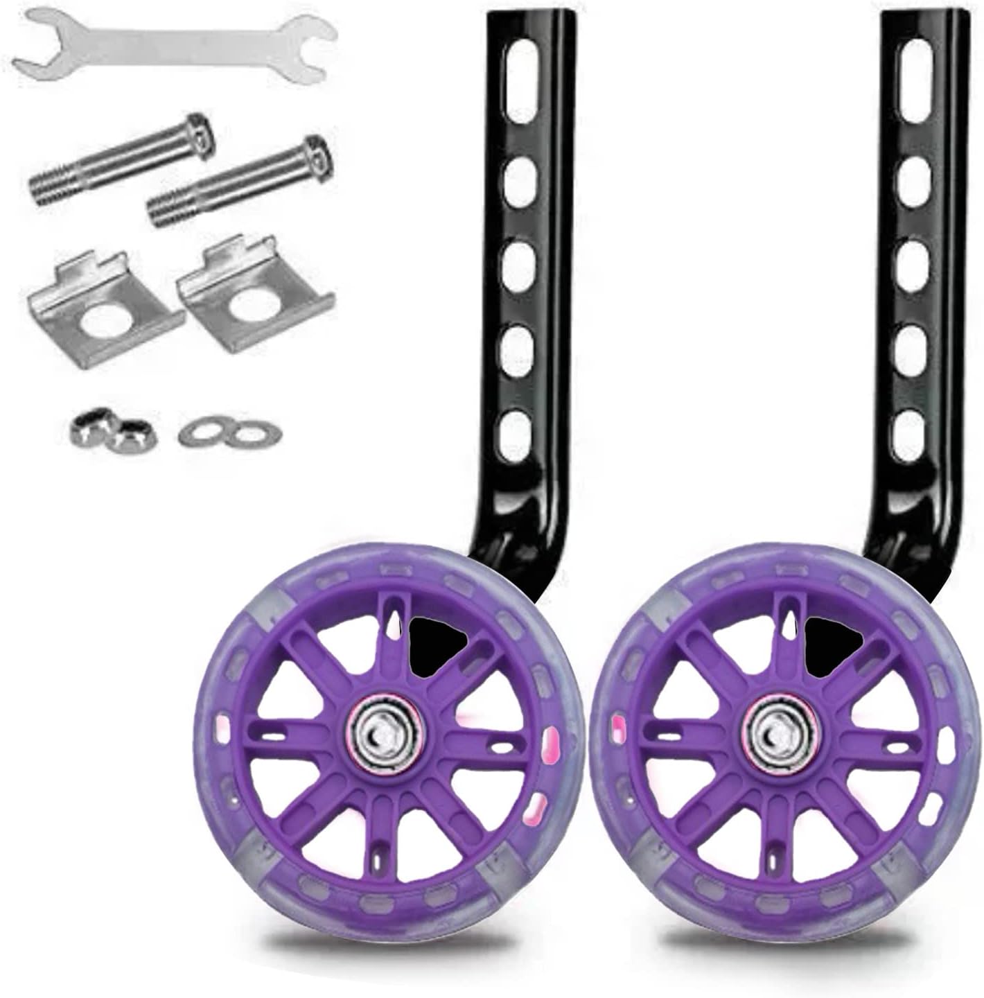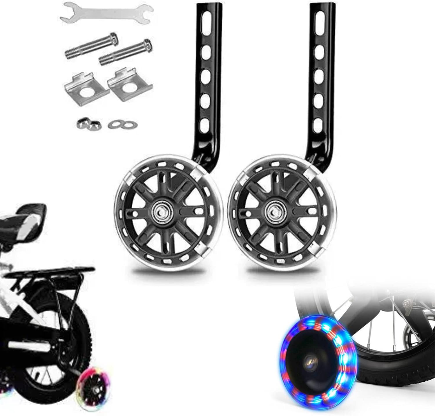 Metallo, per principianti, sicuro, più stabile, leggero e silenzioso Include tutto il necessario per l'installazione Assicurati che tuo figlio sia sicuro mentre impara a guidare e lascia che abbia il miglior inizio in equilibrio e sicurezza Due funzioni: resistente all'usura, fornisce stabilità, aiuta i bambini ad andare in bicicletta e lascia che i bambini si divertano ad andare in bicicletta Generale: la dimensione del dispositivo di assistenza è regolabile, adatta per biciclette a velocità singola per bambini da 12-20 pollici