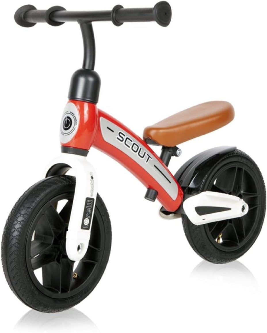 Bicicletta senza pedali con ruote pneumatiche da 10 pollici, in rosso per bambini da 2 a 4 anni e un peso massimo di 25 kg, sedile regolabile e confortevole con similpelle, maniglie in morbida gomma allena il senso dell'equilibrio, limitatore di sterzo per maggiore sicurezza, manubrio regolabile in altezza, marcia indipendente avanti, indietro, sinistra e destra
