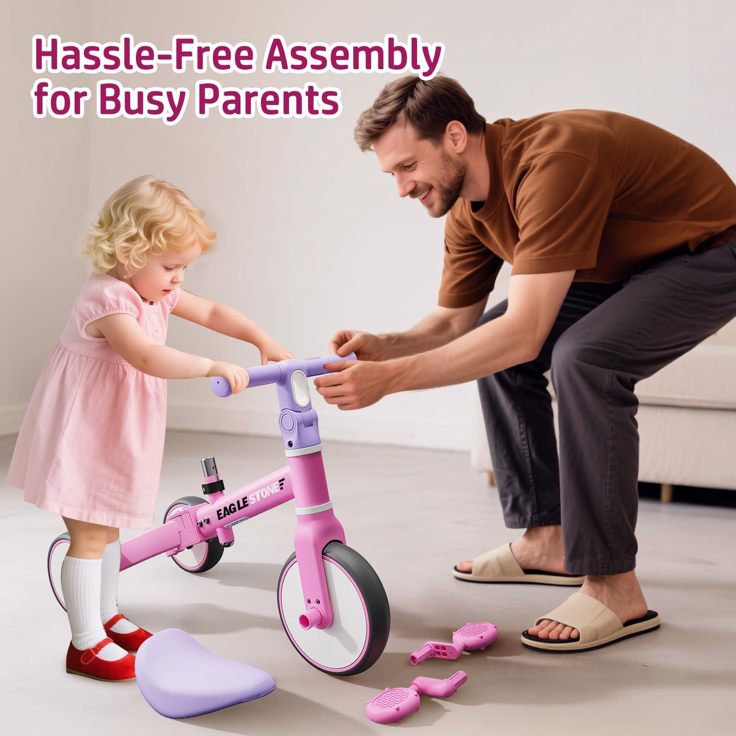 【Adorabile design rosa che i bambini adorano】 In rosa brillante con delicati accenti viola, questo triciclo è un sogno per le bambine che amano i colori giocosi. Non è solo carino: crea fiducia e incoraggia i bambini a pedalare in modo indipendente con gioia e stile. 【Modalità di guida 3 in 1 per bambini in crescita】 Questa versatile bici da equilibrio si trasforma in 3 diverse modalità di guida: bici da equilibrio, triciclo con pedali, triciclo da allenamento. Cresce con i bambini dai 18 mesi ai 4 anni e li aiuta a sviluppare passo dopo passo l'equilibrio, la coordinazione e le capacità motorie. 【Conservazione dei pedali senza attrezzi - Nessuna parte persa】 Non dovrai più preoccuparti di perdere nulla! I pedali possono essere facilmente riposti sul telaio della bicicletta quando non vengono utilizzati. Ciò mantiene tutto ordinatamente insieme, per conversioni rapide e organizzazione ordinata a casa o in viaggio. 【Struttura di guida stabile e sicura】 L'ampio design triangolare e le ruote antiscivolo garantiscono un'elevata resistenza al ribaltamento, mentre i pedali arrotondati e un robusto telaio in acciaio garantiscono una guida fluida e sicura sia all'interno che all'esterno. 【Montaggio rapido: divertimento di guida in pochi minuti】 Non sono necessari strumenti complicati o assemblaggio laborioso: questo triciclo viene fornito parzialmente preassemblato con istruzioni chiare. Così tuo figlio potrà essere operativo in pochi minuti, grazie a una semplice configurazione apprezzata dai genitori. 【Promuove l'equilibrio, la coordinazione e la fiducia】 Guidare questo triciclo 3 in 1 aiuta i bambini a sviluppare importanti capacità motorie attraverso il gioco attivo. Imparando a bilanciarsi, sterzare e pedalare, i bambini rafforzano la coordinazione corporea, i muscoli e la fiducia in se stessi: la base ideale per il futuro successo ciclistico.