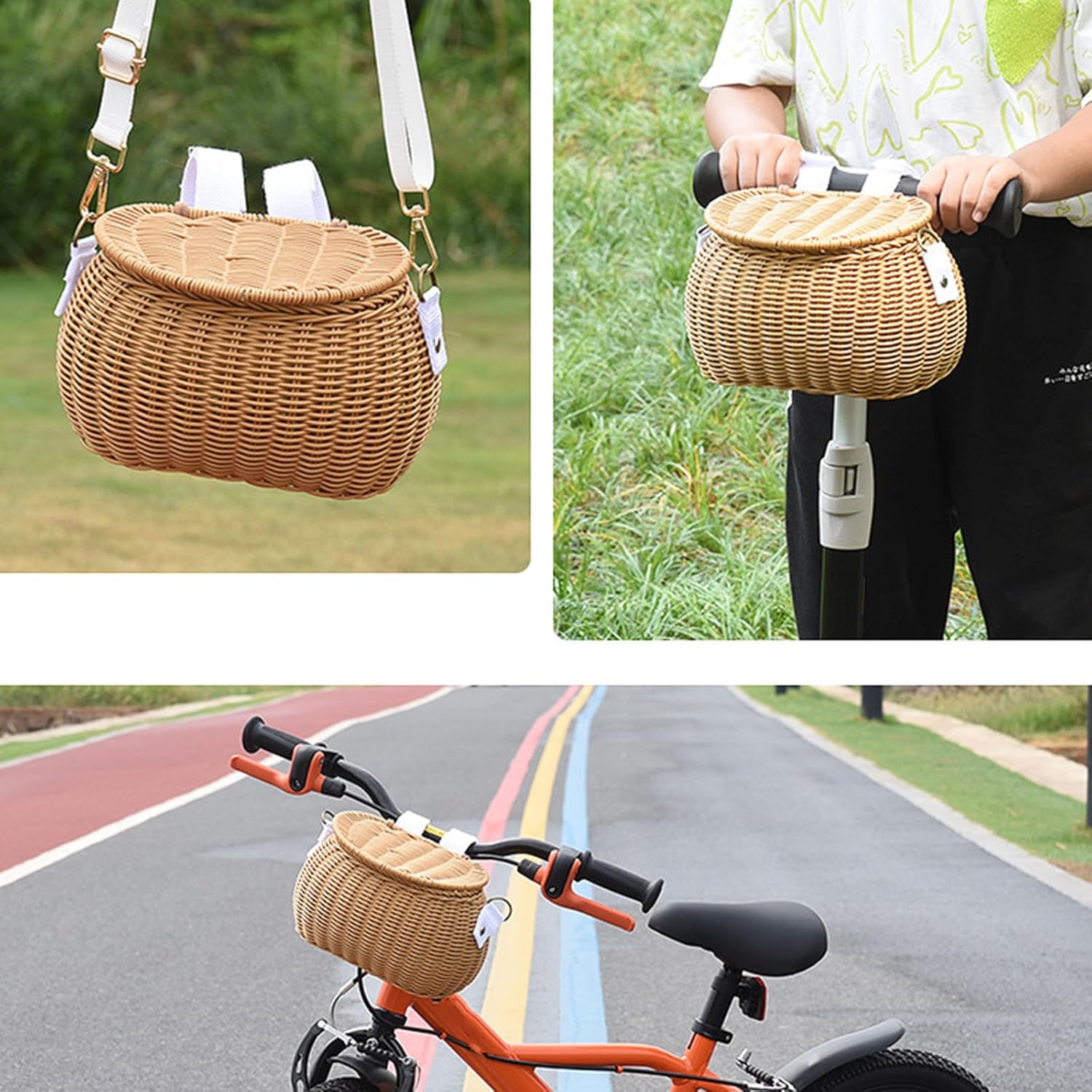 Il cestino può essere collegato saldamente alla ruota per bambini e adulti. Puoi mettere libri, borse per la scuola e cibo nel cestino Adatto per la maggior parte delle biciclette per adulti e bambini. Può essere utilizzato anche per ornamenti, trasportare animali domestici Realizzato in vimini imitazione con buona impermeabilizzazione, può sopportare qualsiasi condizione atmosferica, non si scheggia, morbido e durevole Dotato di cintura impermeabile e regolabile, per garantire che il cestino sia saldamente fissato al manubrio La parte superiore e piccola parte inferiore è facile da mettere e prendere oggetti come libri, fiori, giocattoli, cibo