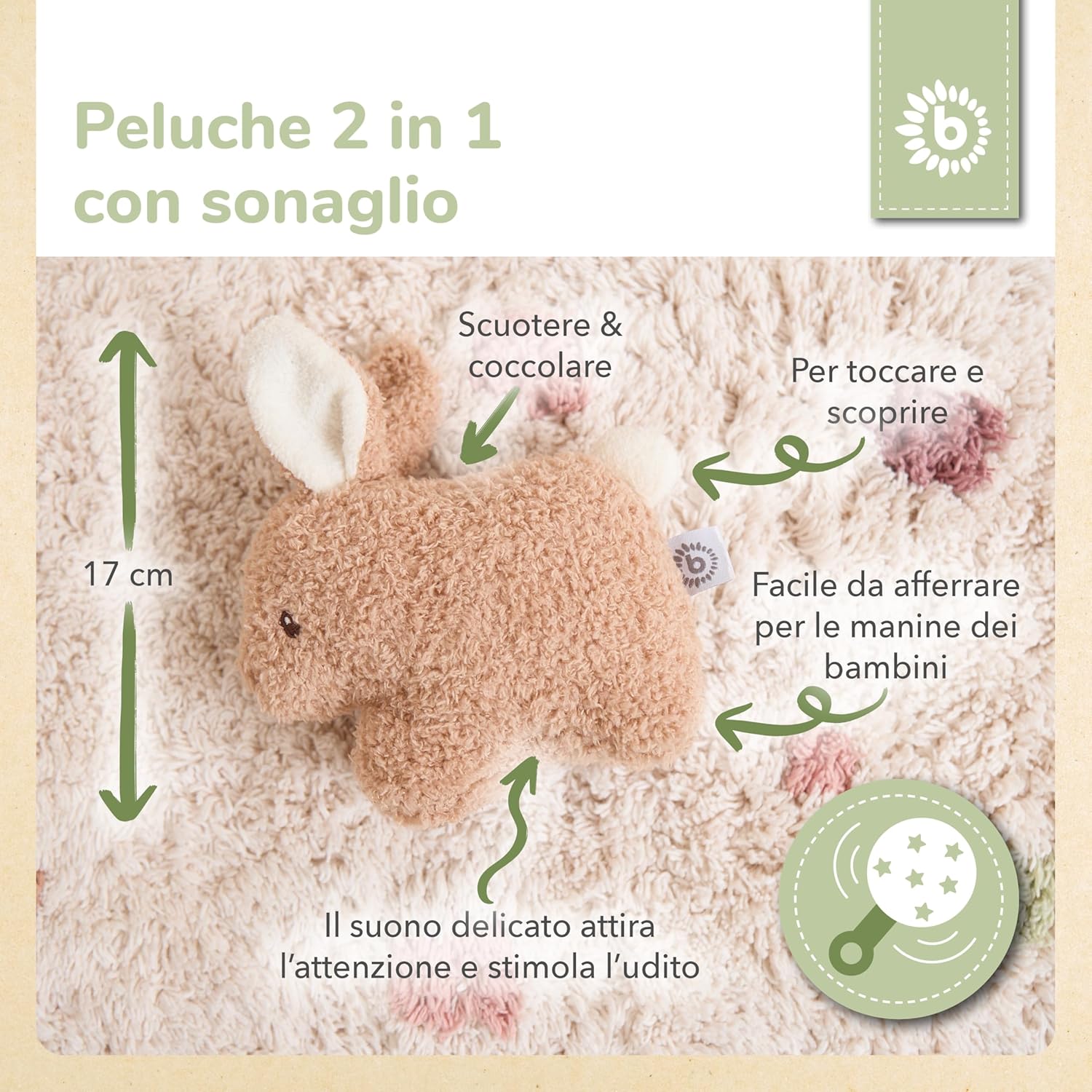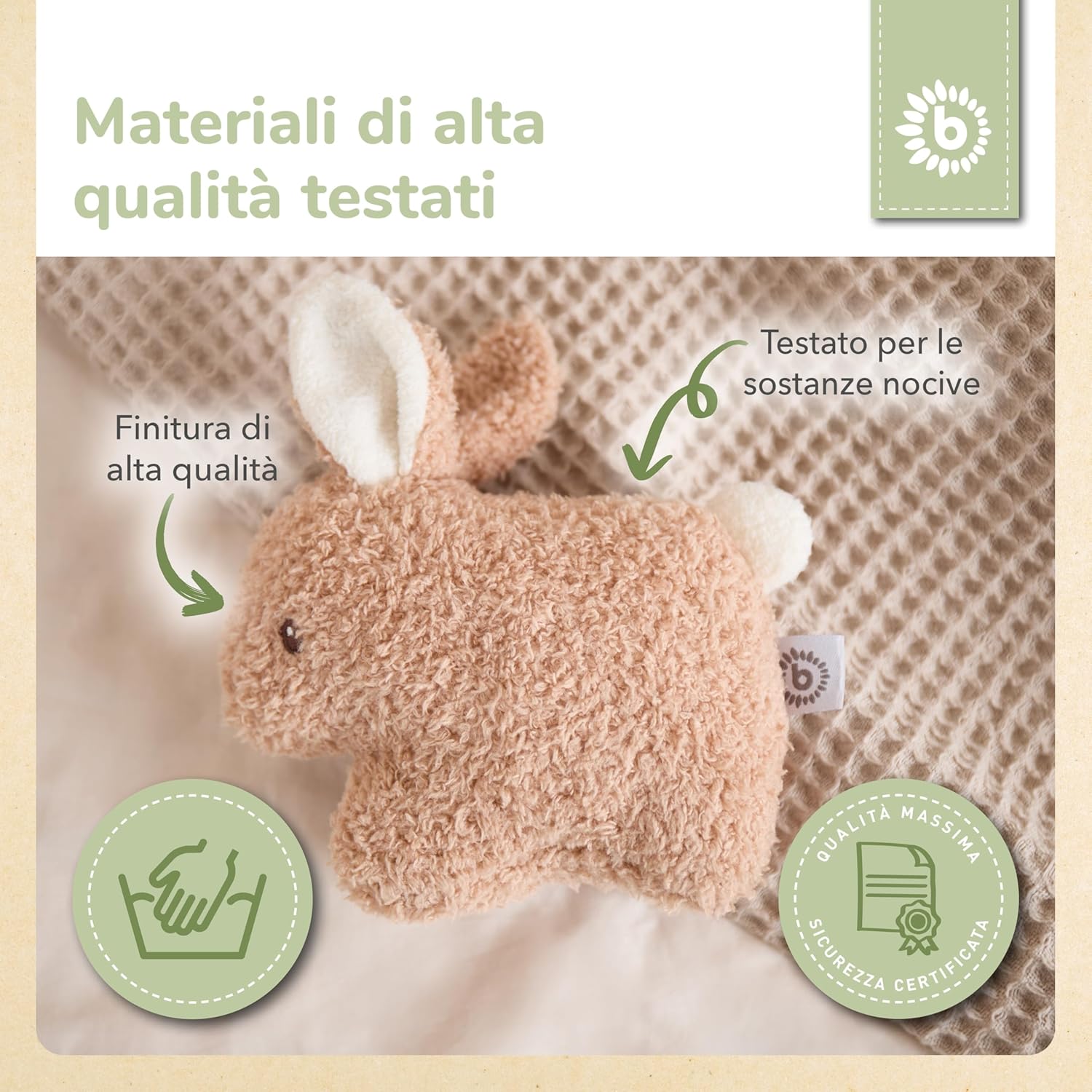 GIOCO E DIVERTIMENTO: il simpatico coniglietto è vellutato e morbido e regalerà a ogni bambino un sacco di gioco, divertimento e gioia grazie al sonaglio integrato. Un piccolo amico da scoprire e amare Qualità: il peluche è realizzato in bouclé di alta qualità e morbido. Realizzato secondo i più alti standard di qualità, il cervo sarà un compagno fedele per il tuo bambino Scoprire: grazie alle diverse forme e alle diverse strutture in tessuto, il tuo bambino viene stimolato ad afferrare e sentire. In questo modo promuovete le capacità motorie del vostro piccolo REGALI PER BAMBINO: il coniglietto è un'ottima idea regalo per bambini e neonati. Il simpatico peluche regala a tutti un sorriso Contenuto della confezione: 1 coniglietto di peluche con sonaglio. Dimensioni: circa 17 x 13 x 7 cm. Peso: circa 41 grammi. Materiale: poliestere, lavaggio a mano. Ideale per bambini a partire dal 0° mese di vita