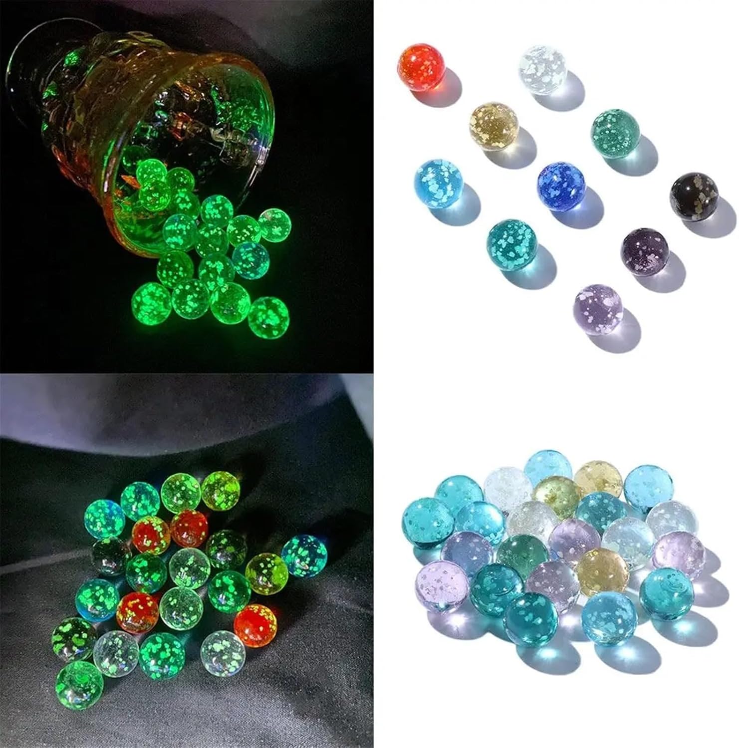 ASPETTO: Le biglie luminose hanno una superficie liscia e delicata, colore puro e pieno e riflettono un bagliore incantevole sotto luce diversa ROBUSTE: Le nostre biglie luminose sono lisce e arrotondate, con una consistenza colorata priva di crepe e vengono lucidate con molta attenzione durante il processo di produzione APPLICAZIONI: Queste biglie luminose uniche e lucenti sono ideali per i giochi di flipper e possono brillare in luoghi bui con una luce forte per rendere il gioco più interessante APPLICAZIONI: Che tu sia un bambino, un adolescente o un adulto, puoi divertirti con queste biglie che si illuminano al buio, che possono essere utilizzate come giocattolo per il tempo libero DECORAZIONE: Glow in the dark rende queste biglie una decorazione unica che può essere posizionata in camere da letto, soggiorni o luoghi di feste per creare un'atmosfera da sogno in un ambiente scarsamente illuminato