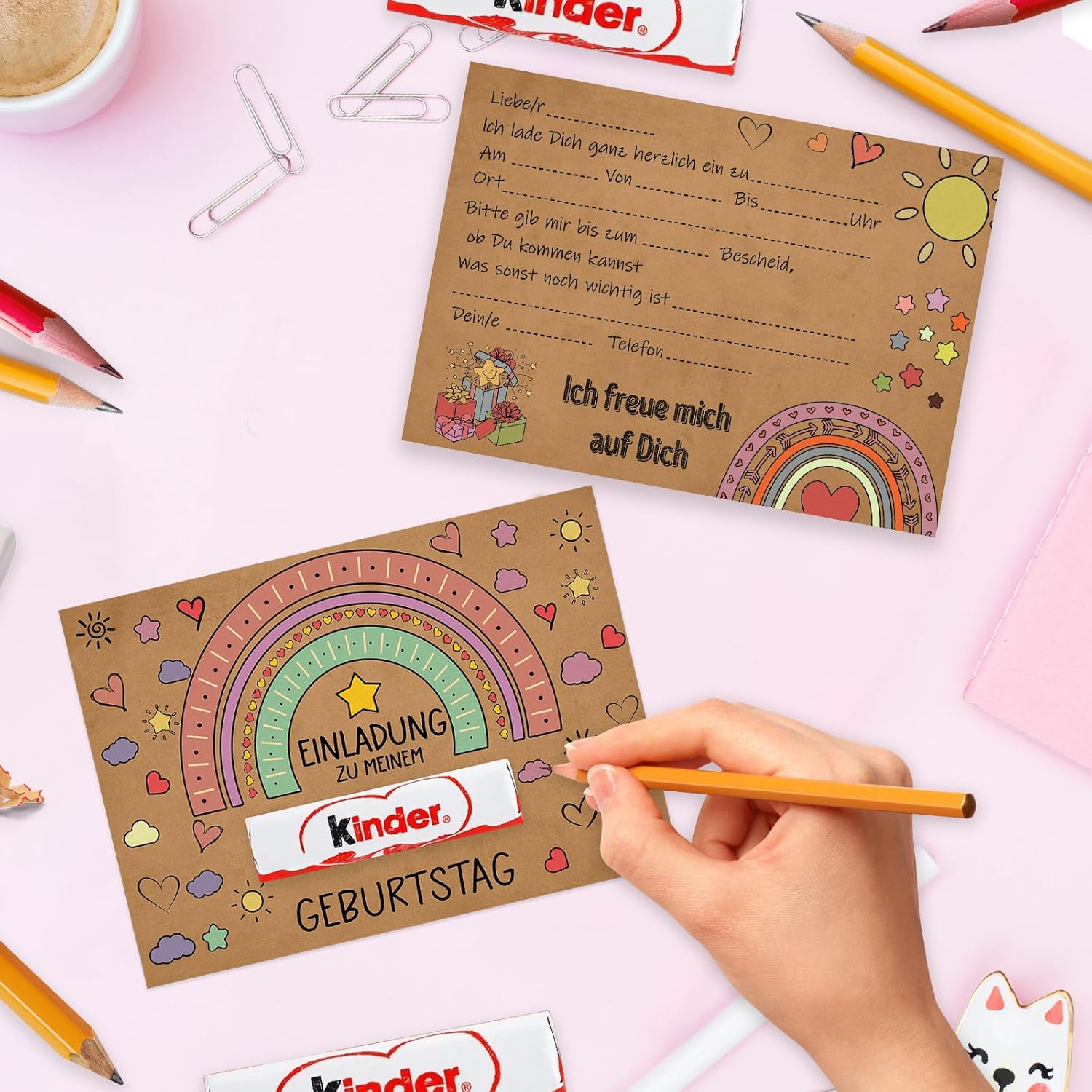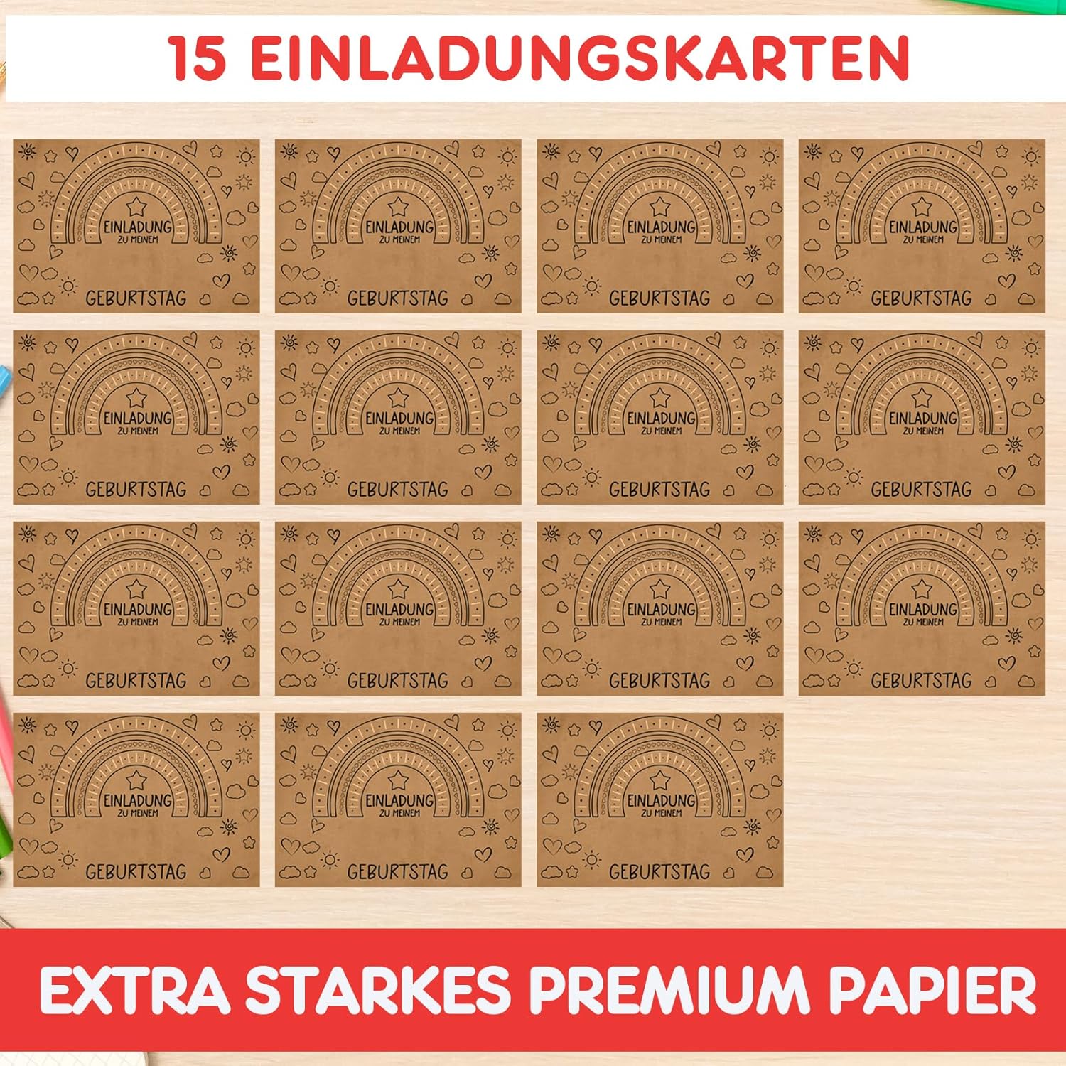 Creativi da colorare: i nostri biglietti di invito arcobaleno per compleanno bambini sono realizzati con un design curato e possono essere dipinti individualmente. Così si crea un invito personale e creativo per il compleanno di ragazze e ragazzi. Design unico arcobaleno: i motivi colorati e il grazioso arcobaleno rendono ogni invito una vera attrazione. Ideale per feste di compleanno arcobaleno e altre feste per bambini con un tema allegro. Dimensioni perfette: i biglietti d'invito misurano 14,8 x 10,5 cm e offrono spazio sufficiente per tutte le informazioni importanti come data, ora e luogo. Pratico per inviti di compleanno per bambini e bambine. Set di 15 biglietti: il set include 15 biglietti d'invito di alta qualità per compleanno, ideali per feste più grandi o più ospiti. Perfetto per invitare tutti gli amici del vostro bambino. Materiale di alta qualità: realizzati in carta resistente ed ecologica, i biglietti sono comodi da scrivere e durevoli: un kit di inviti sostenibile per ogni festa. Versatile: perfetto per feste di compleanno per bambini, feste di compleanno, arcobaleno e progetti fai da te. Un ottimo modo per risvegliare l'anticipazione della festa e creare ricordi indimenticabili.