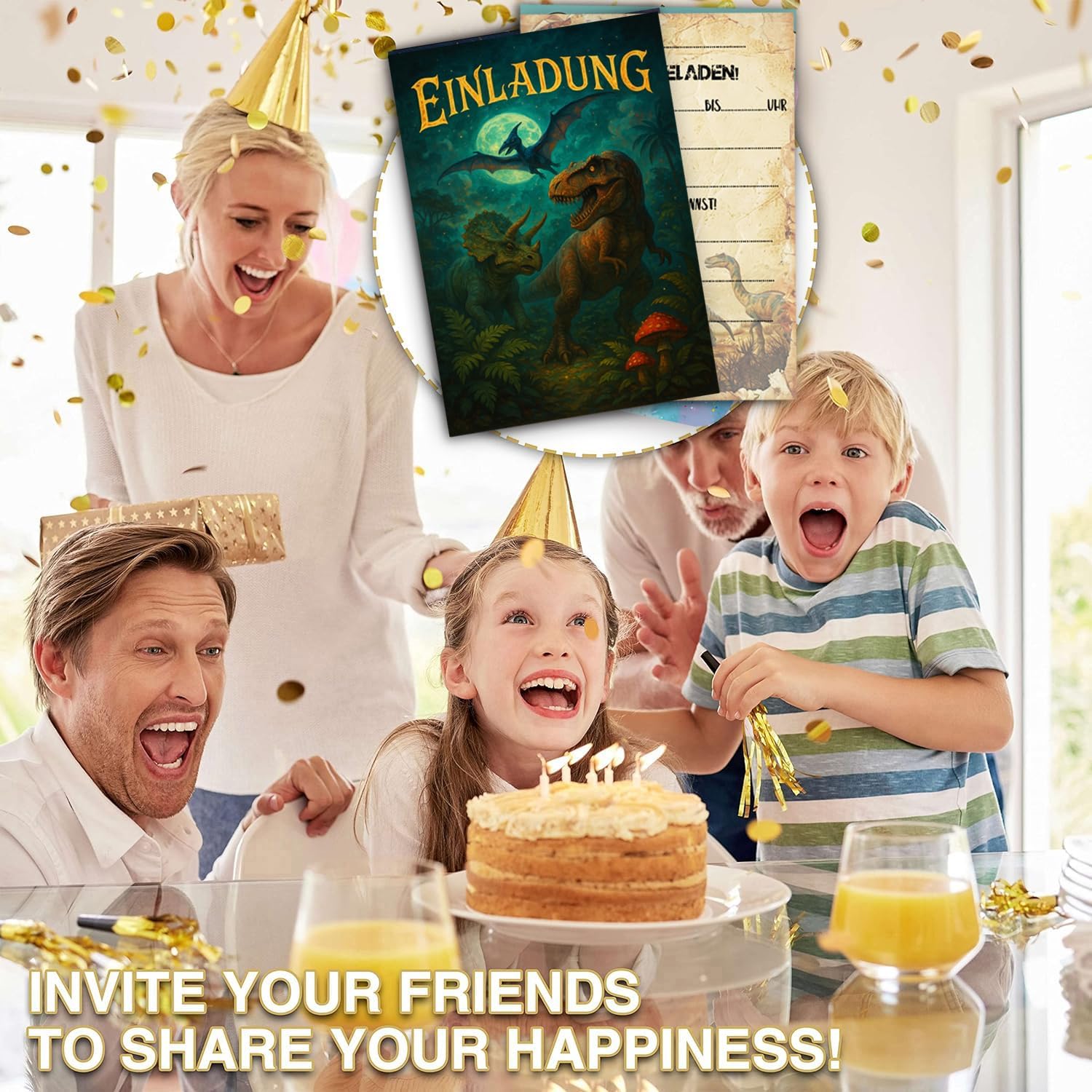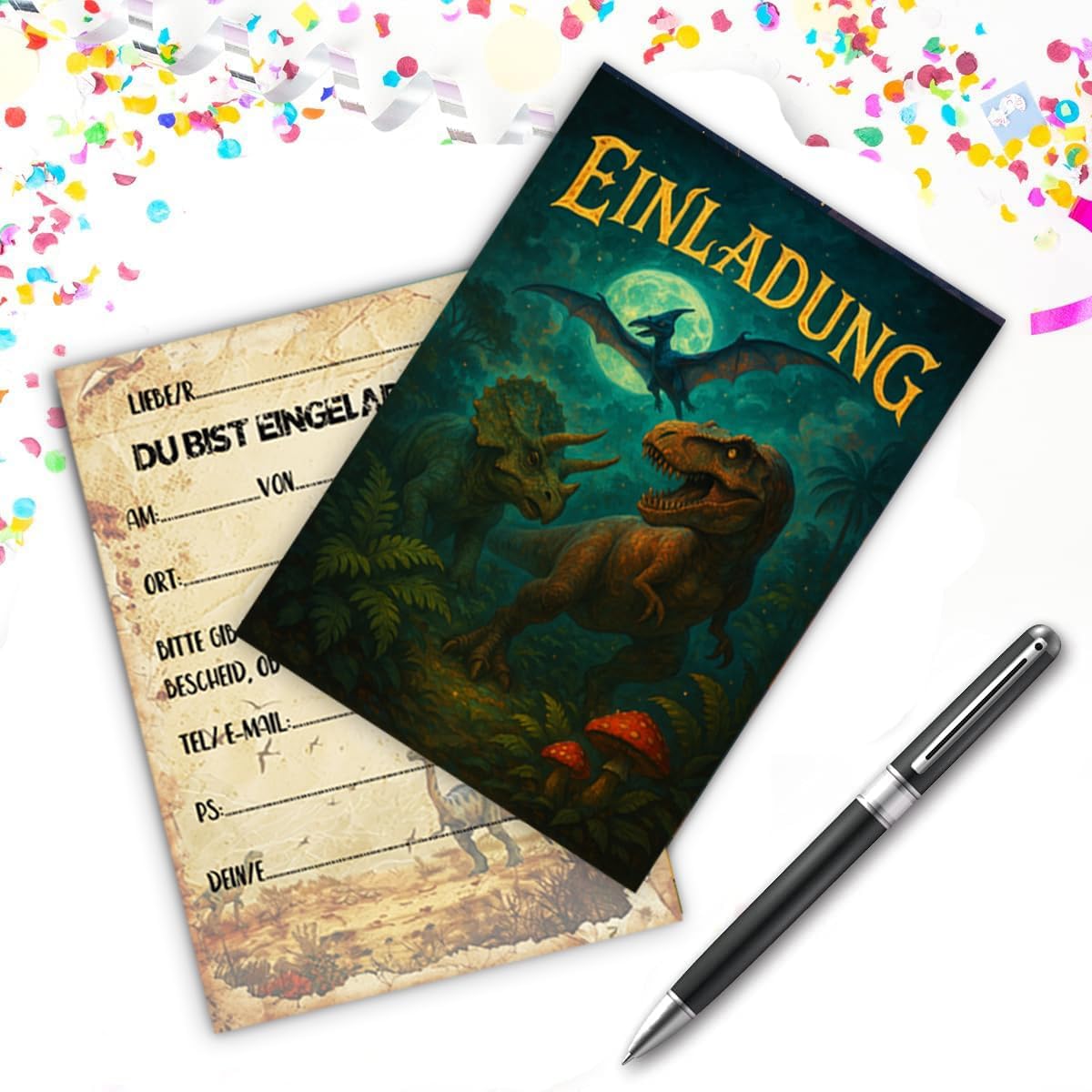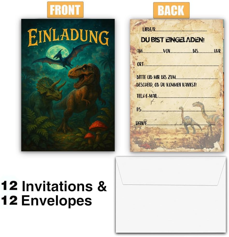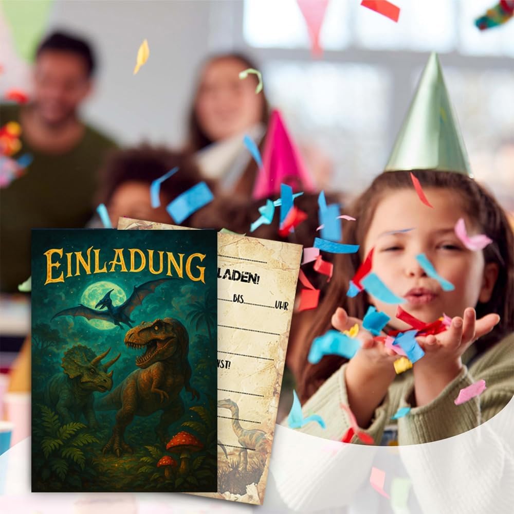 PERFETTO PER QUALSIASI FESTA DEI DINO - Che si tratti di un compleanno di dinosauri, di una caccia ai fossili o di una festa a tema Jurassic Park, queste carte delizieranno i piccoli paleontologi e avventurieri! Ideale per compleanni di bambini, feste all'asilo o visite ai musei. DISEGNI UNICI DEI DINOSAURI - Con T-Rex, Triceratopo, Brachiosauro e altri giganti preistorici! Perfetto come regalo per le feste, per i coni scolastici o per la spedizione – garantito per un entusiasta "Roarrr!" da ogni ospite. ALTA QUALITÀ E SOSTENIBILE – Realizzata in robusta carta riciclata da 350 g, con colori vivaci e una finitura opaca. Resistente agli strappi e scrivibile con tutte le penne. FACILI DA COMPILARE - I biglietti d'invito Dino offrono un modo semplice e intuitivo da compilare. Devi solo compilare le informazioni richieste per inviare rapidamente gli inviti. Si adatta perfettamente a qualsiasi zaino o astuccio! ACQUISTA CON FIDUCIA: se hai domande, ti forniremo il miglior servizio. Inviaci un'e-mail direttamente. Contattaci per un rimborso completo o una sostituzione.