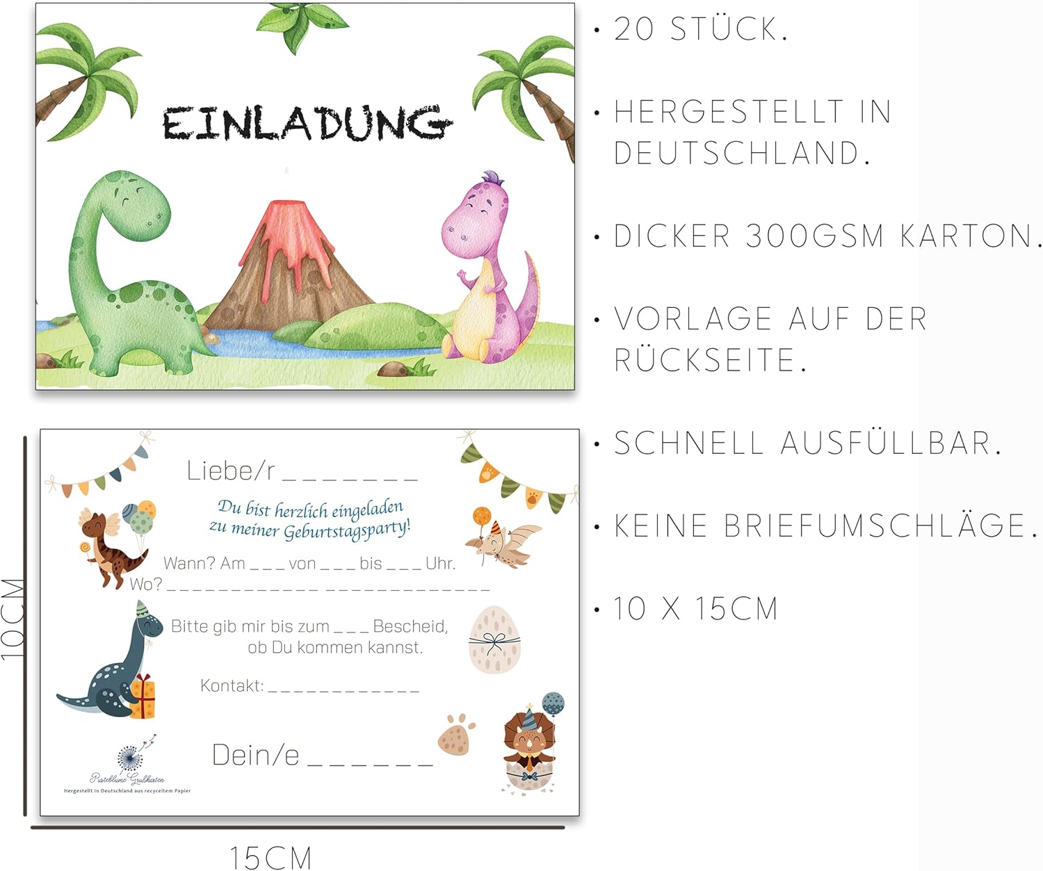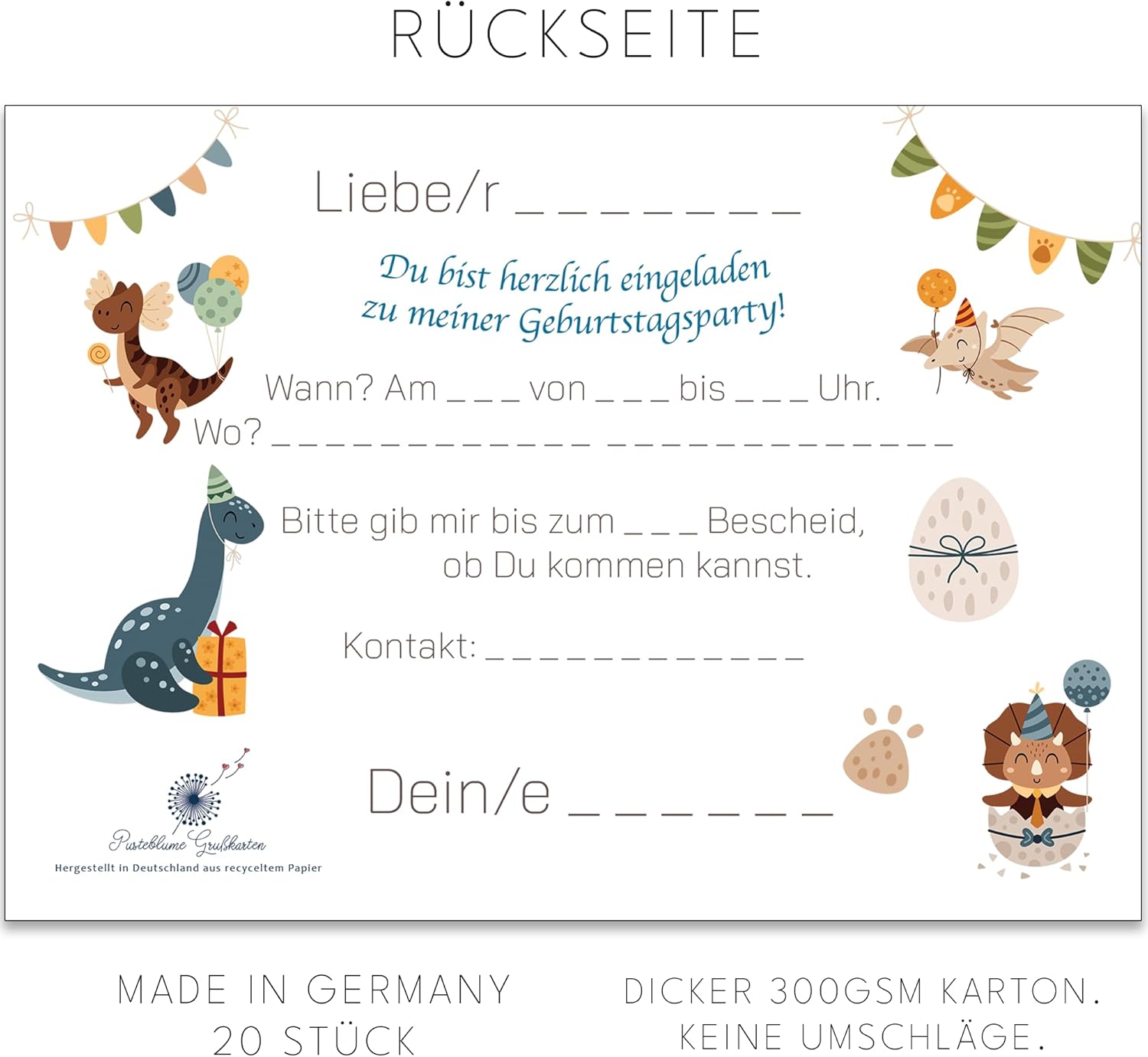 Colorato, allegro, fantastico: con questi biglietti d'invito arcobaleno il compleanno dei bambini diventa una piccola festa già quando si invita! Questo set contiene 20 biglietti A6 con un arcobaleno decorato con cura sulla parte anteriore, simbolo di gioia, amicizia e tanto divertimento. I biglietti sono realizzati in cartone riciclato, robusto, ecologico e progettato con amore. Sul retro c'è abbastanza spazio per tutte le informazioni importanti sulla festa: chi invita quando sorge la pausa e dove si nasconde il prossimo uovo di dinosauro? Basta compilare, distribuire e iniziare il viaggio nel tempo! Formato A6: maneggevole, ordinato e perfetto da distribuire a scuola o all'asilo. Realizzato in cartone riciclato, ecologico e resistente. Progettato con amore da una piccola azienda a conduzione familiare in Germania, qualità con cuore.