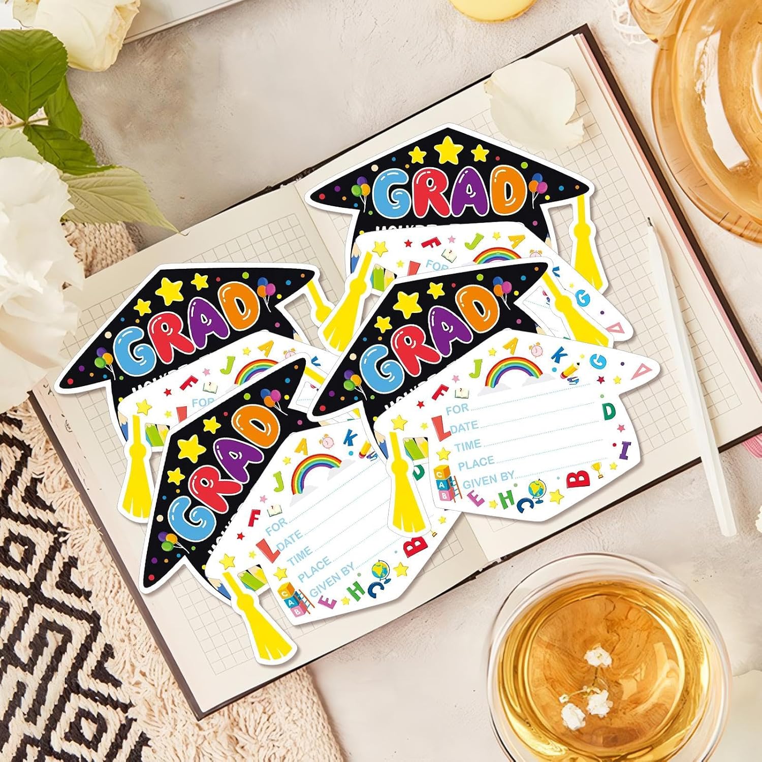 DESIGN UNICO: diffonde un'atmosfera di festa felice con il suo modello squisito, realizzato su misura per i diplomi della scuola materna e primaria. Perfetto per celebrare momenti speciali e mantenere vivi i ricordi di questo giorno importante. Gli inviti sono un must per ogni festa di laurea nel 2025. Materiale durevole: gli inviti convincono grazie alla loro qualità robusta e alla sensazione raffinata. Stampati su carta di alta qualità, offrono una finitura elegante e sono perfetti per feste di laurea indimenticabili. I loro colori vivaci e il design elegante garantiscono un'impressione duratura. Set di biglietti per occasioni speciali: contiene ventiquattro inviti pensati appositamente per lauree ed eventi simili. Il set semplifica il processo di invito degli ospiti e offre una soluzione flessibile per le diverse esigenze. Perfetto per rendere speciali le tue celebrazioni del 2025. DIMENSIONE CONVENIENTE: gli inviti per la festa di laurea 2025 presentano un design aerodinamico che garantisce una conservazione rapida e una distribuzione uniforme. La dimensione media rende la scrittura e il trasporto molto più facili. Ideale da utilizzare in occasione di eventi speciali nel 2025. Per varie occasioni: ideali per feste di laurea, cene di apprezzamento per gli insegnanti e riunioni di compagni di classe, questi inviti si adattano perfettamente a qualsiasi evento cerimoniale o formale, rendendoli versatili per tutte le occasioni importanti
