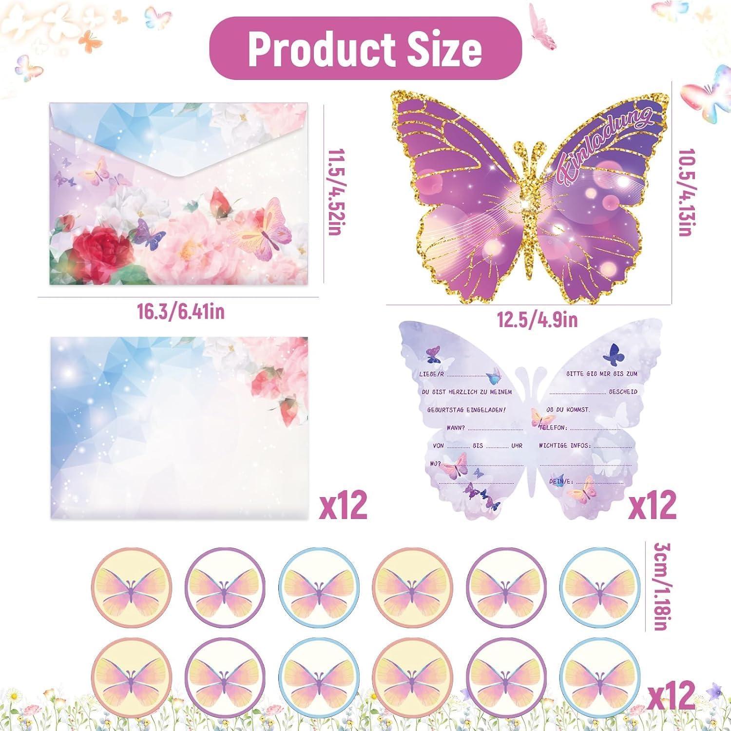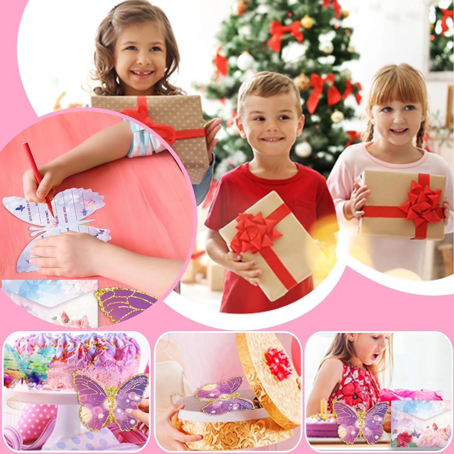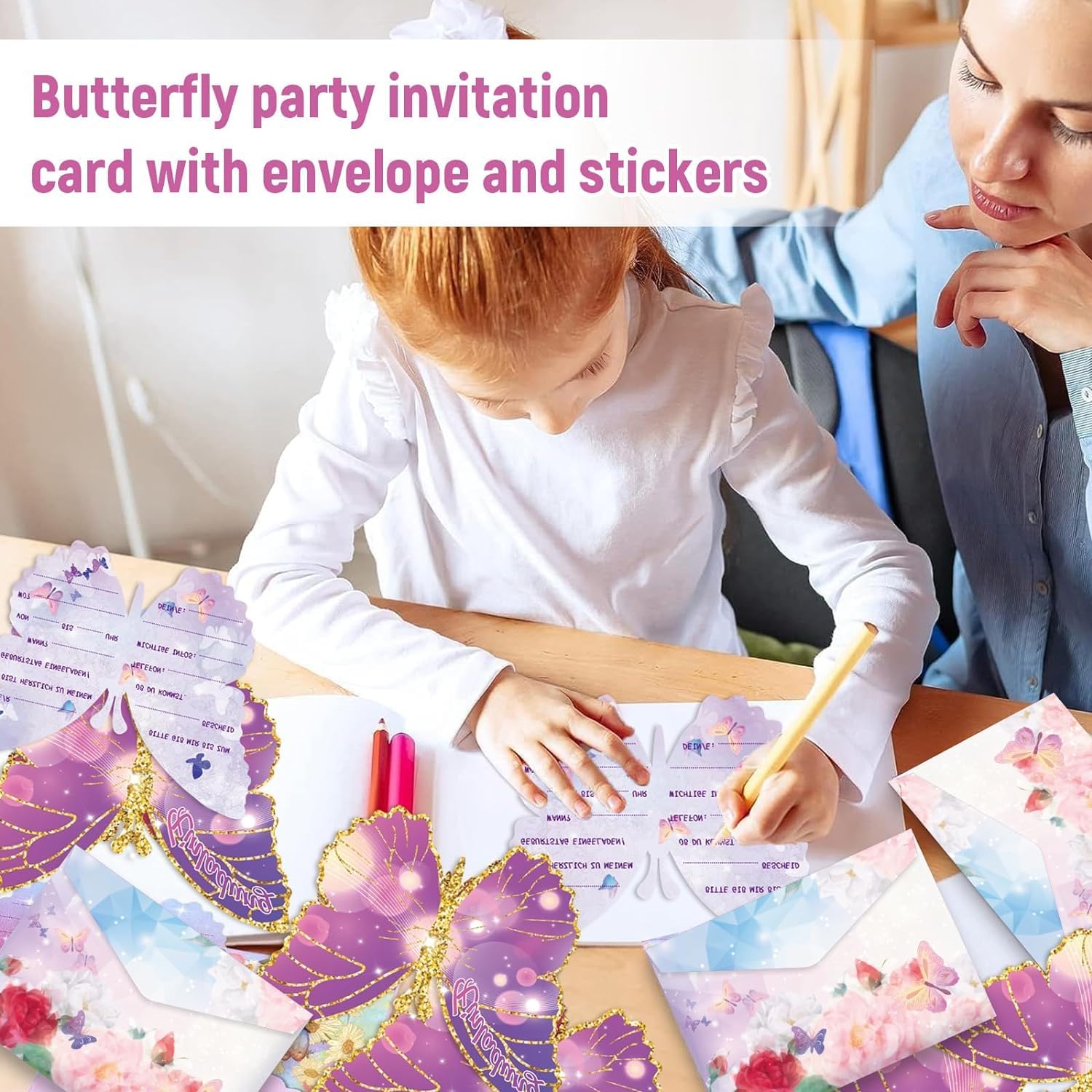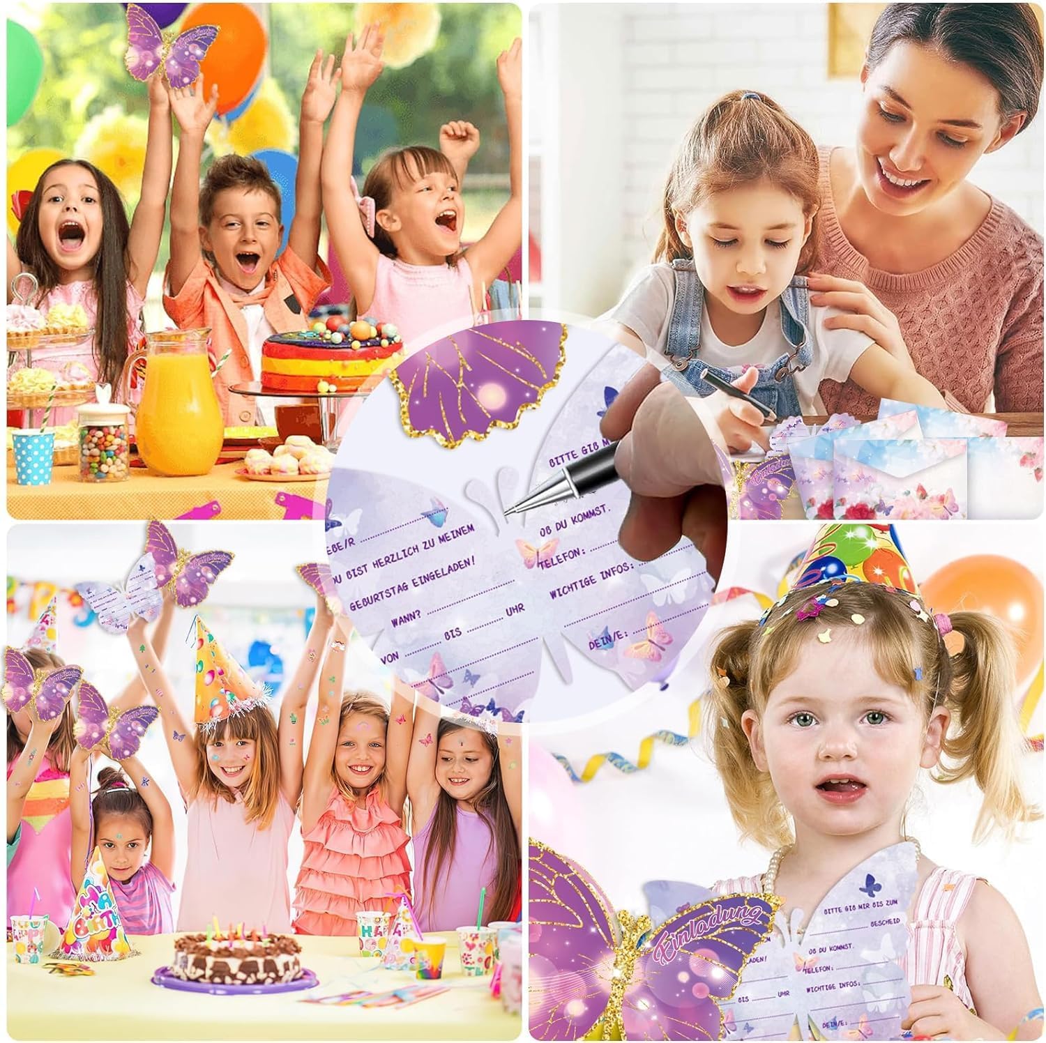 Biglietti di invito per compleanno: biglietti di invito per compleanno per bambini, contiene 12 biglietti di invito a farfalla, 12 copertine, 12 adesivi per invitare i vostri amici e familiari alla vostra festa di compleanno.