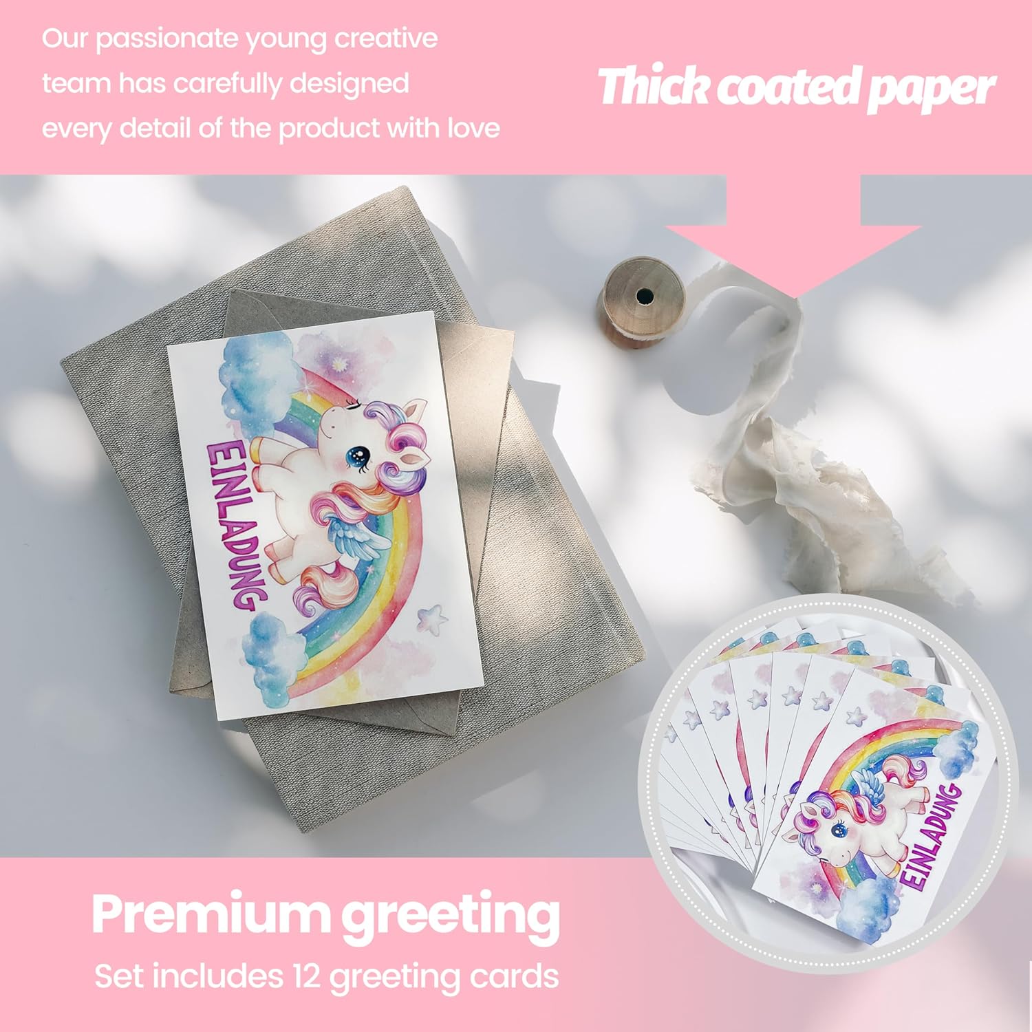 Il prodotto contiene: un biglietto di invito di compleanno pieghevole da 14 x 14 cm con una borsa trasparente in polipropilene. Stile: gli inviti sono caratterizzati da colori vivaci e vivaci, motivi vivaci e carini e layout creativi per creare un'atmosfera allegra e calda da festa. Dettagli e consistenza: il biglietto d'invito per bambini è realizzato in carta rigida lucida con bellissimi motivi e colori delicati. Bellissimi ricordi: un biglietto di invito per il compleanno dei bambini non è solo un invito a una festa, ma anche un prezioso ricordo. Quando la festa è finita, bambini e genitori possono conservare il biglietto di invito come parte dei ricordi. Informazioni sulla scrittura: c'è abbastanza spazio per scrivere tutte le informazioni importanti con tutte le penne comuni. Saranno il ricordo d'infanzia perfetto per ogni piccola principessa. "