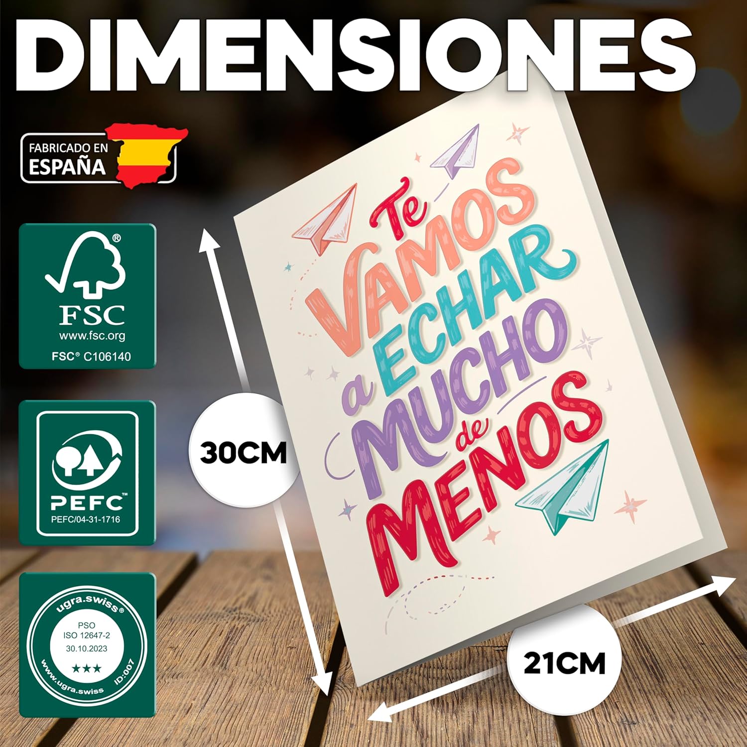 Regalo d'addio originale ed emozionante Sorprendi con un biglietto d'addio grande e speciale per i tuoi colleghi, insegnanti o amici. Perfetto per esprimere gli auguri con un tocco personale, sarà un ricordo indimenticabile ricco di emozioni e gratitudine. Grande formato con spazio per le firme. Progettato in dimensioni extra large (29,7 x 42 cm aperto, 21 x 29,7 cm chiuso), questo biglietto d'addio offre molto spazio per messaggi, firme e dediche. Ideale per funerali di gruppo in ufficio, a scuola o per qualsiasi evento speciale. Busta inclusa: include una busta di carta robusta e decorativa, perfetta per proteggere la carta e consegnarla con stile. Aggiungi un tocco di eleganza al tuo regalo e valorizza la presentazione finale. Ideale per colleghi, insegnanti e altro ancora. Perfetto come biglietto d'addio per colleghi, regalo per insegnanti o anche per amici in trasloco o in viaggio. Il suo design minimalista ed emozionale è adatto a tutte le occasioni. Un ricordo che emoziona e dura, ogni firma e messaggio sarà inciso come un ricordo indimenticabile. Questa carta è più di un dettaglio: è una prova d'amore che il destinatario potrà conservare per anni con apprezzamento.