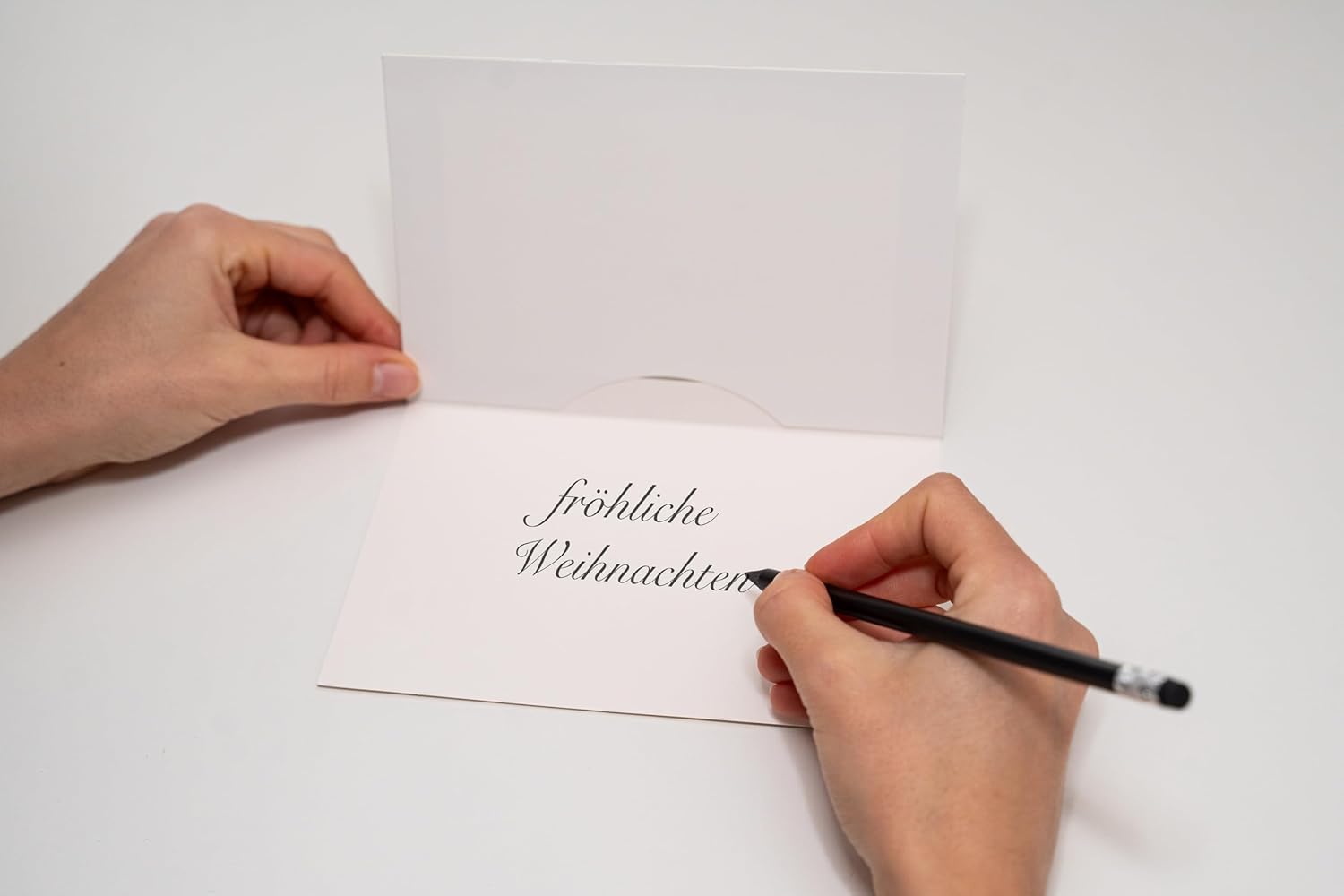Biglietto d'auguri di alta qualità: bellissimo biglietto d'auguri in carta di alta qualità e con busta bianca e tasca per una foto stampata (10 x 15 cm) da inserire personalmente. Dal cuore: questo biglietto d'auguri porterà un piacere speciale ai tuoi cari e lascerà un ricordo indelebile, perché può essere personalizzato con una foto stampata e puoi poi posizionarlo come cornice per foto. Qualità premium: carta spessa e stampa di alta qualità Spazio per la tua personalità: all'interno c'è abbastanza spazio per scrivere le tue parole scritte a mano: scrivibili con tutte le penne. Dimensioni: il biglietto misura circa 12 x 17,2 cm, adatto per foto fino a circa 10 x 15 cm. Il ritaglio della foto misura circa 8,9 x 13,8 cm, quindi non è possibile vedere l'intera foto 10 x 15 cm.